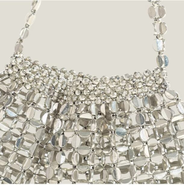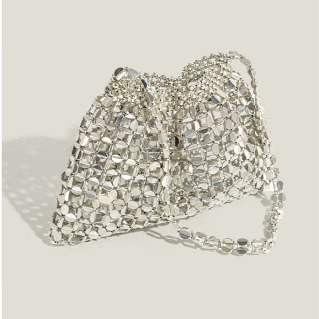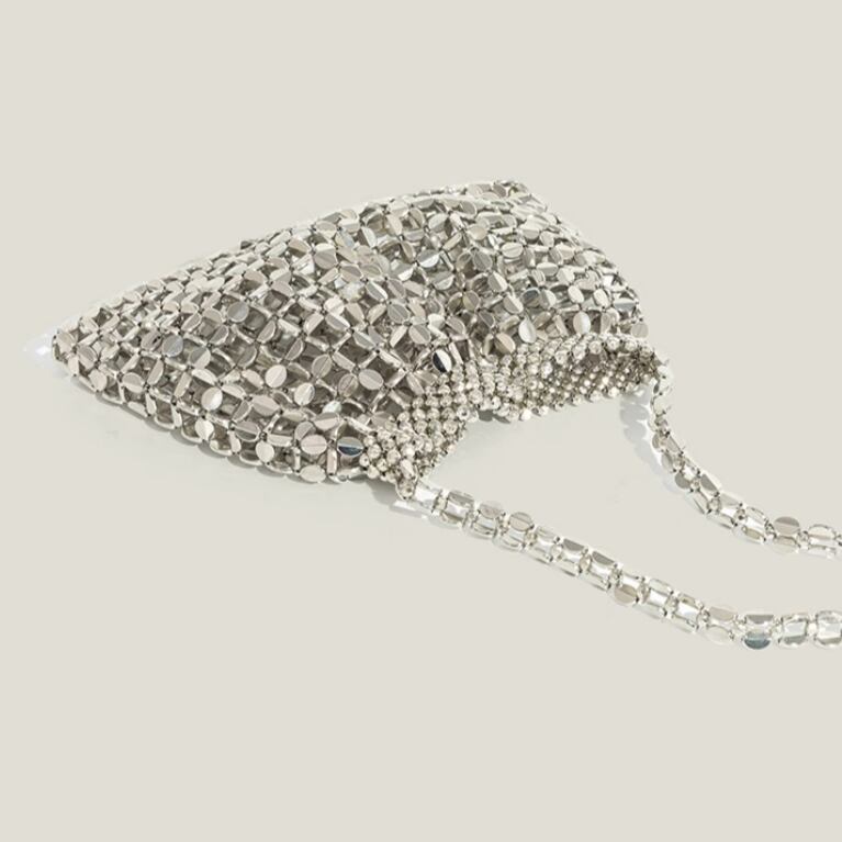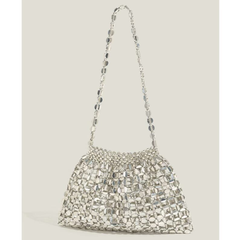 メタリック スパンコール シルバー ショルダー バッグ G1056