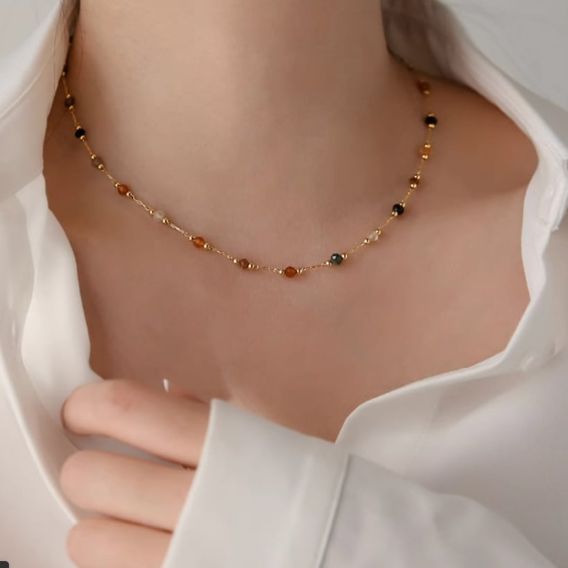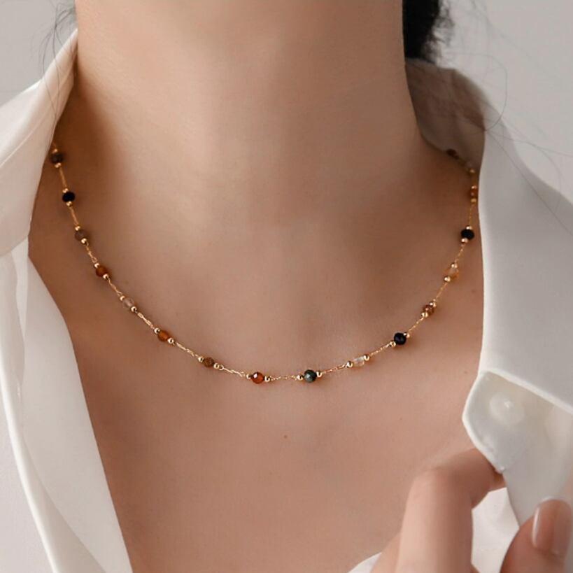 チェーンの長さ:39㎝+5㎝(天然石直径:0.4㎝)