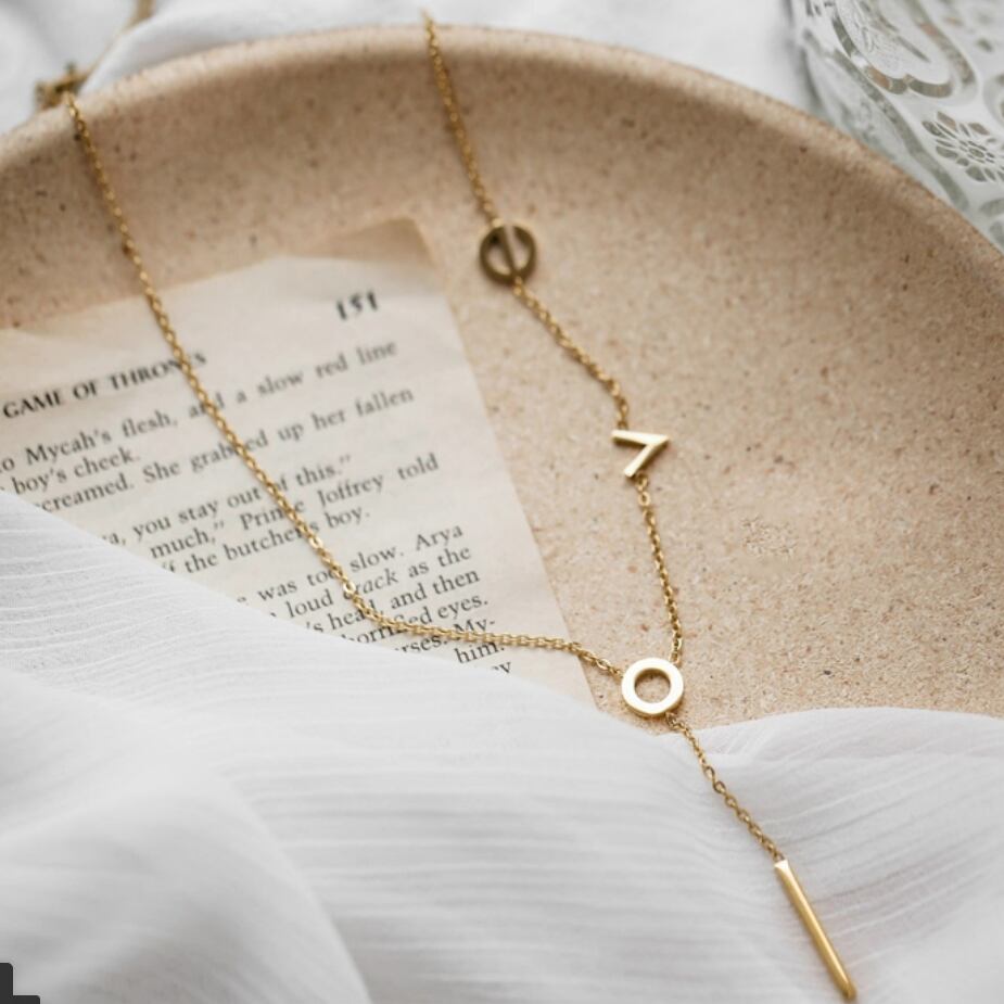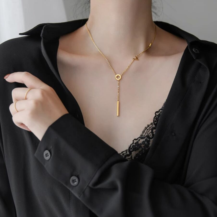 サークルとバーの組み合わせがデコルテを美しく演出し、