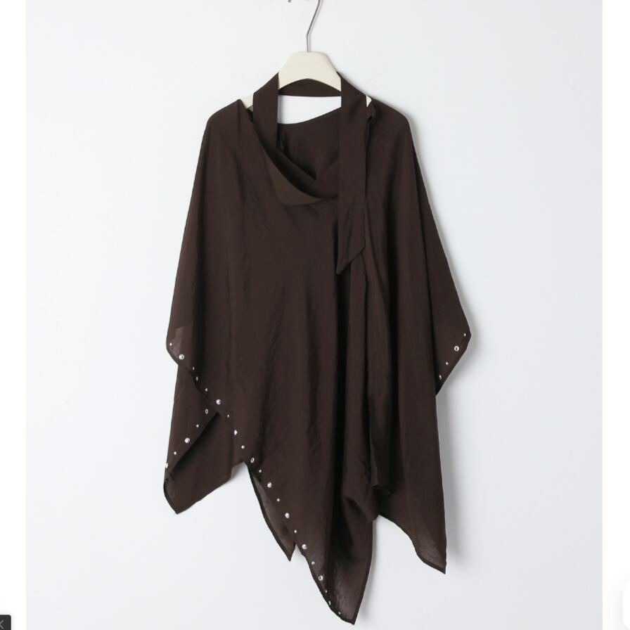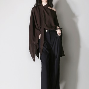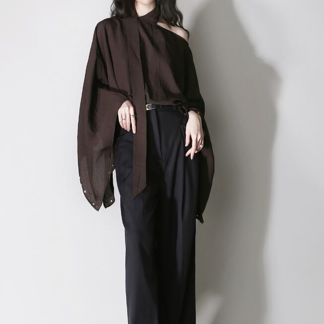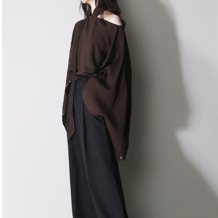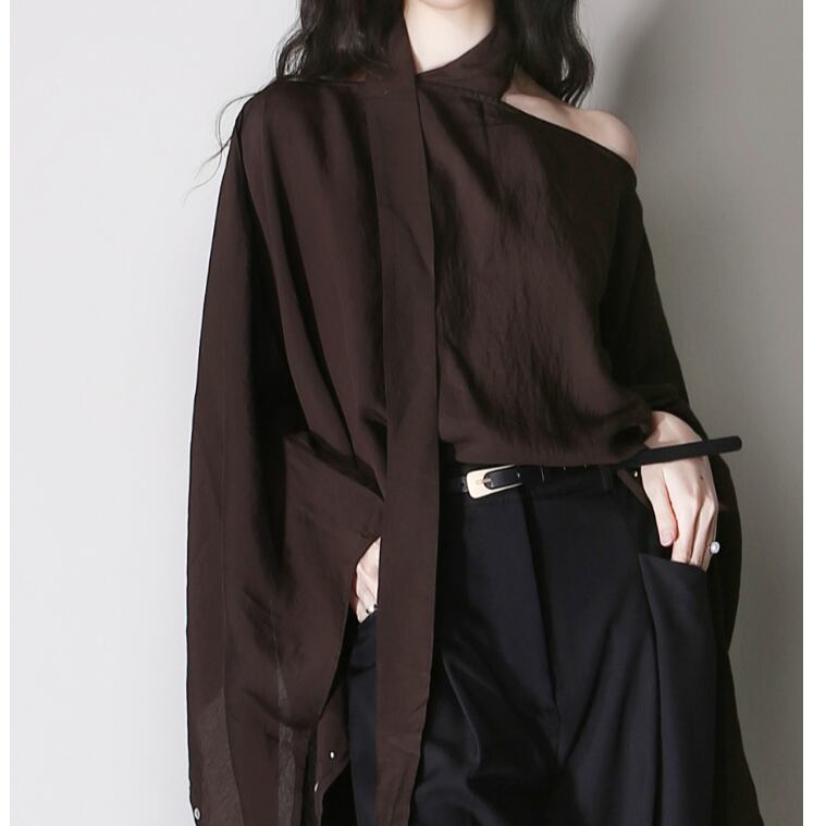 リボンネック オフショルダー イレギュラーヘム シャツ G1083