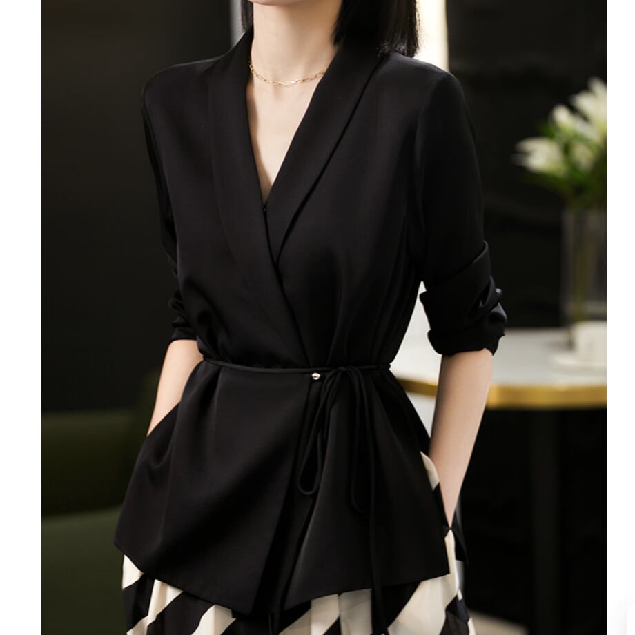 すっきりしたVネックとウエストリボンが魅力のきれいめジャケット。 柔らかい素材感で動きやすく、オフィスやフォーマルにも 活躍する万能トップスです。 【商品詳細】 カラー:ブラック、ホワイト、ピンク 素材:ポリエステル 95%、スパンデックス 5% 【商品サイズ】 S:肩幅 40cm/胸囲 97cm/着丈 60cm/袖丈 55cm M:肩幅 41cm/胸囲 101cm/着丈 61cm/袖丈 56cm L:肩幅 42cm/胸囲 105cm/着丈 62cm/袖丈 57cm XL:肩幅 43cm/胸囲 109cm/着丈 63cm/袖丈 58cm ※海外製品につき1cm~3cmの誤差がある場合が ございます。予めご了承くださいませ。 表記は目安として参考にしてください。 【お届けについて】 こちらの商品は海外店舗より直接発送となる為、 ご入金から1~3週間前後で発送致します。 (商品の状況によっては3週間以上かかる場合も あります。その際はご連絡させていただきます) ※沖縄・離島は、別途送料を頂戴しております。 ◼️注意事項 ・タイミングによっては 商品在庫切れにより 注文キャンセルとさせていただく場合も ございますので、予めご了承くださいませ。 ・こちらは海外インポート商品となります。 日本製とは検品基準とは異なり、作りが あまい場合がございます。 ・お手持ちのPCやスマートフォンの画面により 商品の色に若干異なる場合がございます。 ・イメージ違いやサイズ等、お客様都合による交換、 返品、キャンセルは対応出来かねます。 ———————————————— ご購入前に必ずお読みくださいませ ↓ ↓ ↓ https://shop.gramu-official.jp/about —————————————————