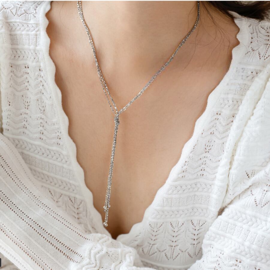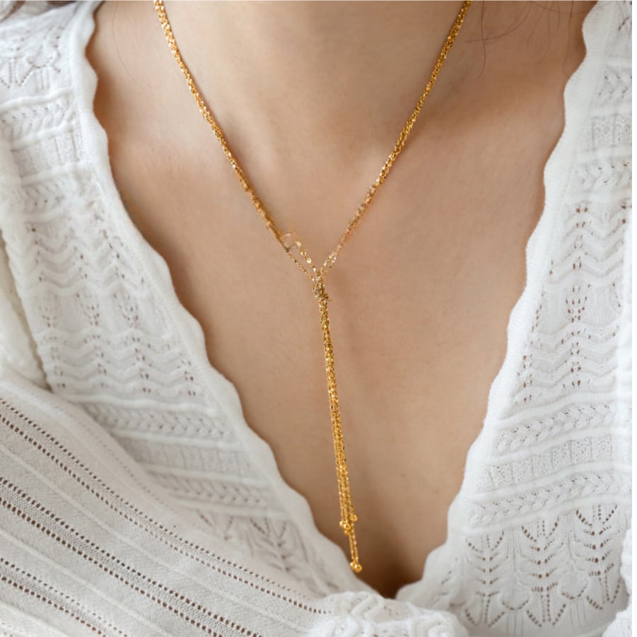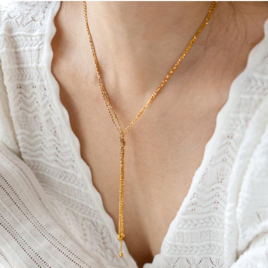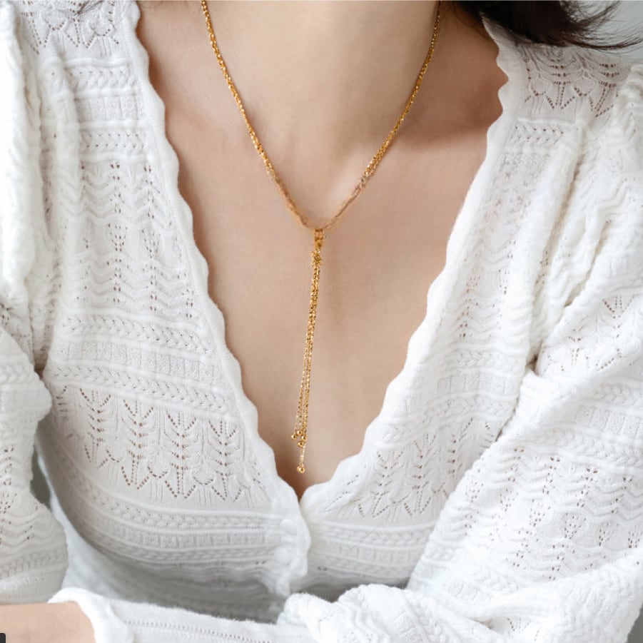 肌に寄り添うチェーンとY字デザインが、デコルテを美しく演出。