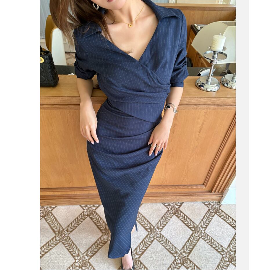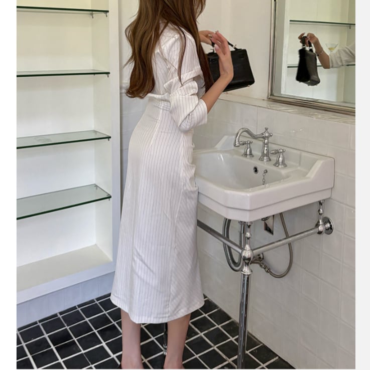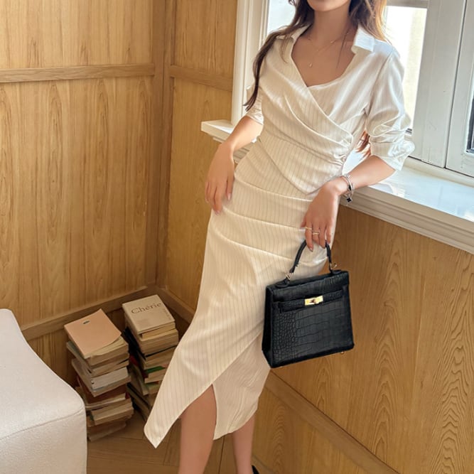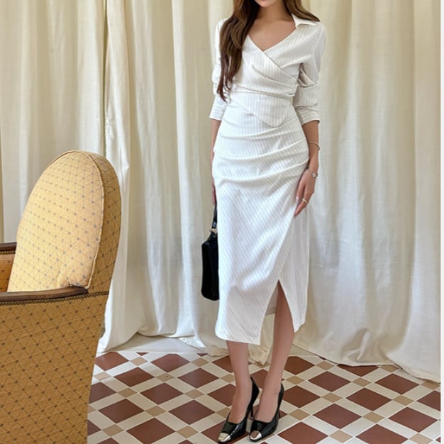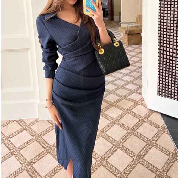 スリムフィット ボディコン ストライプ ワンピース G1205