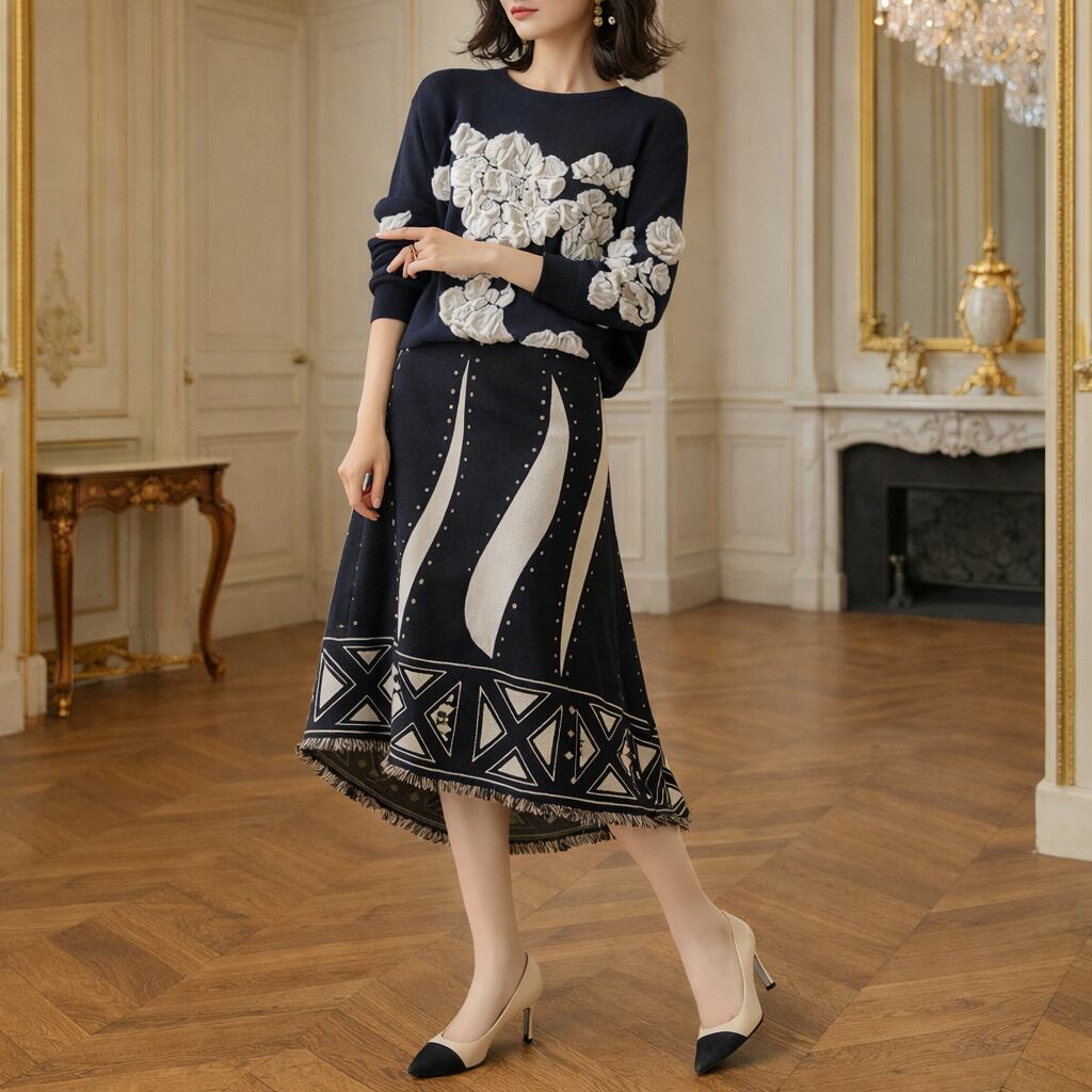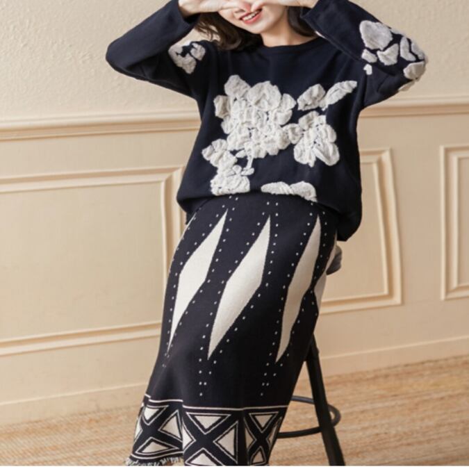 花柄セーター ツーピース セットアップ G1207