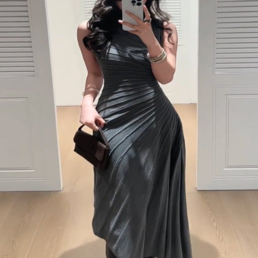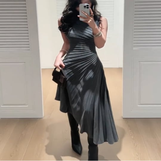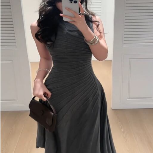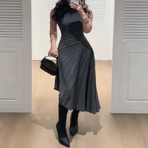 グレー プリーツ ノースリーブ ワンピース G1208