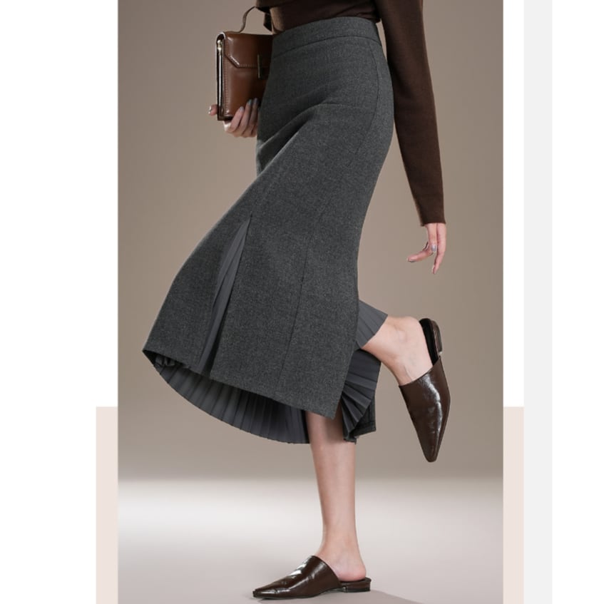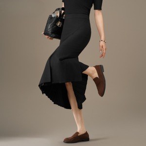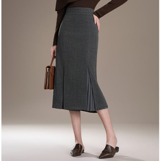 サイドプリーツ 切替 ミディタイトスカート G1215