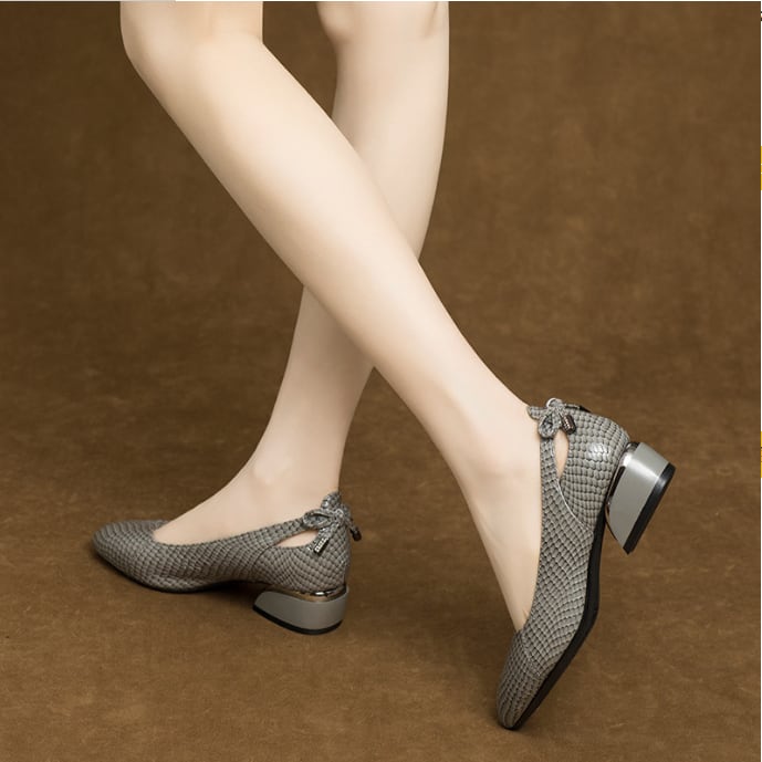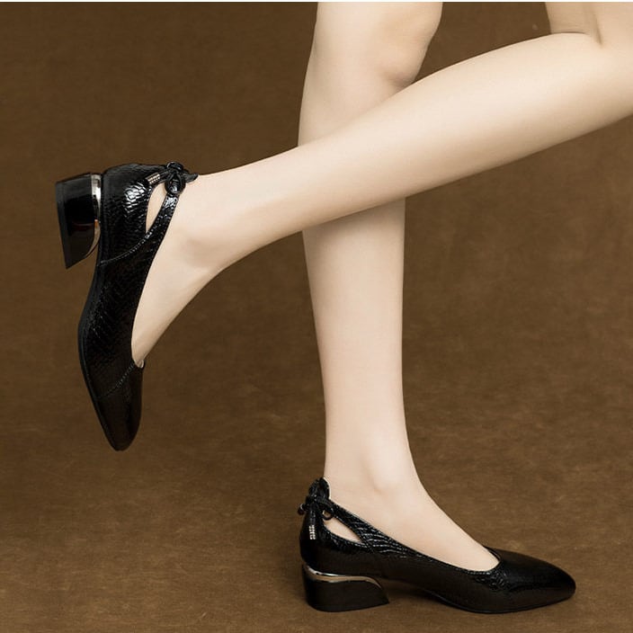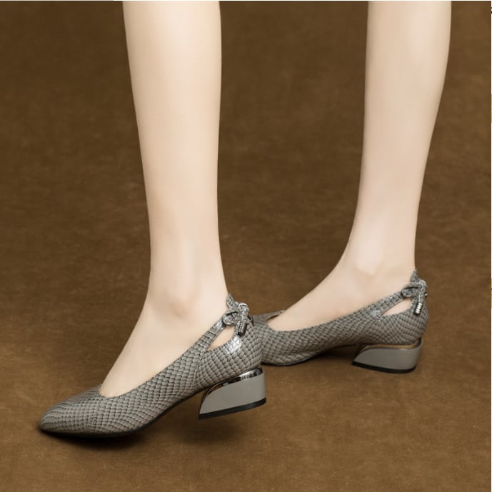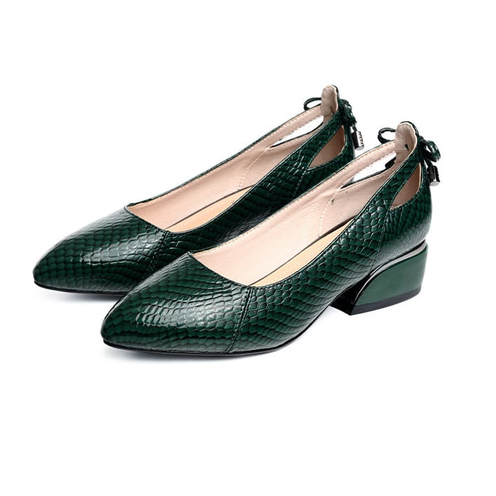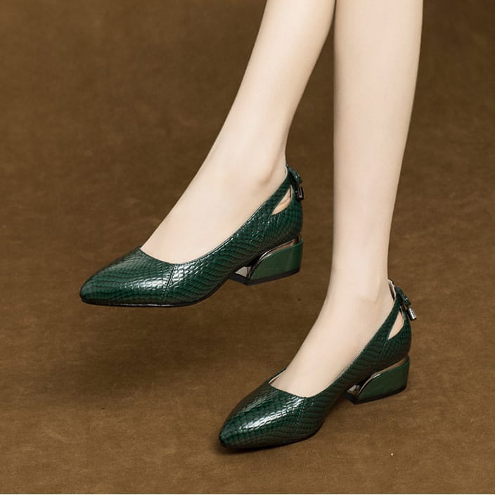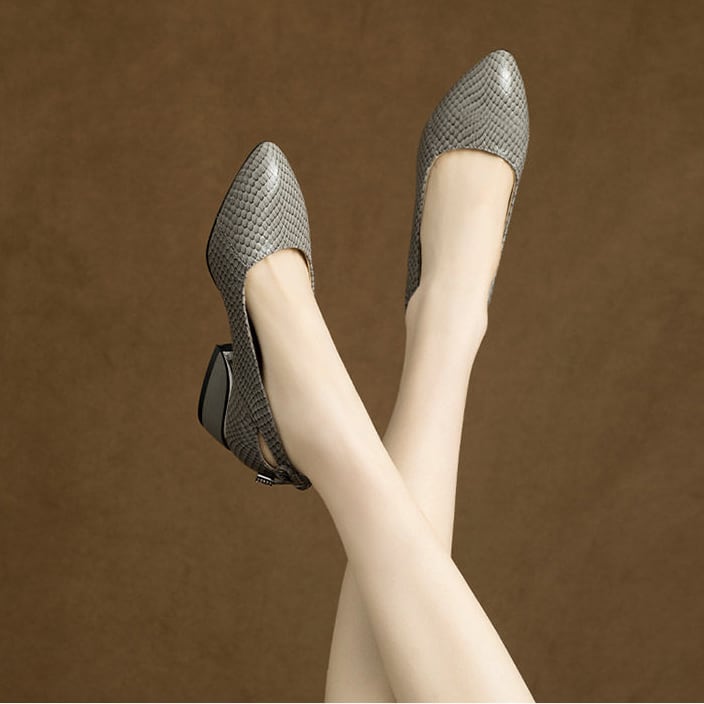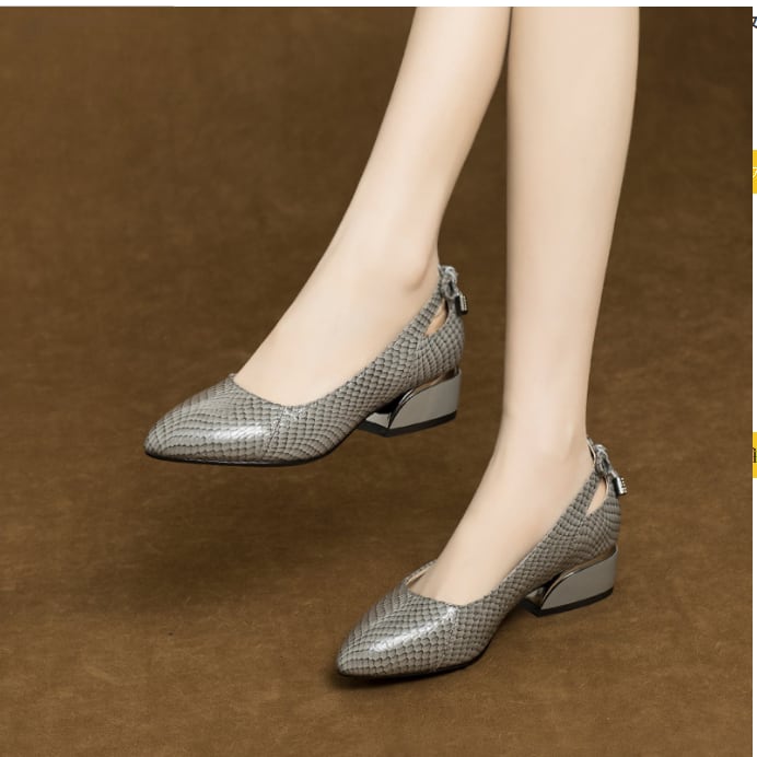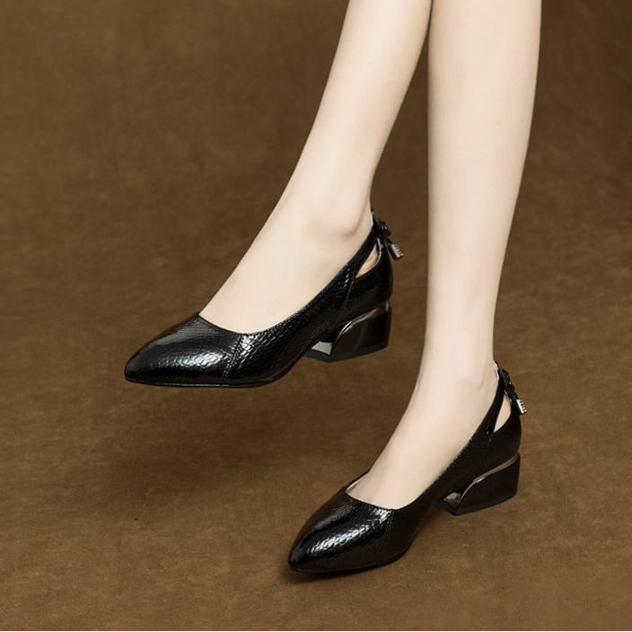ポインテッドトゥ チャンキーヒール ローヒール G1235