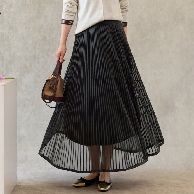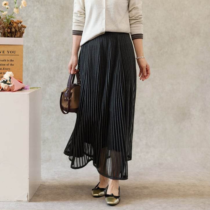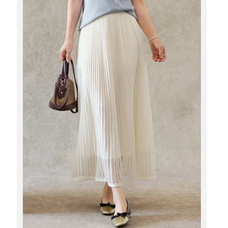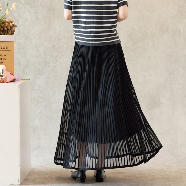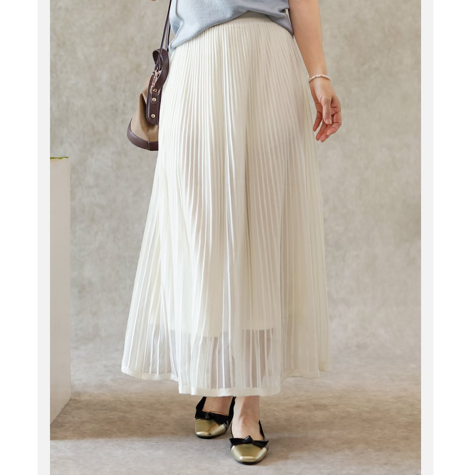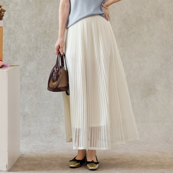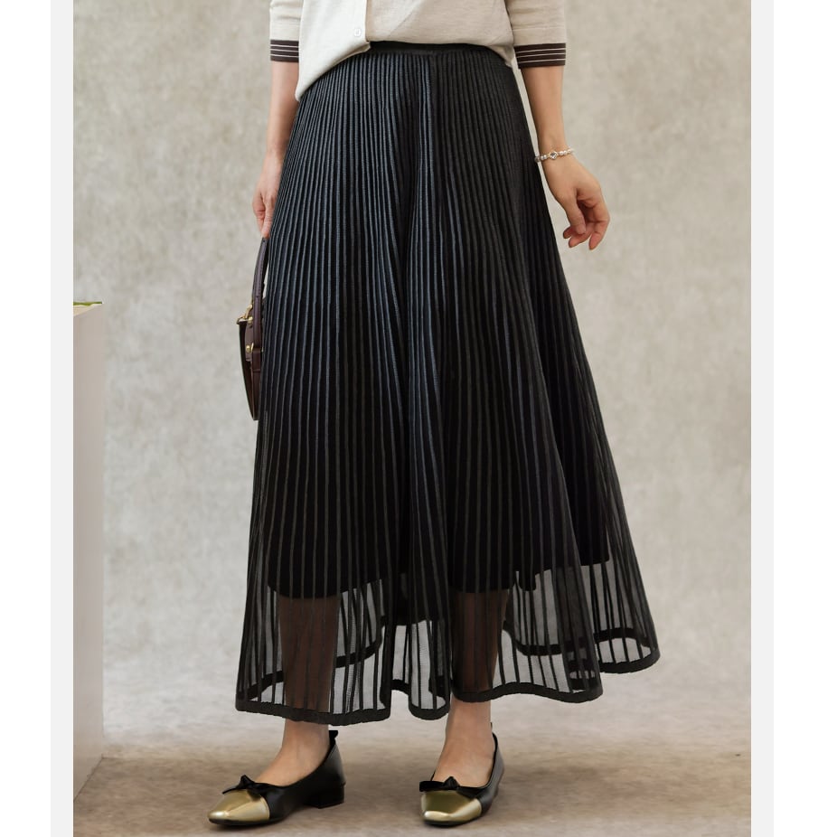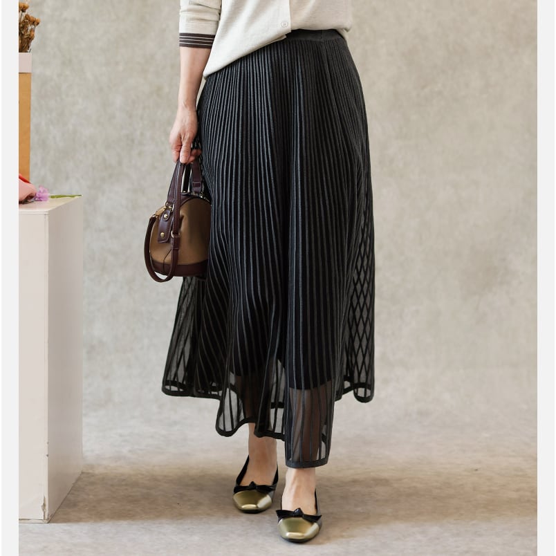 二重メッシュ ミディ丈 プリーツ スカート G1237