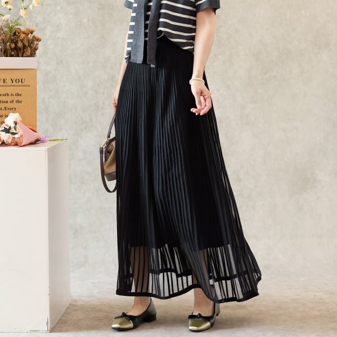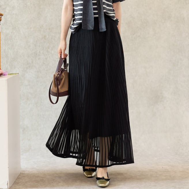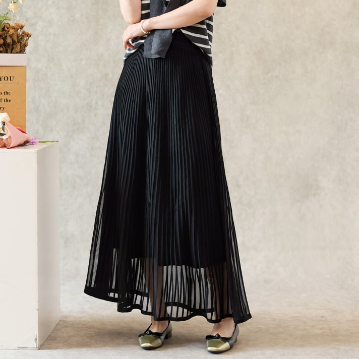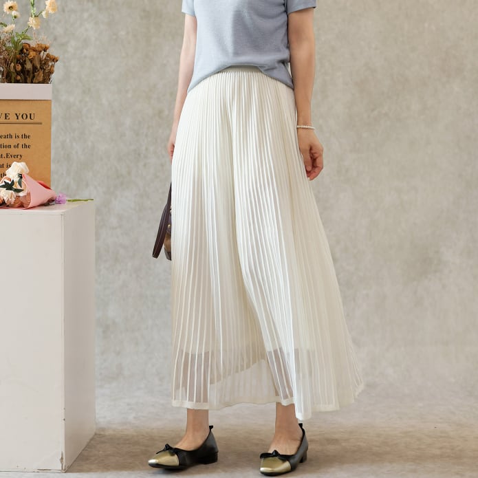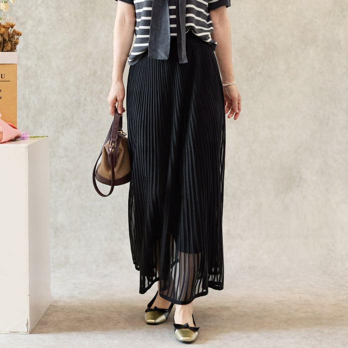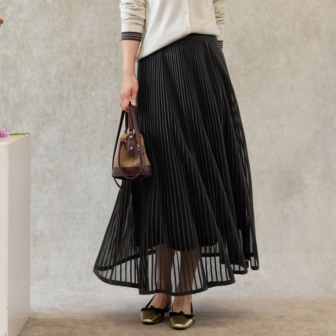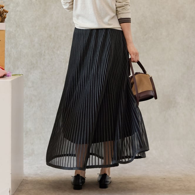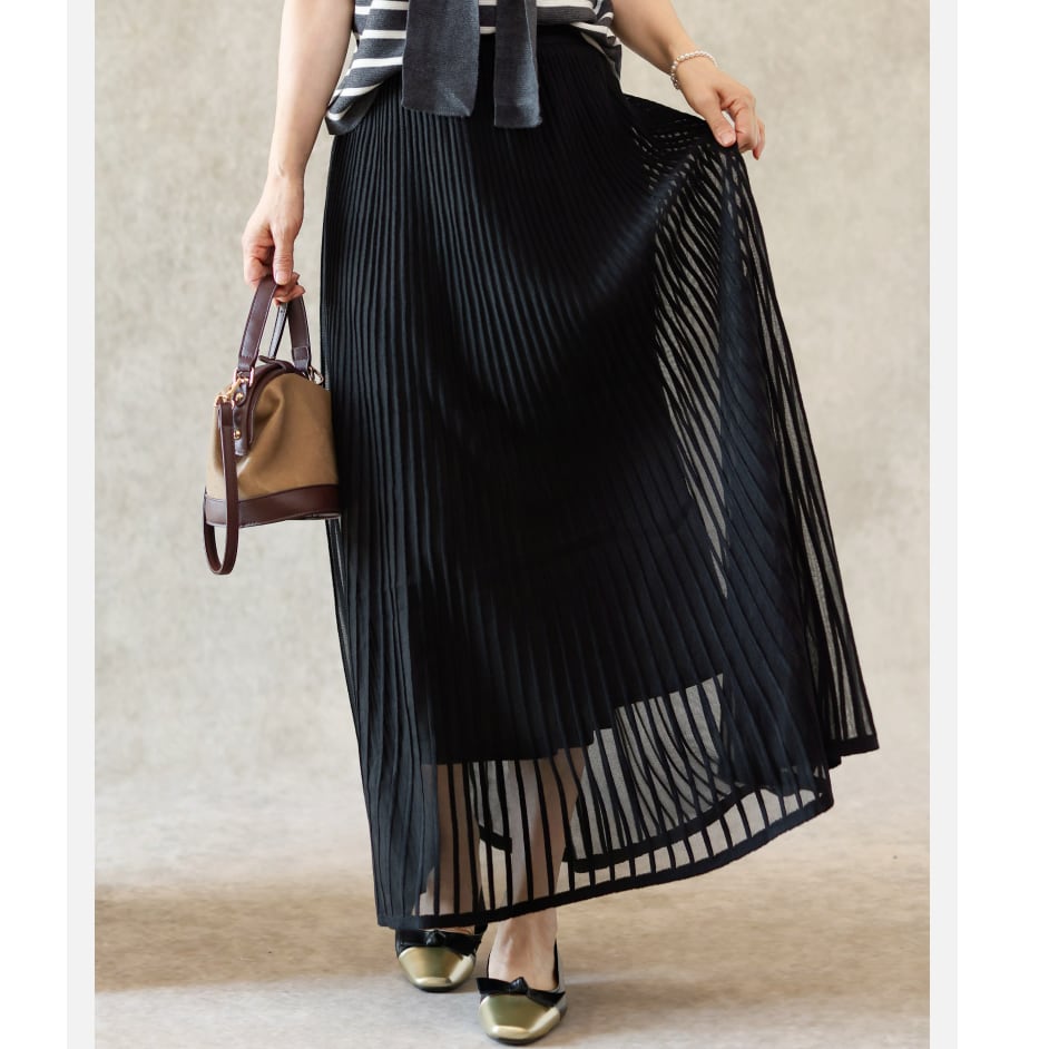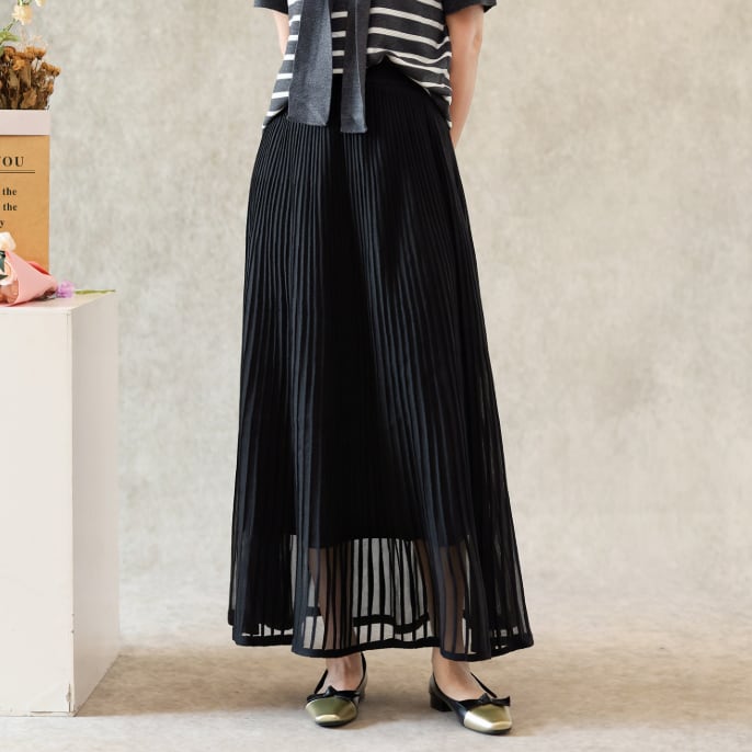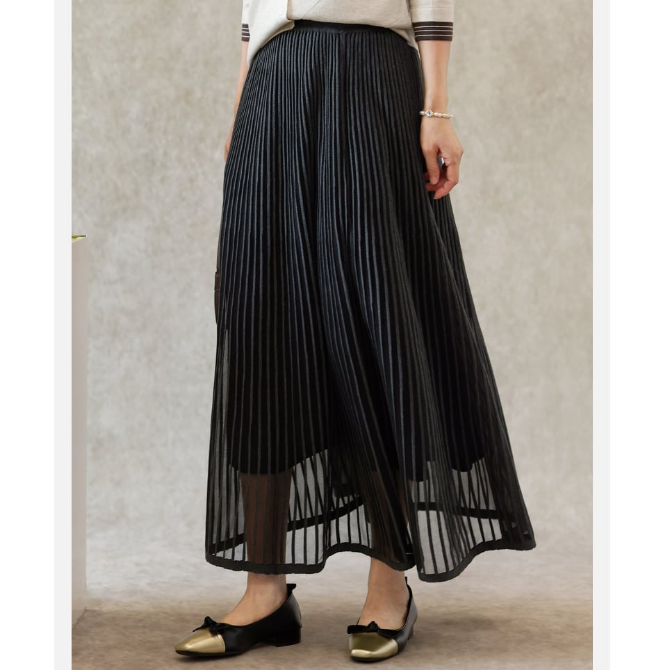 二重メッシュ ミディ丈 プリーツ スカート G1237