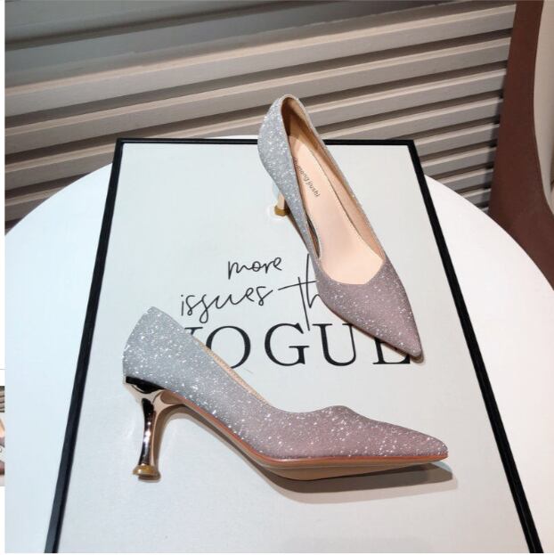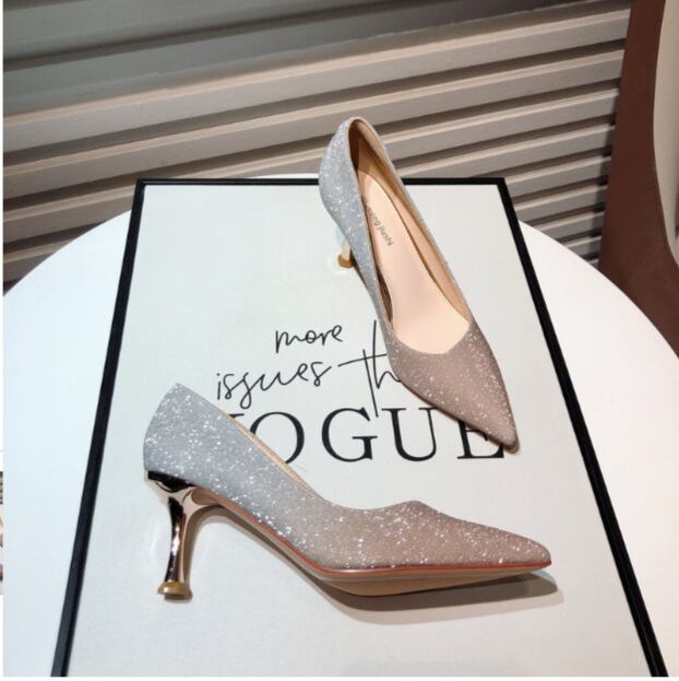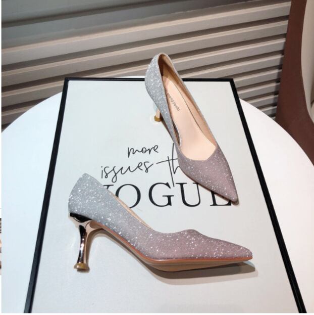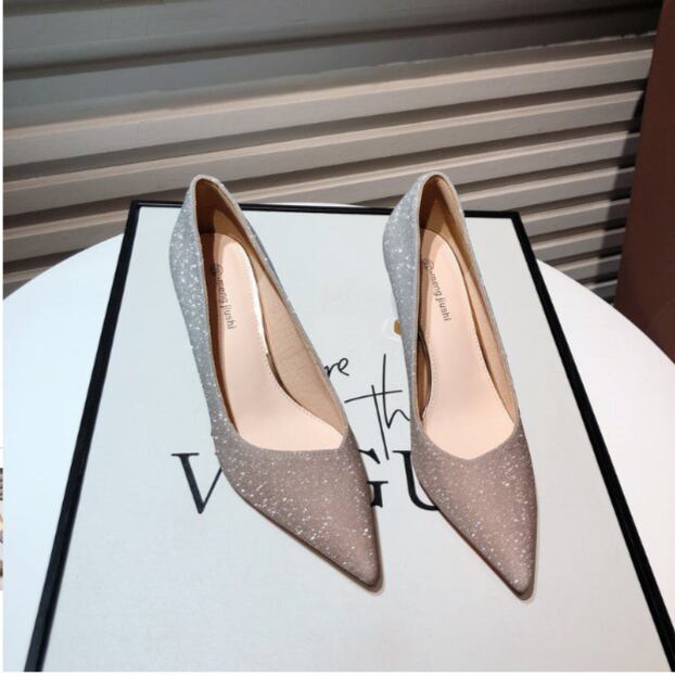 スパンコール付き ポインテッドトゥ スティレットヒール G1241