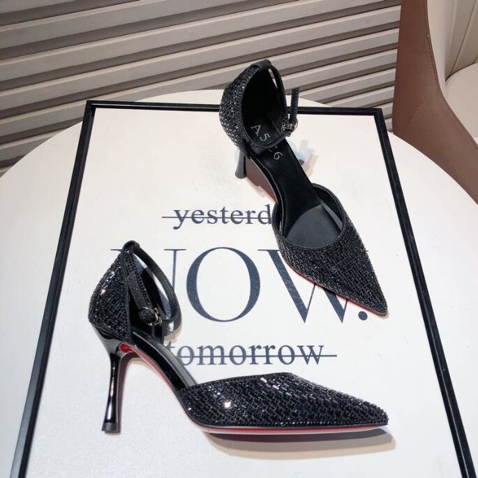 シングルストラップ オープントゥスティレットヒール G1242