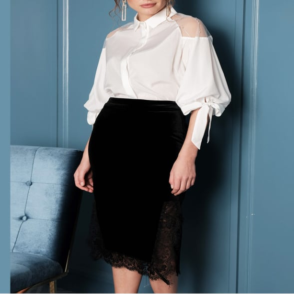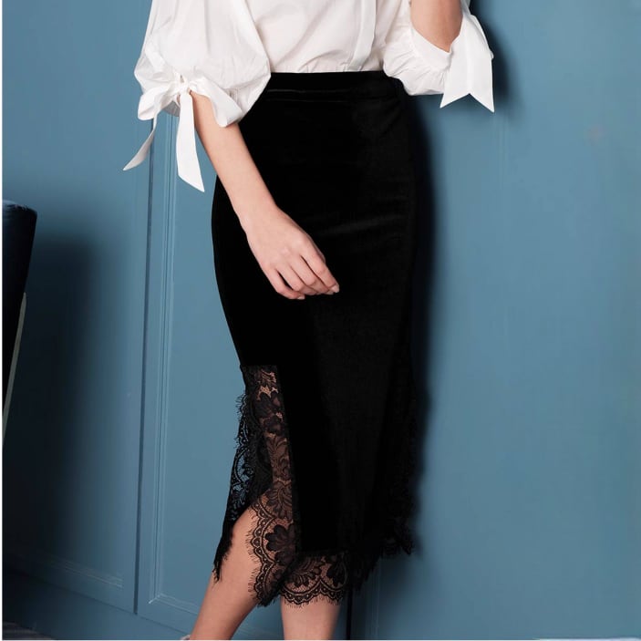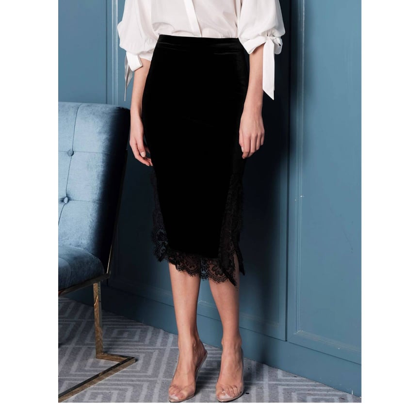 ヒップラインを美しく見せる レース ミディスカート G1249