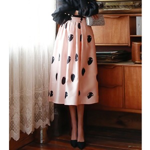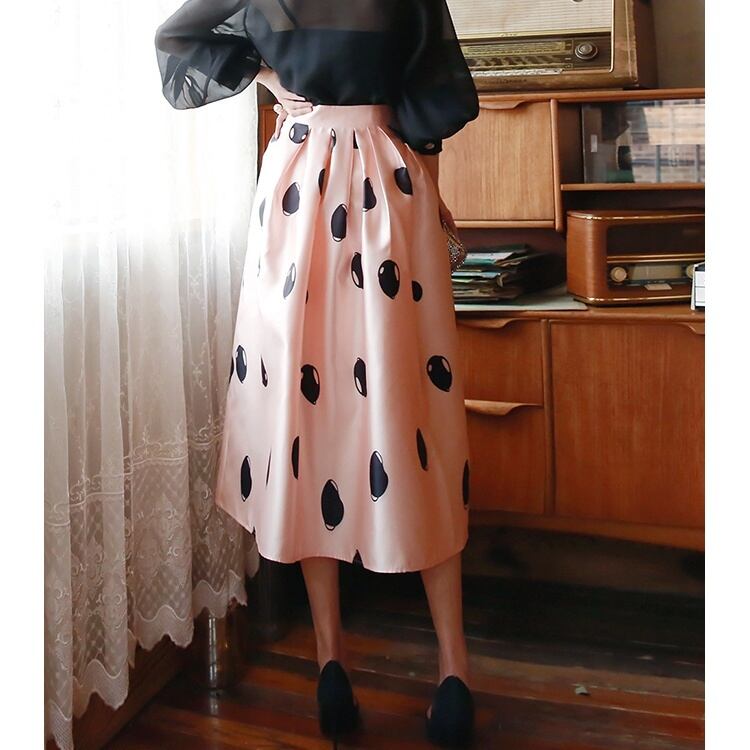 ドット柄Aラインギャザースカート ティアドロップ水玉 G0004