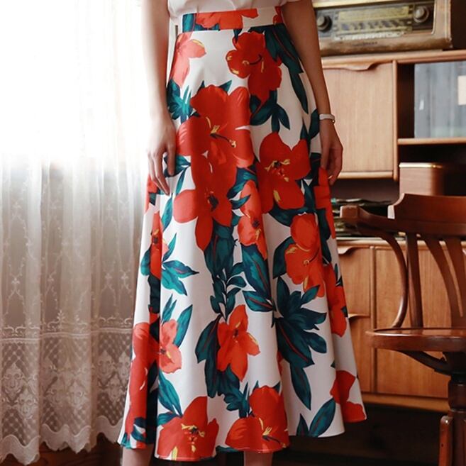 大きな花柄のスカートは着るだけで明るく華やかな印象に。 とろみのある生地感で歩く度にひらひら揺れる様子が女性らしく魅力的。 トップスは柄の色からチョイスすると統一感のあるコーデに仕上がりますよ。 【商品詳細】 カラー:花柄スカート レッド 素材:ポリエステル 100% サイズ:S、M、L、XL 【商品サイズ】 S:ウエスト 66㎝/ヒップ 88㎝/スカート丈 82.5㎝ M:ウエスト 70㎝/ヒップ 92㎝/スカート丈 83㎝ L:ウエスト 74㎝/ヒップ 96㎝/スカート丈 83.5㎝ XL:ウエスト 78㎝/ヒップ 100㎝/スカート丈 84㎝ ※海外製品につき1cm~3cmの誤差がある場合が ございます。予めご了承くださいませ。 表記は目安として参考にしてください。 【お届けについて】 こちらの商品は海外店舗より直接発送となる為、 ご入金から1~3週間前後で発送致します。 (商品の状況によっては3週間以上かかる場合も あります。その際はご連絡させていただきます) ※沖縄・離島は、別途送料を頂戴しております。 ◼️注意事項 ・タイミングによっては 商品在庫切れにより 注文キャンセルとさせていただく場合も ございますので、予めご了承くださいませ。 ・こちらは海外インポート商品となります。 日本製とは検品基準とは異なり、作りが あまい場合がございます。 ・お手持ちのPCやスマートフォンの画面により 商品の色に若干異なる場合がございます。 ・イメージ違いやサイズ等、お客様都合による交換、 返品、キャンセルは対応出来かねます。 ———————————————— ご購入前に必ずお読みくださいませ ↓ ↓ ↓ https://shop.gramu-official.jp/about —————————————————