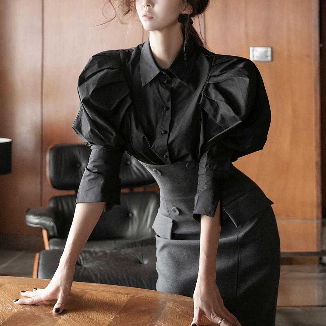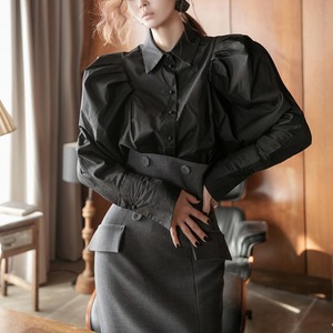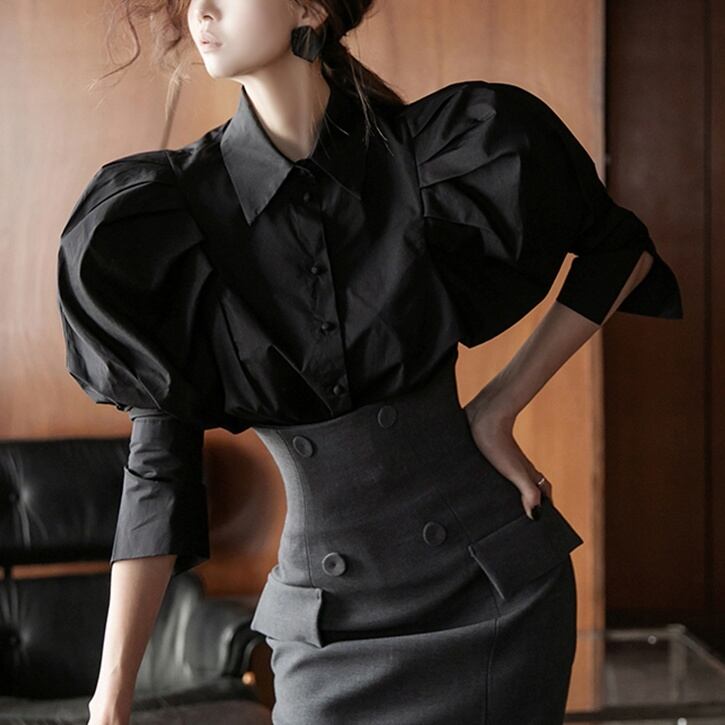 個性的でモダンな雰囲気が漂うボリューム袖のブラウス。 ボトムスにインしたコーデはメリハリがあって素敵◎ ペンシルスカートやワイドパンツと合わせてカッコよくエレガントに着こなして♪ 【商品詳細】 カラー:ブラック 素材:綿100% サイズ:S、M、L、XL 【商品サイズ】 S:胸囲 92cm/着丈 63cm/ 袖丈 64cm M:胸囲 96cm/着丈 64cm/袖丈 64.5cm L:胸囲 100cm/着丈 65cm/袖丈 65cm XL:胸囲 104cm/着丈 66cm/袖丈 65.5cm ※海外製品につき1cm~3cmの誤差がある場合が ございます。予めご了承くださいませ。 表記は目安として参考にしてください。 【お届けについて】 こちらの商品は海外店舗より直接発送となる為、 ご入金から1~3週間前後で発送致します。 (商品の状況によっては3週間以上かかる場合も あります。その際はご連絡させていただきます) ※沖縄・離島は、別途送料を頂戴しております。 ◼️注意事項 ・タイミングによっては 商品在庫切れにより 注文キャンセルとさせていただく場合も ございますので、予めご了承くださいませ。 ・こちらは海外インポート商品となります。 日本製とは検品基準とは異なり、作りが あまい場合がございます。 ・お手持ちのPCやスマートフォンの画面により 商品の色に若干異なる場合がございます。 ・イメージ違いやサイズ等、お客様都合による交換、 返品、キャンセルは対応出来かねます。 ———————————————— ご購入前に必ずお読みくださいませ ↓ ↓ ↓ https://shop.gramu-official.jp/about —————————————————