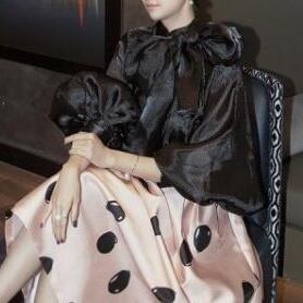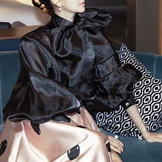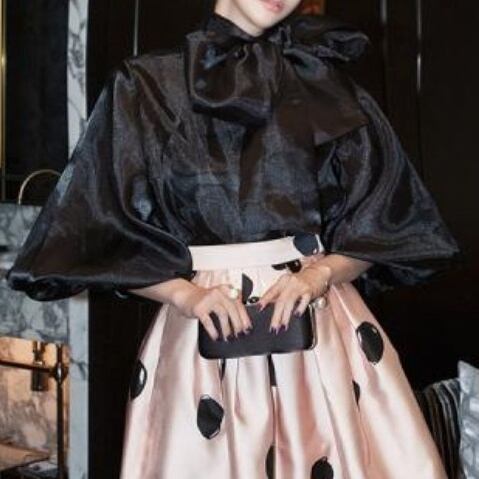 ランタンスリーブの艶かで華のあるシフォンブラウス。 襟元のリボンが顔回りを明るく可愛らしく演出。 スカートと合わせればあっという間にフェミニン&ゴージャスなお出かけコーデに仕上がります。 【商品詳細】 カラー:ブラック 素材:ポリエステル 100% 【商品サイズ】 S:肩幅 39.5cm,/胸囲 99cm/着丈 64cm/袖丈 69cm/袖口 23.5cm M:肩幅 40.5cm,/胸囲 103cm/着丈 64.5cm/ 袖丈 69.5cm/袖口 24.5cm L:肩幅 41.5c,m/胸囲 107cm/着丈 65cm/ 袖丈 70cm/袖口 25.5cm ※海外製品につき1cm~3cmの誤差がある場合が ございます。予めご了承くださいませ。 表記は目安として参考にしてください。 【お届けについて】 こちらの商品は海外店舗より直接発送となる為、 ご入金から1~3週間前後で発送致します。 (商品の状況によっては3週間以上かかる場合も あります。その際はご連絡させていただきます) ※沖縄・離島は、別途送料を頂戴しております。 ◼️注意事項 ・タイミングによっては 商品在庫切れにより 注文キャンセルとさせていただく場合も ございますので、予めご了承くださいませ。 ・こちらは海外インポート商品となります。 日本製とは検品基準とは異なり、作りが あまい場合がございます。 ・お手持ちのPCやスマートフォンの画面により 商品の色に若干異なる場合がございます。 ・イメージ違いやサイズ等、お客様都合による交換、 返品、キャンセルは対応出来かねます。 ———————————————— ご購入前に必ずお読みくださいませ ↓ ↓ ↓ https://shop.gramu-official.jp/about —————————————————