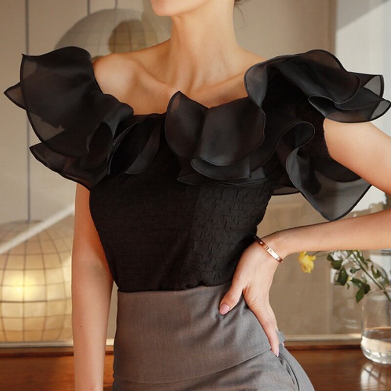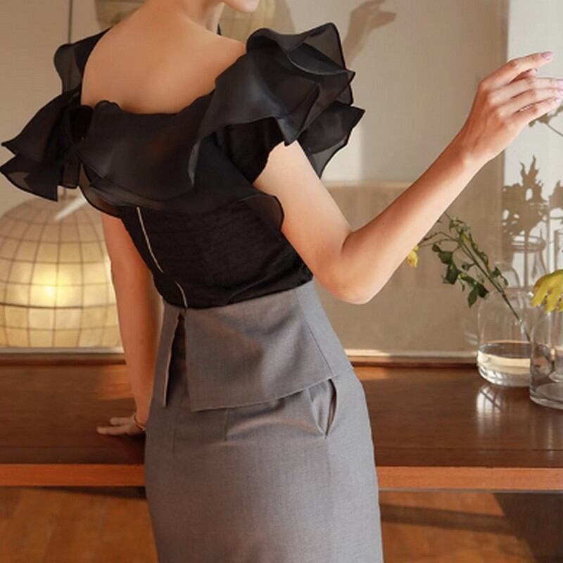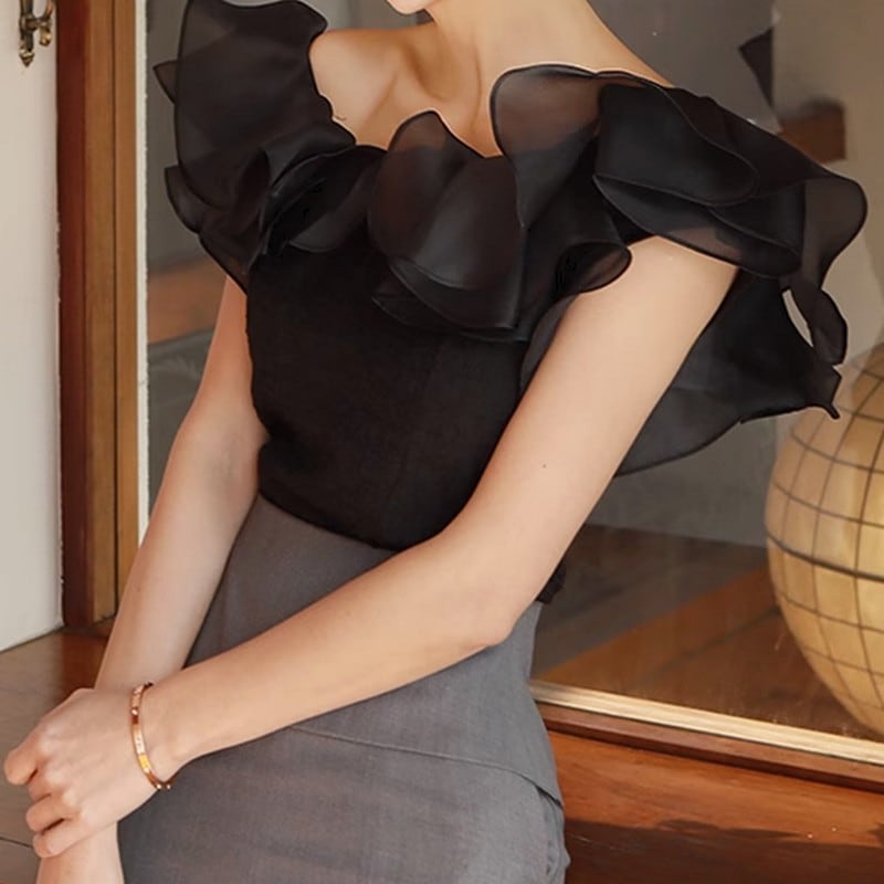 デコルテラインをキレイに見せてくれるシフォンフリルシャツ。 さりげなく二の腕をカバーしつつ、女性らしいスタイルに仕上がります。 ショート丈なのでハイウエストのボトムスと相性抜群です。 【商品詳細】 カラー:ブラック 素材:ポリエステル100% 【商品サイズ】 S:胸囲 86cm/着丈 37cm/袖丈 10cm M:胸囲 90cm/着丈 38cm/袖丈 10.5cm L:胸囲 94cm/着丈 39cm/袖丈 11cm XL:胸囲 98cm/着丈 40cm/袖丈 11.5cm ※海外製品につき1cm~3cmの誤差がある場合が ございます。予めご了承くださいませ。 表記は目安として参考にしてください。 【お届けについて】 こちらの商品は海外店舗より直接発送となる為、 ご入金から1~3週間前後で発送致します。 (商品の状況によっては3週間以上かかる場合も あります。その際はご連絡させていただきます) ※沖縄・離島は、別途送料を頂戴しております。 ◼️注意事項 ・タイミングによっては 商品在庫切れにより 注文キャンセルとさせていただく場合も ございますので、予めご了承くださいませ。 ・こちらは海外インポート商品となります。 日本製とは検品基準とは異なり、作りが あまい場合がございます。 ・お手持ちのPCやスマートフォンの画面により 商品の色に若干異なる場合がございます。 ・イメージ違いやサイズ等、お客様都合による交換、 返品、キャンセルは対応出来かねます。 ———————————————— ご購入前に必ずお読みくださいませ ↓ ↓ ↓ https://shop.gramu-official.jp/about —————————————————