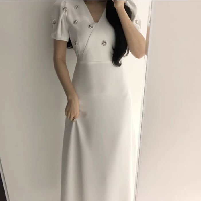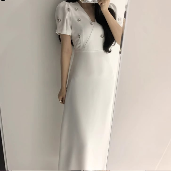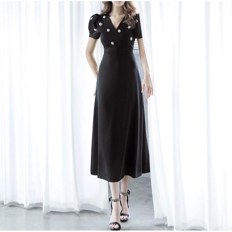 通勤、デート、お呼ばれなど様々な場面で大活躍しそうなブラックドレス。 スカート部分は広がり過ぎず大人っぽさがあり、パフスリーブやビジューで可愛らしさをプラス。 バランスの良いコーディネートがこれ一着で完成します♪ 【商品詳細】 カラー:ブラック、ホワイト 【商品サイズ】 S:肩幅 35cm/胸囲 84cm/着丈 105cm/袖丈 23cm/ウエスト 64cm M:肩幅 36cm/胸囲 88cm/着丈 106cm/袖丈 24cm/ウエスト 68cm L:肩幅 37cm/胸囲 92cm/着丈 107cm/袖丈 25cm/ウエスト 74cm XL:肩幅 38cm/胸囲 100cm/着丈 108cm/袖丈 26cm/ウエスト 80cm 2XL:肩幅 39cm/胸囲 104cm/着丈 109cm/袖丈 27cm/ウエスト 84cm ※海外製品につき1cm~3cmの誤差がある場合が ございます。予めご了承くださいませ。 表記は目安として参考にしてください。 【お届けについて】 こちらの商品は海外店舗より直接発送となる為、 ご入金から1~3週間前後で発送致します。 (商品の状況によっては3週間以上かかる場合も あります。その際はご連絡させていただきます) ※沖縄・離島は、別途送料を頂戴しております。 ◼️注意事項 ・タイミングによっては 商品在庫切れにより 注文キャンセルとさせていただく場合も ございますので、予めご了承くださいませ。 ・こちらは海外インポート商品となります。 日本製とは検品基準とは異なり、作りが あまい場合がございます。 ・お手持ちのPCやスマートフォンの画面により 商品の色に若干異なる場合がございます。 ・イメージ違いやサイズ等、お客様都合による交換、 返品、キャンセルは対応出来かねます。 ———————————————— ご購入前に必ずお読みくださいませ ↓ ↓ ↓ https://shop.gramu-official.jp/about —————————————————