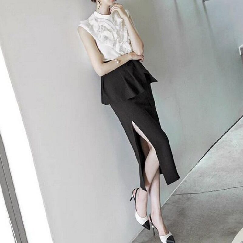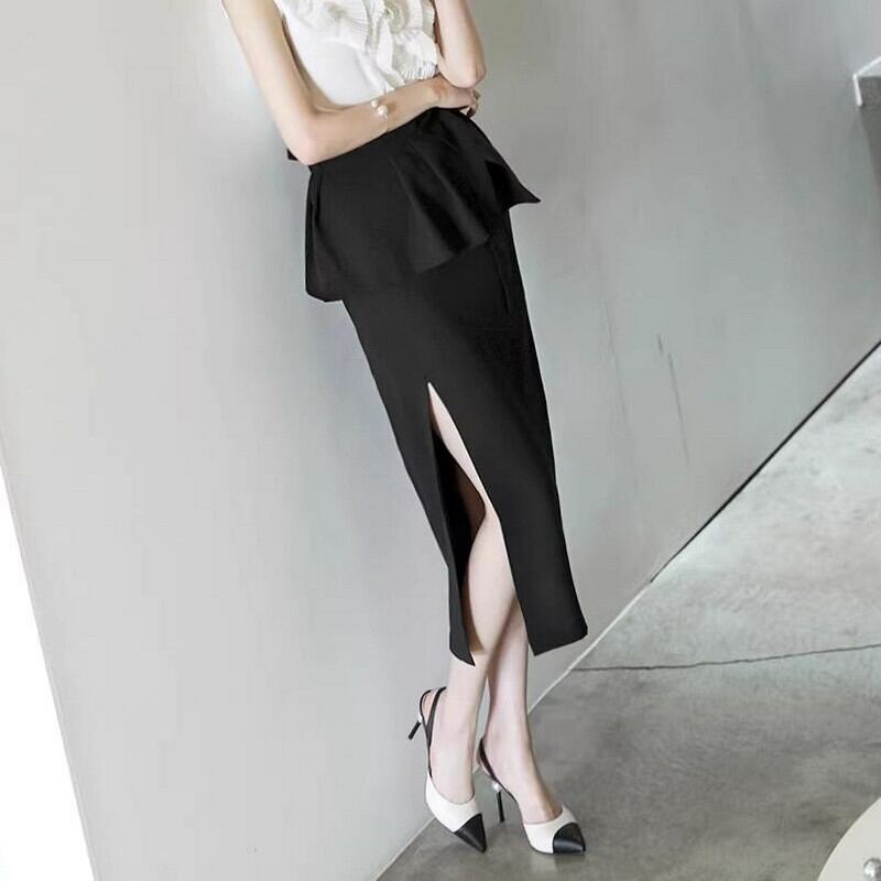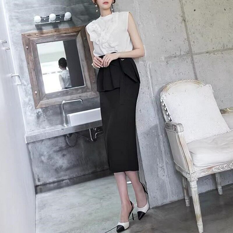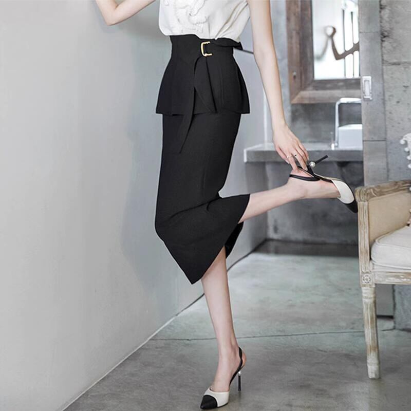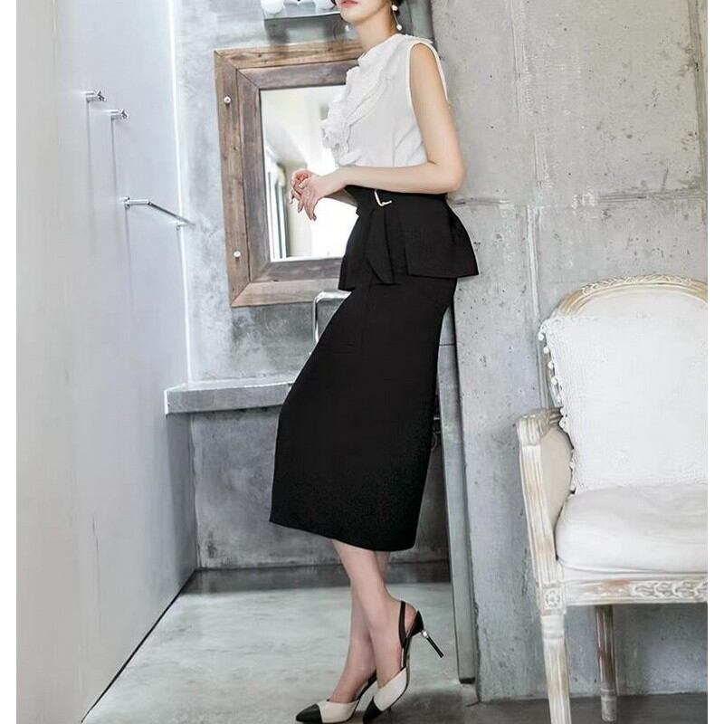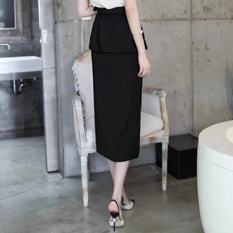 ハイウエストミドル丈タイトスカート バックヒップ G0080