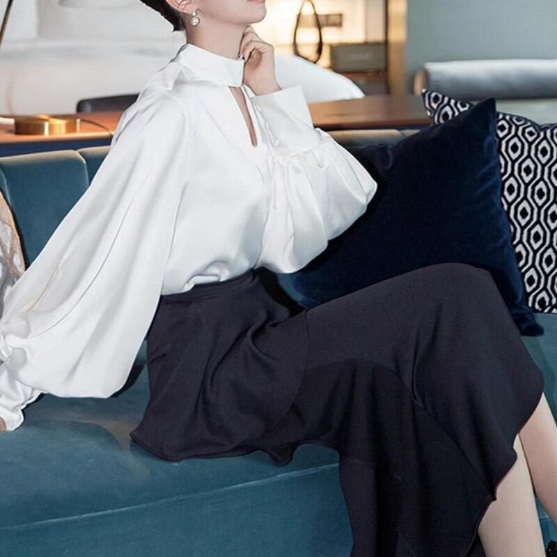 腰回りのフリルや全体のシルエットが美しいフィッシュテールスカート。