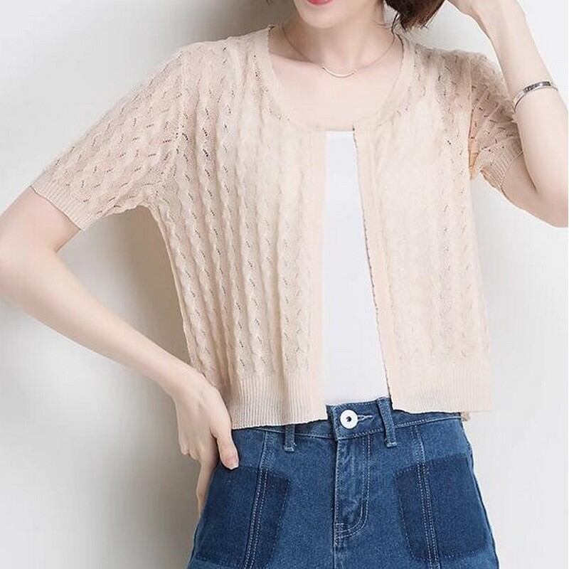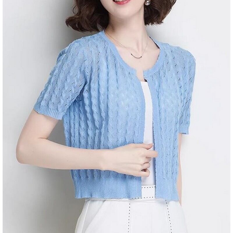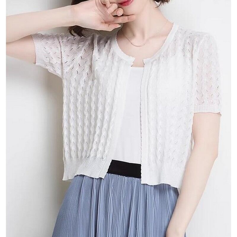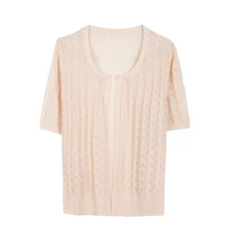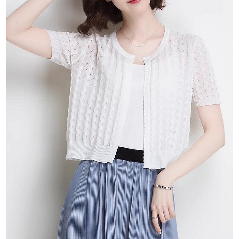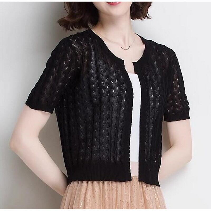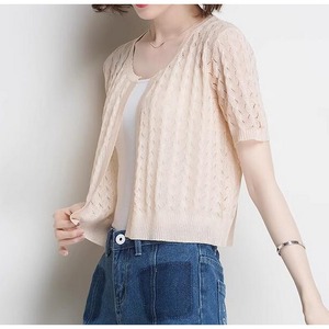 タンクトップやキャミソールに合わせると今年らしい透かし編みニット。 ラウンドネックで様々なインナーとも相性が良いアイテム。 ショート丈なのでワンピースやハイウエストのボトムスと合わせるのがおすすめです。 【商品詳細】 カラー:ホワイト、ブラック、アプリコット、ブルー 素材:レーヨン89% ナイロン11% 【商品サイズ】 S:胸囲 88cm/着丈 46cm M:胸囲 92cm/着丈 46cm L:胸囲 96cm/着丈 47cm XL:胸囲 100cm/着丈 48cm 2XL:胸囲 104cm/着丈 49cm 3XL:胸囲 108cm/着丈 50cm ※海外製品につき1cm~3cmの誤差がある場合が ございます。予めご了承くださいませ。 表記は目安として参考にしてください。 【お届けについて】 こちらの商品は海外店舗より直接発送となる為、 ご入金から1~3週間前後で発送致します。 (商品の状況によっては3週間以上かかる場合も あります。その際はご連絡させていただきます) ※沖縄・離島は、別途送料を頂戴しております。 ◼️注意事項 ・タイミングによっては 商品在庫切れにより 注文キャンセルとさせていただく場合も ございますので、予めご了承くださいませ。 ・こちらは海外インポート商品となります。 日本製とは検品基準とは異なり、作りが あまい場合がございます。 ・お手持ちのPCやスマートフォンの画面により 商品の色に若干異なる場合がございます。 ・イメージ違いやサイズ等、お客様都合による交換、 返品、キャンセルは対応出来かねます。 ———————————————— ご購入前に必ずお読みくださいませ ↓ ↓ ↓ https://shop.gramu-official.jp/about —————————————————