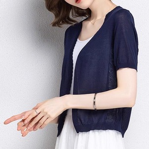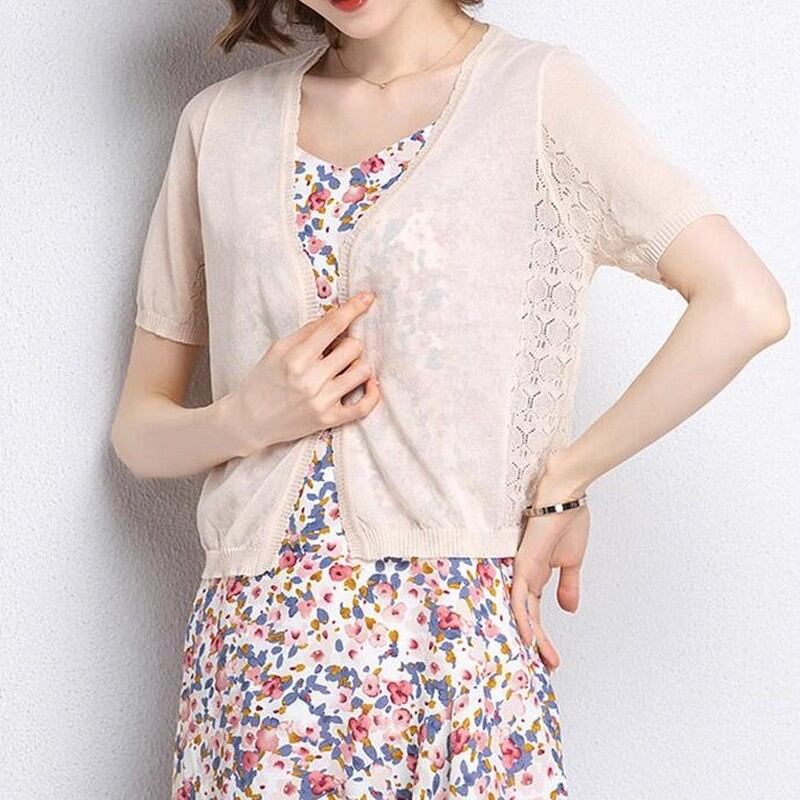 Vネックで顔回りをスッキリ見せてくれる半袖ニットカーディガン。 編み模様が可愛らしくワンピースやスカートに合わせるのがおすすめ◎ キャミソールやタンクトップとの相性が良く、これからの季節に大活躍しそうなアイテムです。 【商品詳細】 カラー:ネイビー、ホワイト、ブラック、アプリコット 素材:リヨセル 【商品サイズ】 S:胸囲 88cm/着丈 46cm M:胸囲 92cm/着丈 46cm L:胸囲 96cm/着丈 47cm XL:胸囲 100cm/着丈 48cm 2XL:胸囲 104cm/着丈 49cm 3XL:胸囲 108cm/着丈 50cm ※海外製品につき1cm~3cmの誤差がある場合が ございます。予めご了承くださいませ。 表記は目安として参考にしてください。 【お届けについて】 こちらの商品は海外店舗より直接発送となる為、 ご入金から1~3週間前後で発送致します。 (商品の状況によっては3週間以上かかる場合も あります。その際はご連絡させていただきます) ※沖縄・離島は、別途送料を頂戴しております。 ◼️注意事項 ・タイミングによっては 商品在庫切れにより 注文キャンセルとさせていただく場合も ございますので、予めご了承くださいませ。 ・こちらは海外インポート商品となります。 日本製とは検品基準とは異なり、作りが あまい場合がございます。 ・お手持ちのPCやスマートフォンの画面により 商品の色に若干異なる場合がございます。 ・イメージ違いやサイズ等、お客様都合による交換、 返品、キャンセルは対応出来かねます。 ———————————————— ご購入前に必ずお読みくださいませ ↓ ↓ ↓ https://shop.gramu-official.jp/about —————————————————