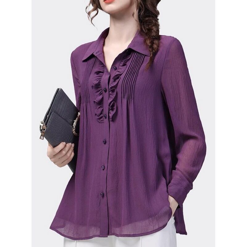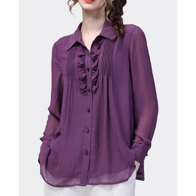 薄手の素材でサラッと着られるシフォンブラウス。 ピンタックとフリルが目を惹くフェミニンなデザイン。 流行に左右されず、ジャケットなどとも相性抜群のトップスです♪ 五分袖と長袖をご用意いたしました。 【商品詳細】 カラー:ブラック、パープル 素材:ポリエステル100% 【商品サイズ】 <五分袖> S:肩幅 37cm/胸囲 93cm/着丈 68cm/袖丈 37cm/袖口 25.5cm M:肩幅 38cm/胸囲 97cm/着丈 69cm/袖丈 38cm/袖口 26.5cm L:肩幅 39cm/胸囲 101cm/着丈 70cm/袖丈 39cm/袖口 27.5cm XL:肩幅 40.2cm/胸囲 106cm/着丈 71cm/袖丈 39cm/袖口 28.5cm 2XL:肩幅 41.4cm/胸囲 111cm/着丈 72cm/袖丈 39cm/袖口 29.5cm 3XL:肩幅 42.6cm/胸囲 116cm/着丈 73cm/袖丈 39cm/袖口 30.5cm 4XL:肩幅 43.8cm/胸囲 121cm/着丈 73cm/袖丈 39cm/袖口 31.5cm <長袖> S:肩幅 37cm/胸囲 93cm/着丈 68cm/袖丈 58cm/袖口 19cm M:肩幅 38cm/胸囲 97cm/着丈 69cm/袖丈 59cm/袖口 20cm L:肩幅 39cm/胸囲 101cm/着丈 70cm/袖丈 60cm/袖口 21cm XL:肩幅 40.2cm/胸囲 106cm/着丈 71cm/袖丈 60cm/袖口 22cm 2XL:肩幅 41.4cm/胸囲 111cm/着丈 72cm/袖丈 60cm/袖口 23cm 3XL:肩幅 42.6cm/胸囲 116cm/着丈 73cm/袖丈 60cm/袖口 24cm 4XL:肩幅 43.8cm/胸囲 121cm/着丈 73cm/袖丈 60cm/袖口 25cm ※海外製品につき1cm~3cmの誤差がある場合が ございます。予めご了承くださいませ。 表記は目安として参考にしてください。 【お届けについて】 こちらの商品は海外店舗より直接発送となる為、 ご入金から1~3週間前後で発送致します。 (商品の状況によっては3週間以上かかる場合も あります。その際はご連絡させていただきます) ※沖縄・離島は、別途送料を頂戴しております。 ◼️注意事項 ・タイミングによっては 商品在庫切れにより 注文キャンセルとさせていただく場合も ございますので、予めご了承くださいませ。 ・こちらは海外インポート商品となります。 日本製とは検品基準とは異なり、作りが あまい場合がございます。 ・お手持ちのPCやスマートフォンの画面により 商品の色に若干異なる場合がございます。 ・イメージ違いやサイズ等、お客様都合による交換、 返品、キャンセルは対応出来かねます。 ———————————————— ご購入前に必ずお読みくださいませ ↓ ↓ ↓ https://shop.gramu-official.jp/about —————————————————