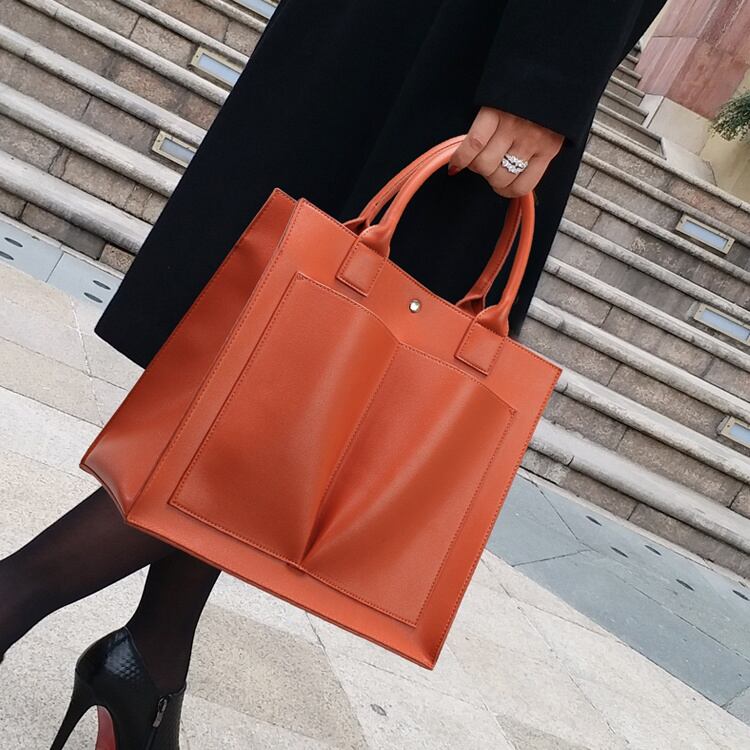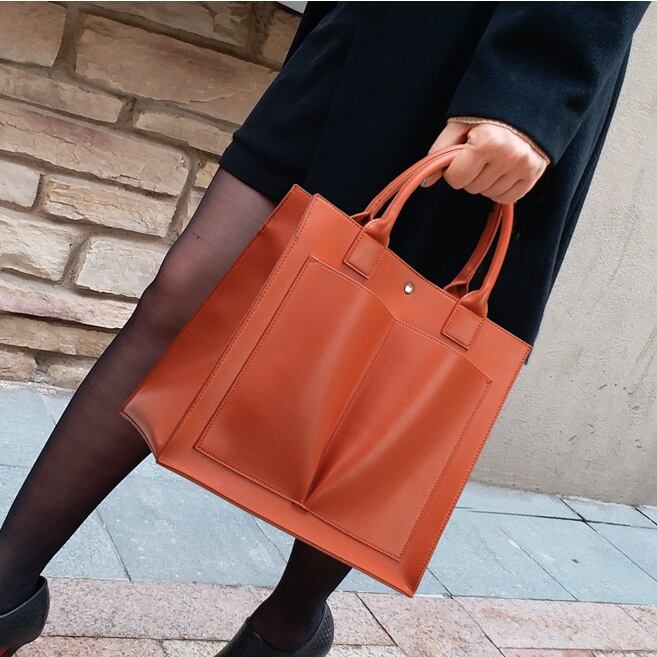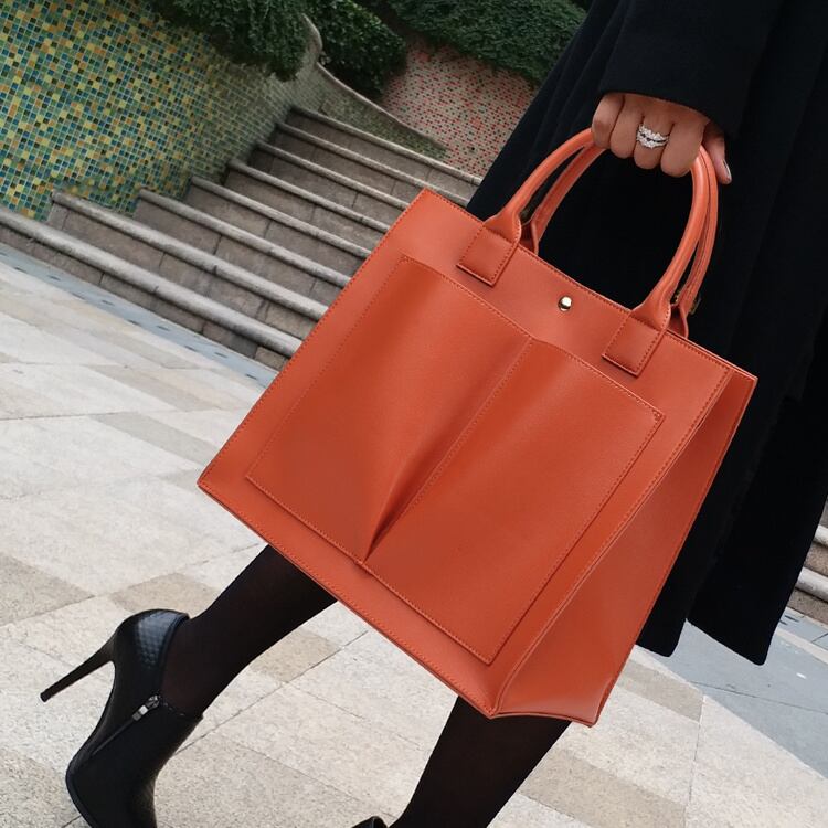 ポケットがアクセントのハンドバッグ。