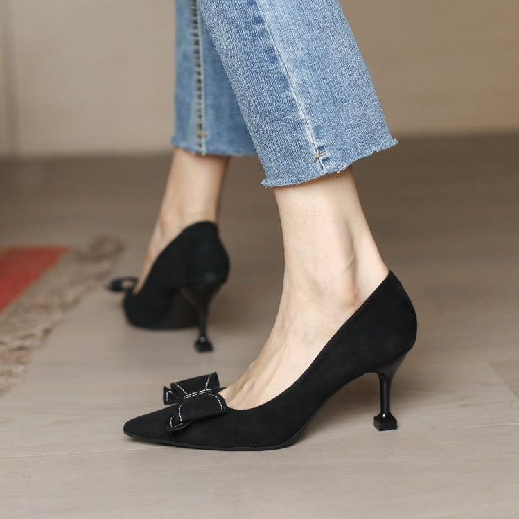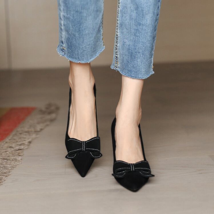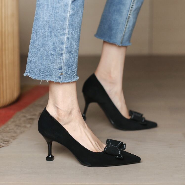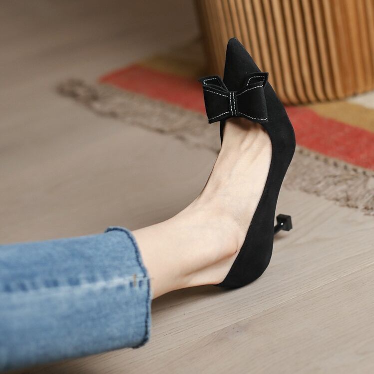 可愛らしいリボン付のポインテッドトゥパンプス。 ヒールの高さは3タイプありお好みでチョイス可能。 ワンピースやスカートはもちろんデニムと合わせた甘辛ミックスコーデにもおすすめです。 【商品詳細】 カラー:ブラック 素材:スエード 【商品サイズ】 サイズ:21.5cm、22cm、22.5cm、23cm、23.5cm、24cm、24.5cm、25cm、25.5cm ヒールの高さ:3cm、5cm、7cm ※海外製品につき多少の誤差がある場合が ございます。予めご了承くださいませ。 表記は目安として参考にしてください。 【お届けについて】 こちらの商品は海外店舗より直接発送となる為、 ご入金から1~3週間前後で発送致します。 (商品の状況によっては3週間以上かかる場合も あります。その際はご連絡させていただきます) ※沖縄・離島は、別途送料を頂戴しております。 ◼️注意事項 ・タイミングによっては 商品在庫切れにより 注文キャンセルとさせていただく場合も ございますので、予めご了承くださいませ。 ・こちらは海外インポート商品となります。 日本製とは検品基準とは異なり、作りが あまい場合がございます。 ・お手持ちのPCやスマートフォンの画面により 商品の色に若干異なる場合がございます。 ・イメージ違いやサイズ等、お客様都合による交換、 返品、キャンセルは対応出来かねます。 ———————————————— ご購入前に必ずお読みくださいませ ↓ ↓ ↓ https://shop.gramu-official.jp/about —————————————————