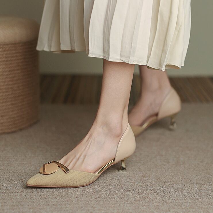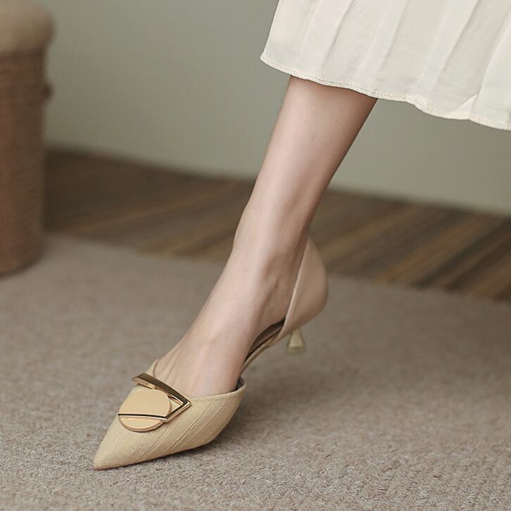 トップラインの飾りがアクセントのポインテッドトゥパンプス。 ヒールのデザインが個性的で差し色のゴールドがアクセントに♪ シンプルなコーデに取り入れても全体が華やかに見えるとっておきの一足です。 【商品詳細】 カラー:ベージュ、ブラック 素材:リネン 【商品サイズ】 サイズ:22cm、22.5cm、23cm、23.5cm、24cm、24.5cm ヒールの高さ:5cm ※海外製品につき多少の誤差がある場合が ございます。予めご了承くださいませ。 表記は目安として参考にしてください。 【お届けについて】 こちらの商品は海外店舗より直接発送となる為、 ご入金から1~3週間前後で発送致します。 (商品の状況によっては3週間以上かかる場合も あります。その際はご連絡させていただきます) ※沖縄・離島は、送料1000円を頂戴しております。 ◼️注意事項 ・タイミングによっては 商品在庫切れにより 注文キャンセルとさせていただく場合も ございますので、予めご了承くださいませ。 ・こちらは海外インポート商品となります。 日本製とは検品基準とは異なり、作りが あまい場合がございます。 ・お手持ちのPCやスマートフォンの画面により 商品の色に若干異なる場合がございます。 ・イメージ違いやサイズ等、お客様都合による交換、 返品、キャンセルは対応出来かねます。 ———————————————— ご購入前に必ずお読みくださいませ ↓ ↓ ↓ https://shop.gramu-official.jp/about —————————————————