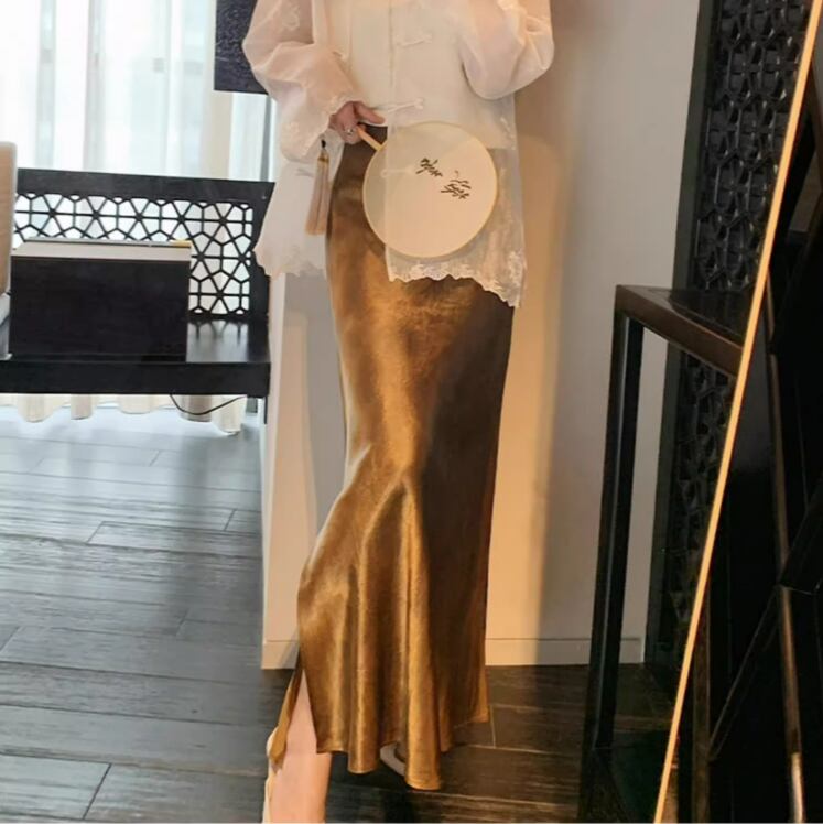 【商品詳細】 カラー:ゴールド、ブラック 素材:トリアセテート 100% 【商品サイズ】 M:ウエスト 62-78㎝/スカート丈 95cm L:ウエスト 66-82㎝/スカート丈 95cm XL:ウエスト 70-86㎝/スカート丈 95cm ※海外製品につき1cm~3cmの誤差がある場合が ございます。予めご了承くださいませ。 表記は目安として参考にしてください。 【お届けについて】 こちらの商品は海外店舗より直接発送となる為、 ご入金から1~3週間前後で発送致します。 (商品の状況によっては3週間以上かかる場合も あります。その際はご連絡させていただきます) ※沖縄・離島は、別途送料を頂戴しております。 ◼️注意事項 ・タイミングによっては 商品在庫切れにより 注文キャンセルとさせていただく場合も ございますので、予めご了承くださいませ。 ・こちらは海外インポート商品となります。 日本製とは検品基準とは異なり、作りが あまい場合がございます。 ・お手持ちのPCやスマートフォンの画面により 商品の色に若干異なる場合がございます。 ・イメージ違いやサイズ等、お客様都合による交換、 返品、キャンセルは対応出来かねます。 ———————————————— ご購入前に必ずお読みくださいませ ↓ ↓ ↓ https://shop.gramu-official.jp/about —————————————————
