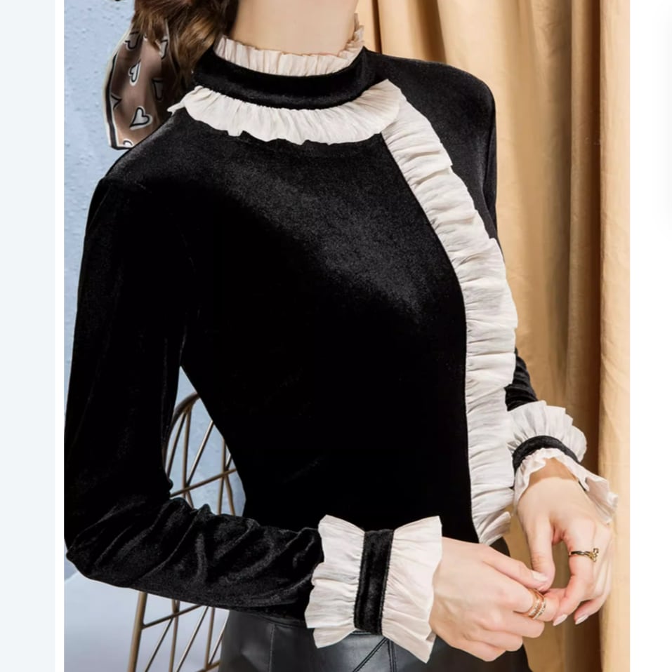 エレガントな黒のベルベット素材のトップス。 フリルがアクセントになり、シックでクラシカルなデザインが魅力的。 特別なシーンにもぴったりで華やかさを楽しめます。 【商品詳細】 カラー:ブラック 素材:ポリエステル 91.5%、スパンデックス 8.5% 【商品サイズ】 S:肩幅 35cm/胸囲 83cm/着丈 57cm/袖丈 57cm/袖口 18cm/ウエスト 74cm/裾まわり 86cm M:肩幅 36cm/胸囲 87cm/着丈 58cm/袖丈 58cm/袖口 19cm/ウエスト 78cm/裾まわり 90cm L:肩幅 37cm/胸囲 91cm/着丈 59cm/袖丈 59cm/袖口 20cm/ウエスト 82cm/裾まわり 94cm XL:肩幅 38cm/胸囲 95cm/着丈 60cm/袖丈 60cm/袖口 21cm/ウエスト 86cm/裾まわり 98cm 2XL:肩幅 39cm/胸囲 99cm/着丈 61cm/袖丈 61cm/袖口 22cm/ウエスト 90cm/裾まわり 102cm ※海外製品につき1cm~3cmの誤差がある場合が ございます。予めご了承くださいませ。 表記は目安として参考にしてください。 【お届けについて】 こちらの商品は海外店舗より直接発送となる為、 ご入金から1~3週間前後で発送致します。 (商品の状況によっては3週間以上かかる場合も あります。その際はご連絡させていただきます) ※沖縄・離島は、別途送料を頂戴しております。 ◼️注意事項 ・タイミングによっては 商品在庫切れにより 注文キャンセルとさせていただく場合も ございますので、予めご了承くださいませ。 ・こちらは海外インポート商品となります。 日本製とは検品基準とは異なり、作りが あまい場合がございます。 ・お手持ちのPCやスマートフォンの画面により 商品の色に若干異なる場合がございます。 ・イメージ違いやサイズ等、お客様都合による交換、 返品、キャンセルは対応出来かねます。 ———————————————— ご購入前に必ずお読みくださいませ ↓ ↓ ↓ https://shop.gramu-official.jp/about —————————————————