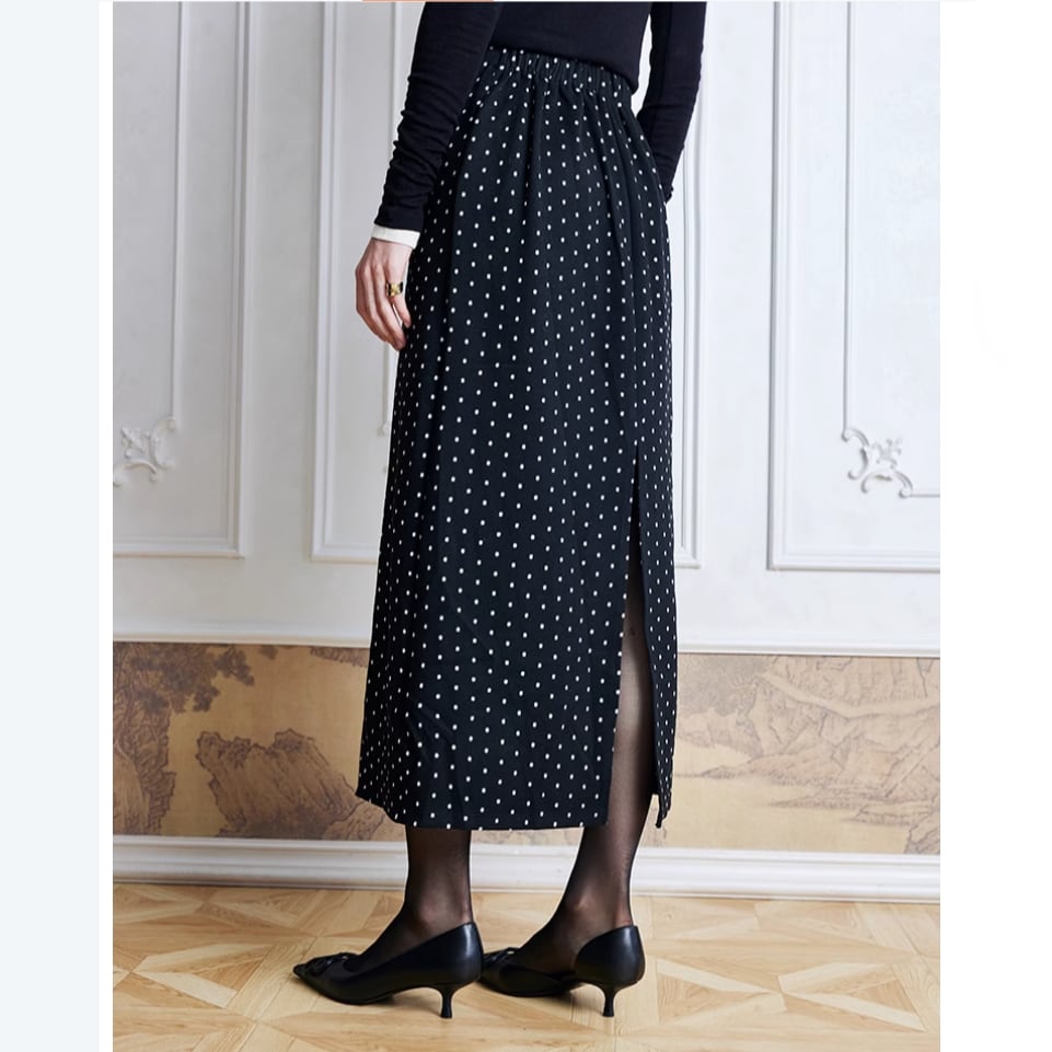 シックなドット柄が魅力のロングスカート。 シンプルながら上品で、どんなトップスにも合わせやすく、 シルエットが美しく、オフィスからお出かけまで幅広く活躍します。 【商品詳細】 カラー:ブラック、グレー 素材:ポリエステル 71%、レーヨン 26%、スパンデックス 3% 【商品サイズ】 S:ウエスト 63cm/ヒップ 95.5cm/スカート丈 90cm M:ウエスト 66cm/ヒップ 99.5cm/スカート丈 91cm L:ウエスト 69cm/ヒップ 103.5cm/スカート丈 92cm <参考> モデル(サイズM):身長 175cm、胸囲 82㎝、ウエスト 59㎝、ヒップ 88㎝ ※海外製品につき1cm~3cmの誤差がある場合が ございます。予めご了承くださいませ。 表記は目安として参考にしてください。 【お届けについて】 こちらの商品は海外店舗より直接発送となる為、 ご入金から1~3週間前後で発送致します。 (商品の状況によっては3週間以上かかる場合も あります。その際はご連絡させていただきます) ※沖縄・離島は、別途送料を頂戴しております。 ◼️注意事項 ・タイミングによっては 商品在庫切れにより 注文キャンセルとさせていただく場合も ございますので、予めご了承くださいませ。 ・こちらは海外インポート商品となります。 日本製とは検品基準とは異なり、作りが あまい場合がございます。 ・お手持ちのPCやスマートフォンの画面により 商品の色に若干異なる場合がございます。 ・イメージ違いやサイズ等、お客様都合による交換、 返品、キャンセルは対応出来かねます。 ———————————————— ご購入前に必ずお読みくださいませ ↓ ↓ ↓ https://shop.gramu-official.jp/about —————————————————