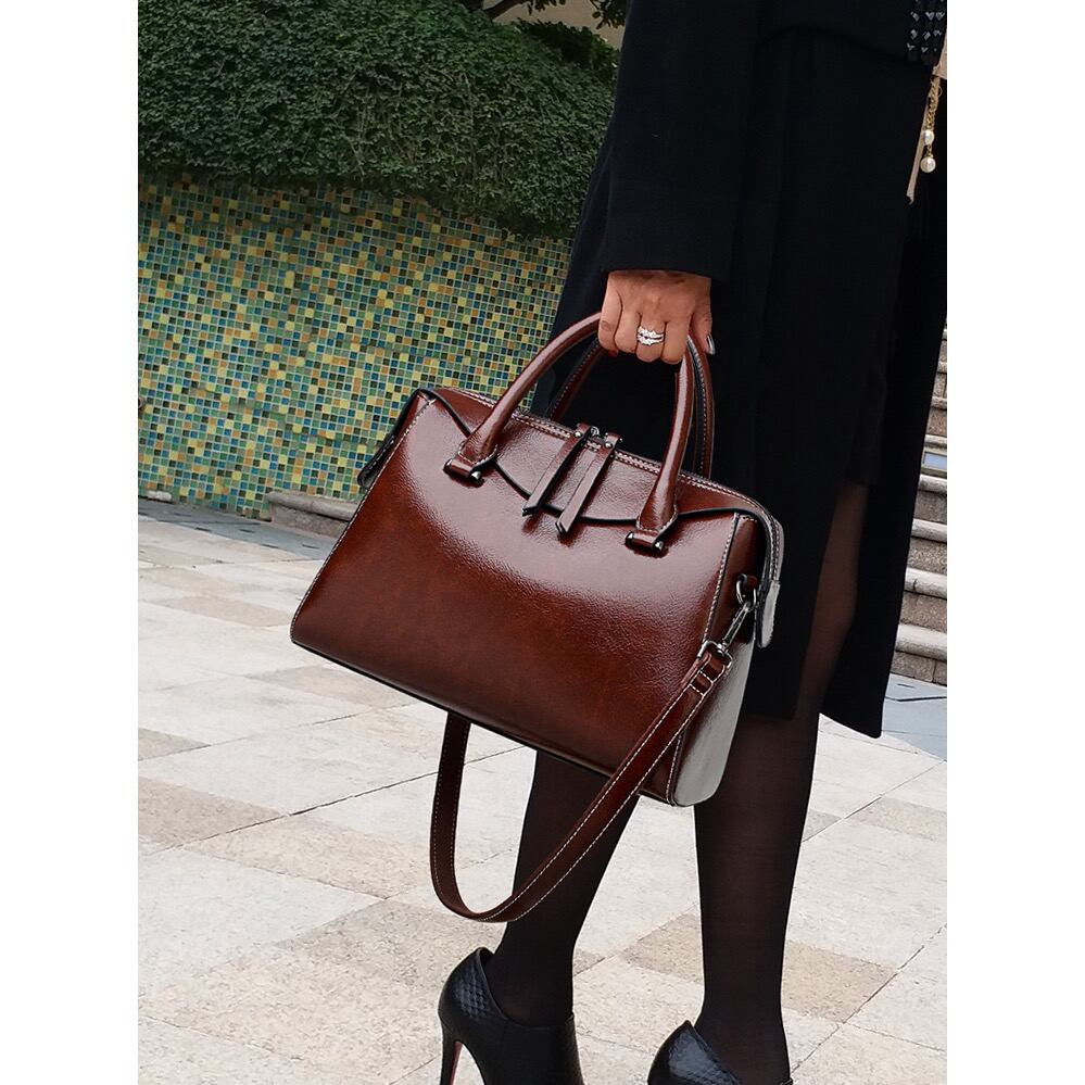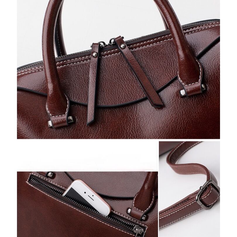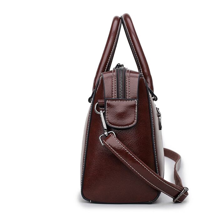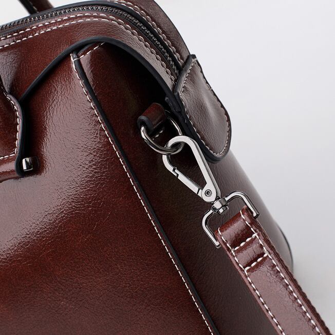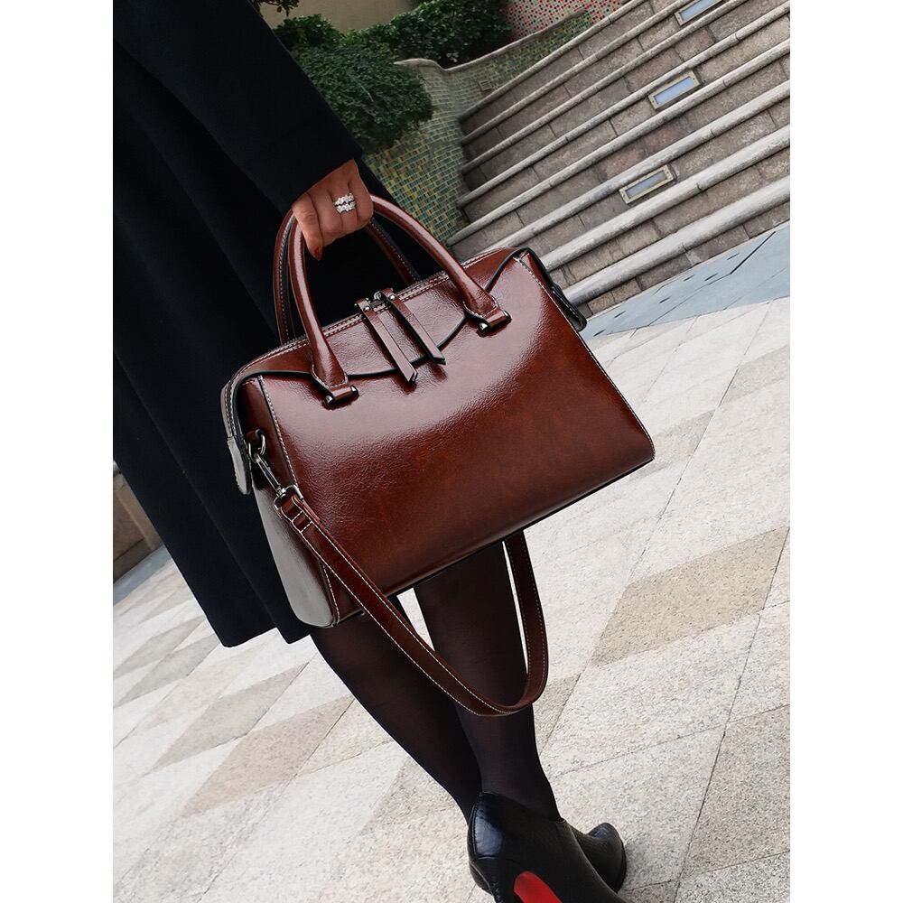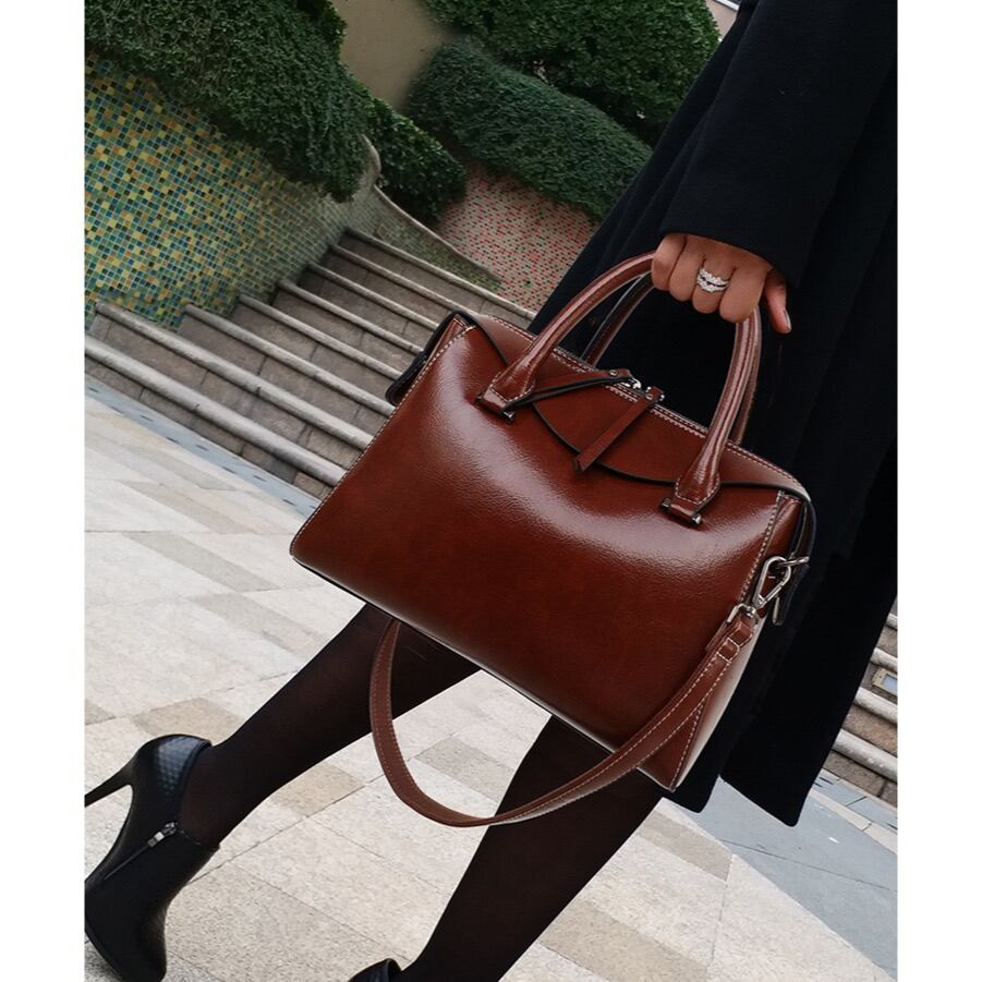 ジップ開閉でマチがしっかりとあるショルダーストラップ付のハンドバッグ。