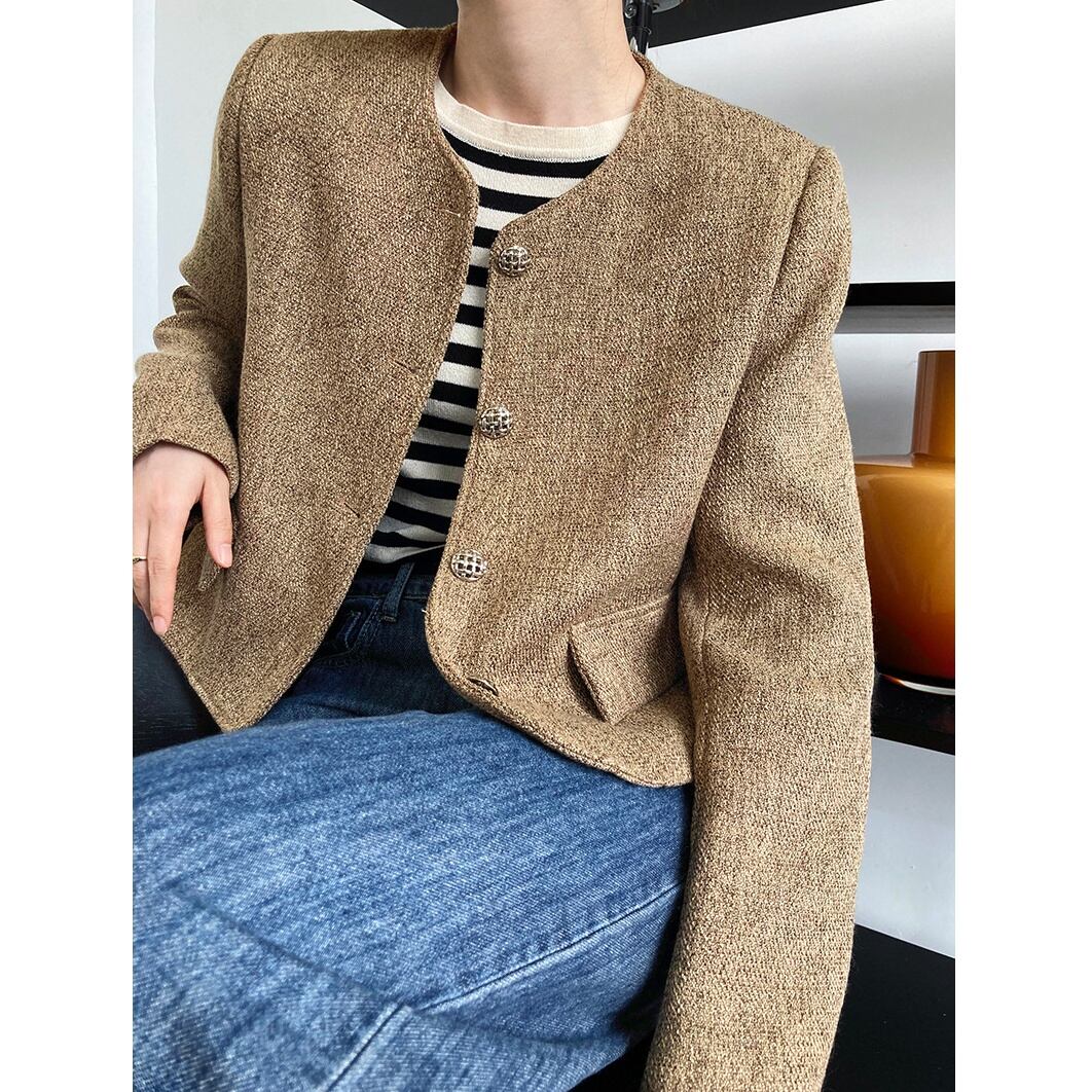 秋らしいカラーで今季人気のショート丈ジャケット。 ノーカラーでシンプルなデザインだからインナーとも合わせやすくて◎ デニムと合わせてカジュアルダウンさせればデイリーにもおすすめです。 【商品詳細】 カラー:グレー、ブラウン 【商品サイズ】 M:肩幅 39cm/胸囲 102cm/着丈 49cm/袖丈 59cm L:肩幅 41cm/胸囲 106cm/着丈 50cm/袖丈 60cm ※海外製品につき1cm~3cmの誤差がある場合が ございます。予めご了承くださいませ。 表記は目安として参考にしてください。 【お届けについて】 こちらの商品は海外店舗より直接発送となる為、 ご入金から1~3週間前後で発送致します。 (商品の状況によっては3週間以上かかる場合も あります。その際はご連絡させていただきます) ※沖縄・離島は、送料1000円を頂戴しております。 ◼️注意事項 ・タイミングによっては 商品在庫切れにより 注文キャンセルとさせていただく場合も ございますので、予めご了承くださいませ。 ・こちらは海外インポート商品となります。 日本製とは検品基準とは異なり、作りが あまい場合がございます。 ・お手持ちのPCやスマートフォンの画面により 商品の色に若干異なる場合がございます。 ・イメージ違いやサイズ等、お客様都合による交換、 返品、キャンセルは対応出来かねます。 ———————————————— ご購入前に必ずお読みくださいませ ↓ ↓ ↓ https://shop.gramu-official.jp/about —————————————————
