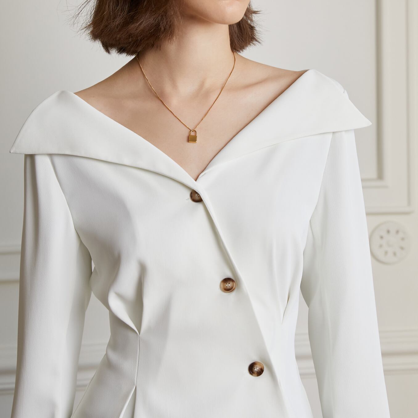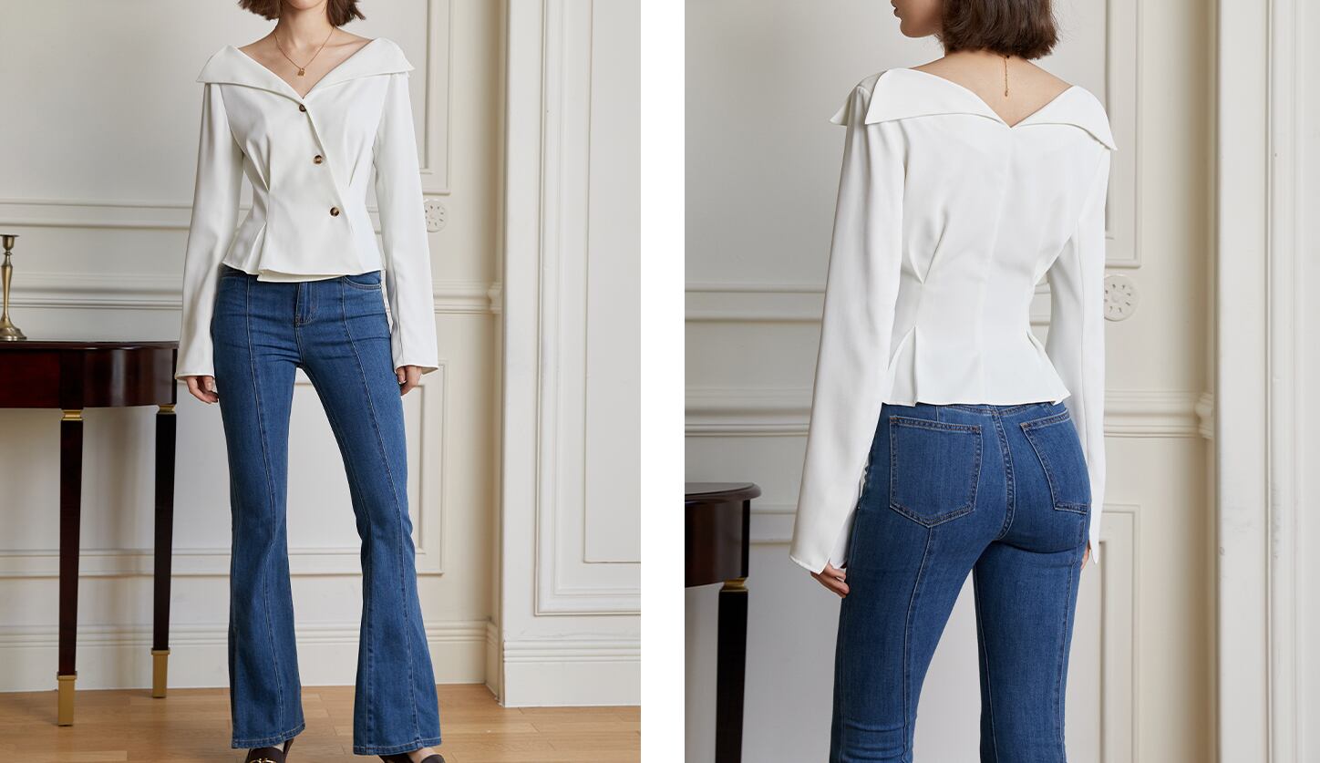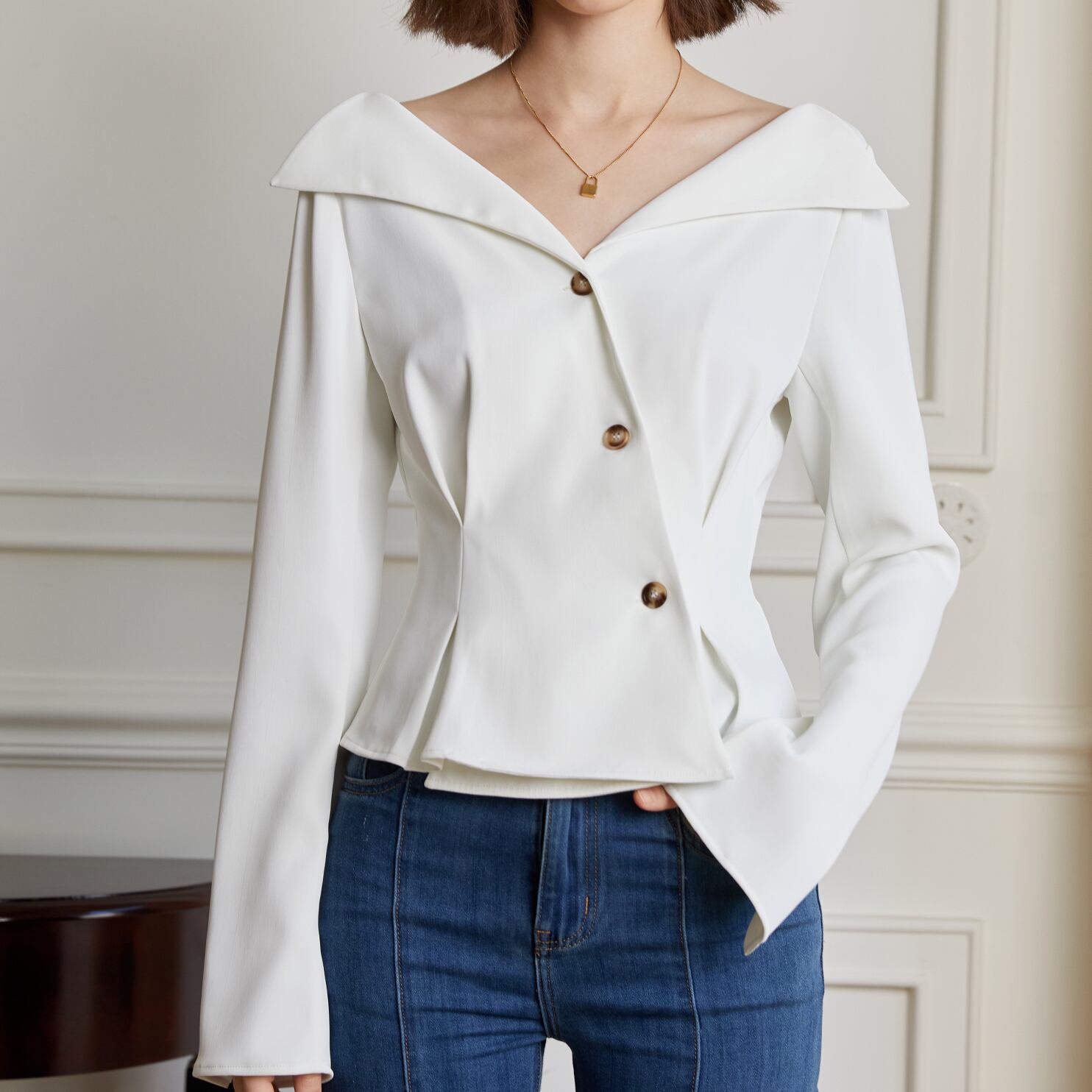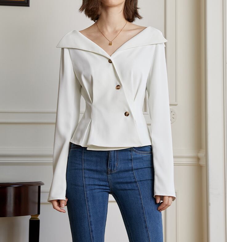 デコルテラインが美しく見える長袖ブラウス。 大きめのボタンがアクセントのアシンメトリーデザイン。 デニムやワイドパンツと合わせるだけできちんと感のあるコーデが完成♪ 【商品詳細】 カラー:ホワイト 素材:ポリエステル98%、スパンデックス2% 【商品サイズ】 XS:肩幅 39cm/胸囲 92cm/着丈 52cm/袖丈 62cm/袖口 32cm/ウエスト 66cm S:肩幅 40cm/胸囲 96cm/着丈 53cm/袖丈 63cm/袖口 33.2cm/ウエスト 70cm M:肩幅 41cm/胸囲 100cm/着丈 54cm/袖丈 64cm/袖口 34.4cm/ウエスト 74cm L:肩幅 42cm/胸囲 106cm/着丈 55cm/袖丈 65cm/袖口 36.2cm/ウエスト 80cm ※海外製品につき1cm~3cmの誤差がある場合が ございます。予めご了承くださいませ。 表記は目安として参考にしてください。 【お届けについて】 こちらの商品は海外店舗より直接発送となる為、 ご入金から1~3週間前後で発送致します。 (商品の状況によっては3週間以上かかる場合も あります。その際はご連絡させていただきます) ※沖縄・離島は、送料1000円を頂戴しております。 ◼️注意事項 ・タイミングによっては 商品在庫切れにより 注文キャンセルとさせていただく場合も ございますので、予めご了承くださいませ。 ・こちらは海外インポート商品となります。 日本製とは検品基準とは異なり、作りが あまい場合がございます。 ・お手持ちのPCやスマートフォンの画面により 商品の色に若干異なる場合がございます。 ・イメージ違いやサイズ等、お客様都合による交換、 返品、キャンセルは対応出来かねます。 ———————————————— ご購入前に必ずお読みくださいませ ↓ ↓ ↓ https://shop.gramu-official.jp/about —————————————————