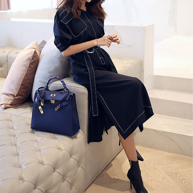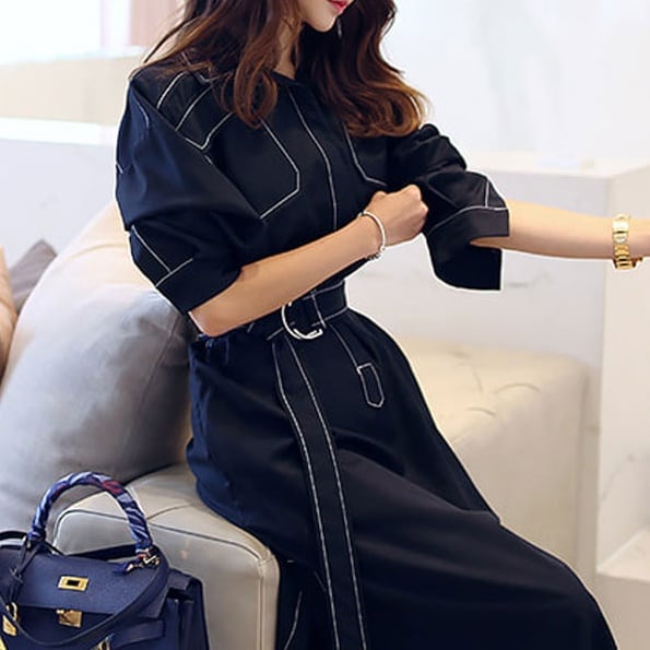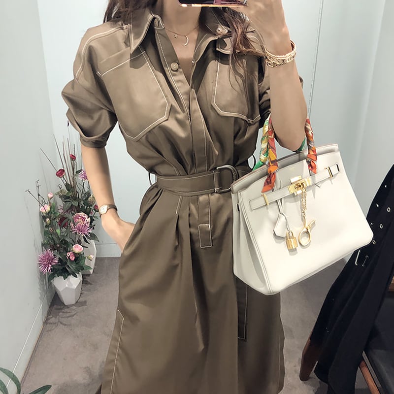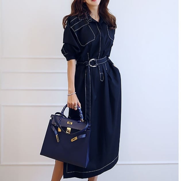 ホワイトカラーのステッチがアクセントのシャツワンピース。 共布のベルトでウエストをシェイプすればメリハリのあるコーデが完成。 これからの季節のデートやお出かけにぴったりな一着です。 【商品詳細】 カラー:ネイビー、カーキ 【商品サイズ】 S:肩幅 57cm/胸囲 110cm/着丈 110cm/ウエスト 66cm M:肩幅 58cm/胸囲 114cm/着丈 111cm/ウエスト 70cm L:肩幅 59cm/胸囲 118cm/着丈 112cm/ウエスト 74cm XL:肩幅 60cm/胸囲 121cm/着丈 113cm/ウエスト 78cm ※海外製品につき1cm~3cmの誤差がある場合が ございます。予めご了承くださいませ。 表記は目安として参考にしてください。 【お届けについて】 こちらの商品は海外店舗より直接発送となる為、 ご入金から1~3週間前後で発送致します。 (商品の状況によっては3週間以上かかる場合も あります。その際はご連絡させていただきます) ※沖縄・離島は、送料1000円を頂戴しております。 ◼️注意事項 ・タイミングによっては 商品在庫切れにより 注文キャンセルとさせていただく場合も ございますので、予めご了承くださいませ。 ・こちらは海外インポート商品となります。 日本製とは検品基準とは異なり、作りが あまい場合がございます。 ・お手持ちのPCやスマートフォンの画面により 商品の色に若干異なる場合がございます。 ・イメージ違いやサイズ等、お客様都合による交換、 返品、キャンセルは対応出来かねます。 ———————————————— ご購入前に必ずお読みくださいませ ↓ ↓ ↓ https://shop.gramu-official.jp/about —————————————————
