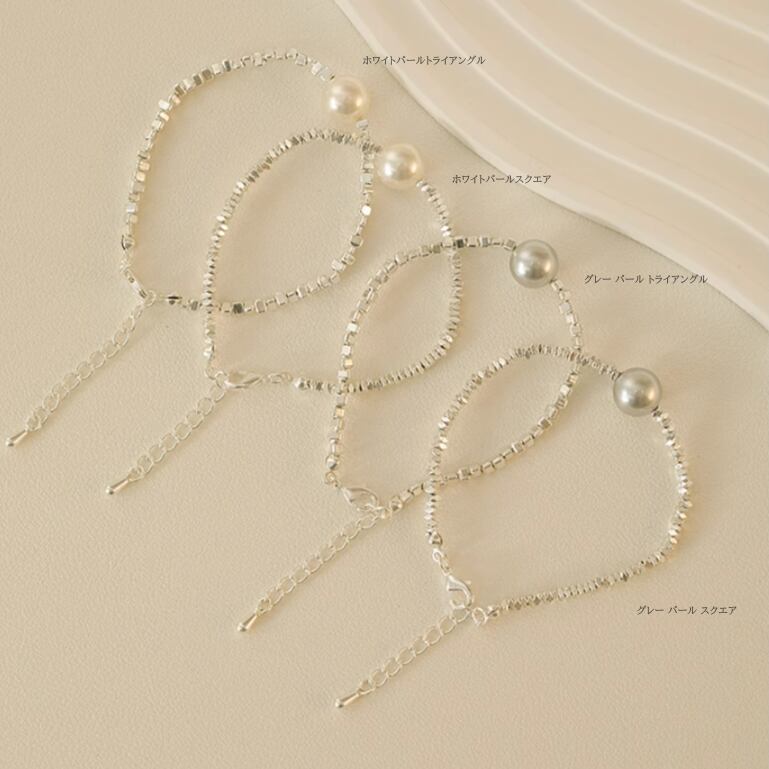 【商品詳細】 カラー:ホワイトゴールド(トライアングル、スクエア) 素材:合金 【商品サイズ】 <ブレスレット> サイズ:全長約16.5cm、延長チェーン約3.5cm、パール約0.9cm <リング> サイズ:内径約1.7cm(ゴム収縮)、パール約0.5cm ※海外製品につき多少の誤差がある場合が ございます。予めご了承くださいませ。 表記は目安として参考にしてください。 【お届けについて】 こちらの商品は海外店舗より直接発送となる為、 ご入金から1~3週間前後で発送致します。 (商品の状況によっては3週間以上かかる場合も あります。その際はご連絡させていただきます) ※沖縄・離島は、別途送料を頂戴しております。 ◼️注意事項 ・タイミングによっては 商品在庫切れにより 注文キャンセルとさせていただく場合も ございますので、予めご了承くださいませ。 ・こちらは海外インポート商品となります。 日本製とは検品基準とは異なり、作りが あまい場合がございます。 ・お手持ちのPCやスマートフォンの画面により 商品の色に若干異なる場合がございます。 ・イメージ違いやサイズ等、お客様都合による交換、 返品、キャンセルは対応出来かねます。 ———————————————— ご購入前に必ずお読みくださいませ ↓ ↓ ↓ https://shop.gramu-official.jp/about —————————————————