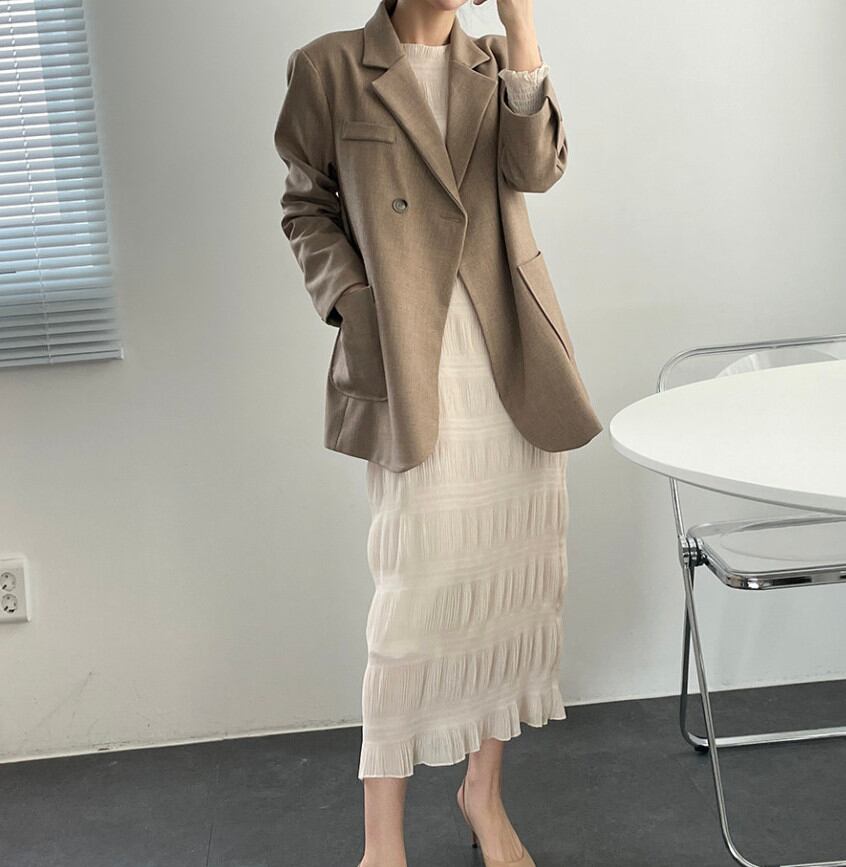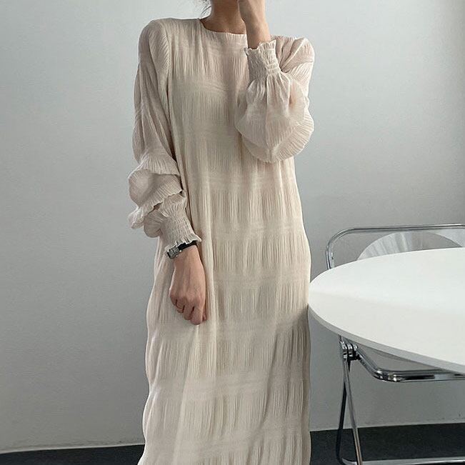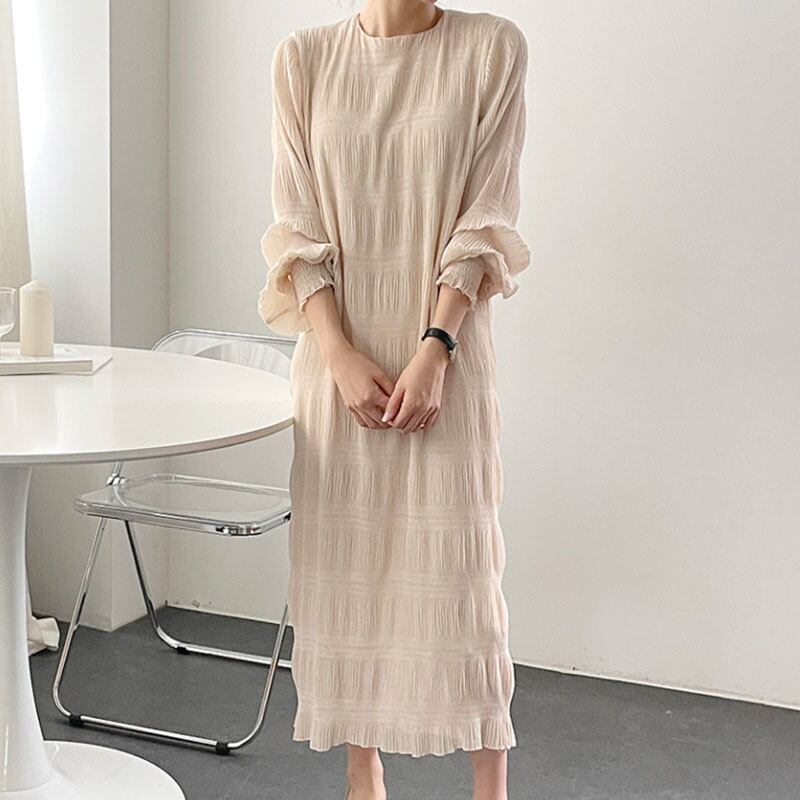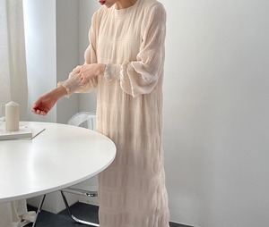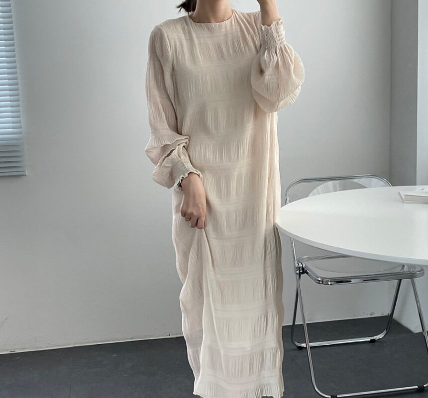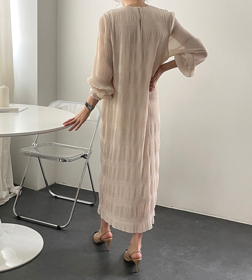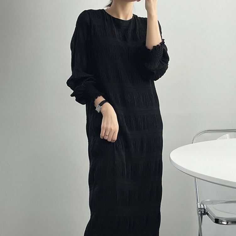 シャーリング風 ストレートシルエットマキシ丈ワンピース G0455