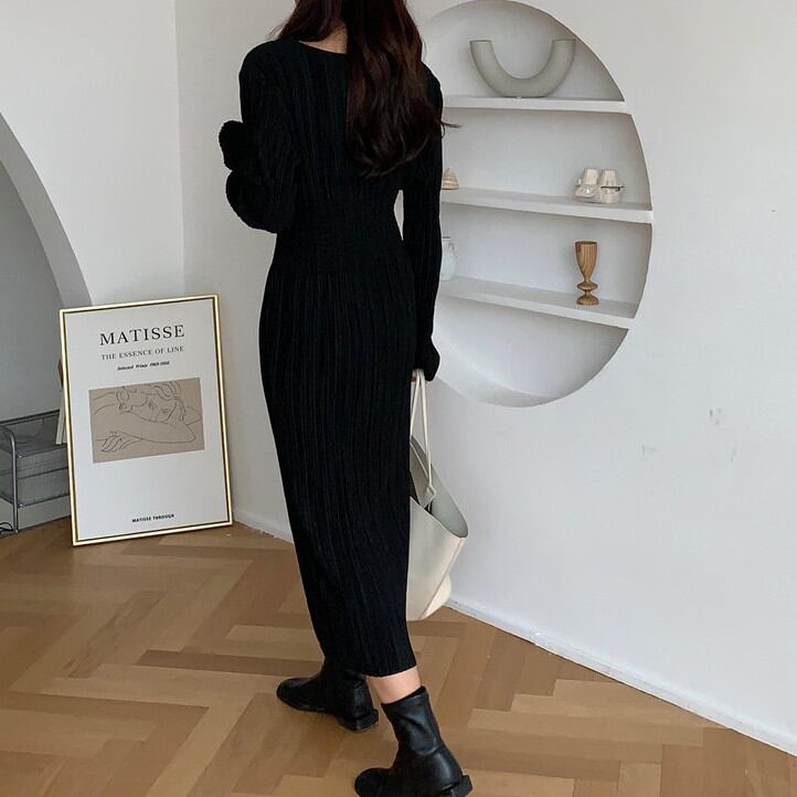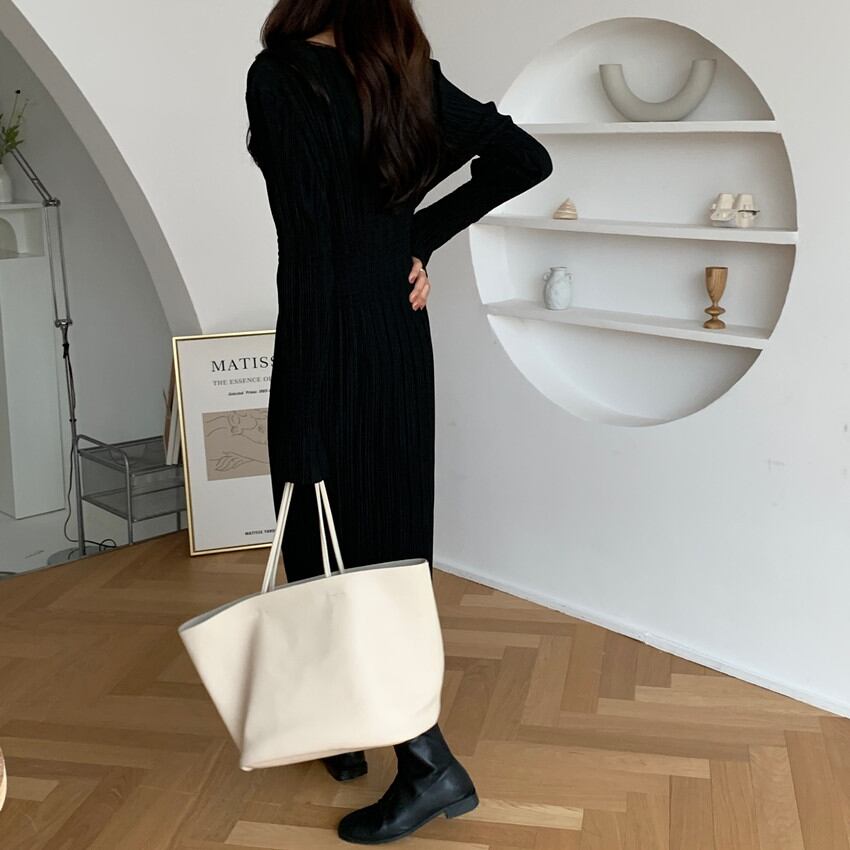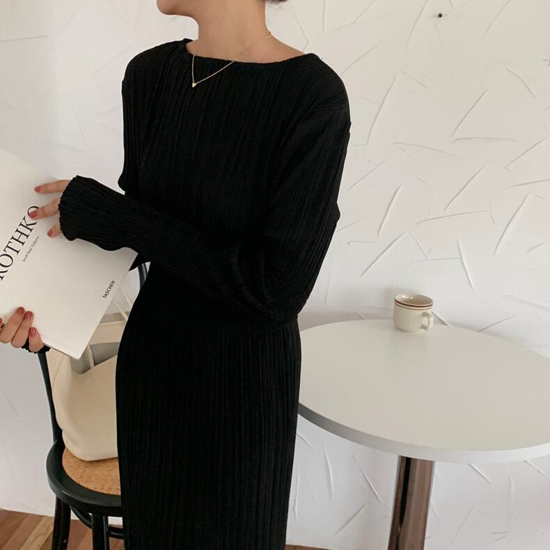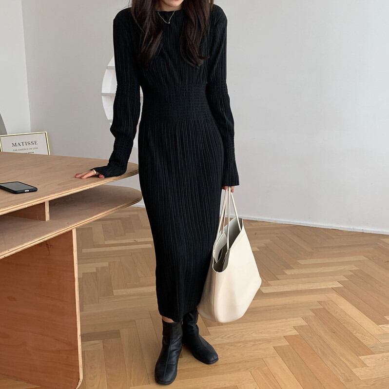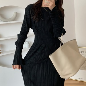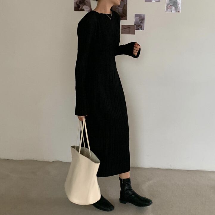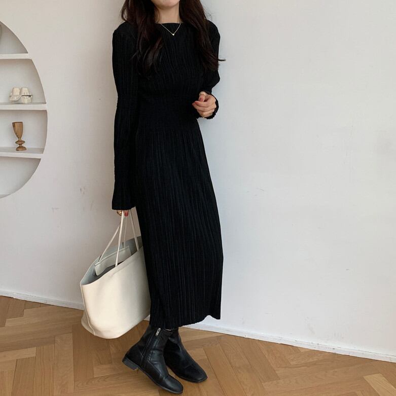 ワッシャープリーツ ボトルシルエットマキシ丈ワンピース G0456