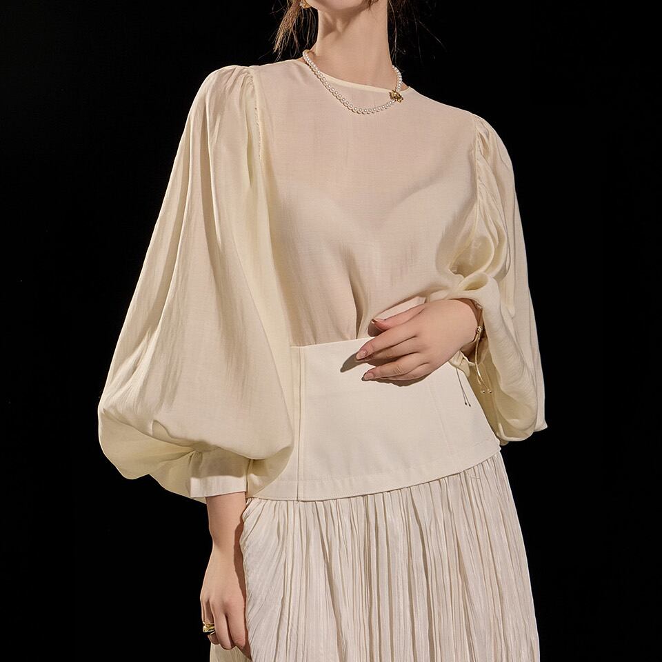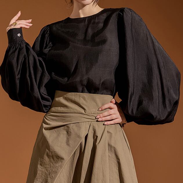 ラウンドネックのプルオーバーブラウス。 袖コンシャスでボトムスにインしたコーデはメリハリがあって◎ シルエットで魅せるシンプルでオシャレなブラウスです。 【商品詳細】 カラー:ブラック、アプリコット 素材:リヨセル60%、ポリエステル40% 【商品サイズ】 S:肩幅 33cm/胸囲 100cm/着丈(前丈) 62cm/袖丈 63cm/袖口 24cm M:肩幅 34cm/胸囲 104cm/着丈(前丈) 63cm/袖丈 64cm/袖口 25cm L:肩幅 35cm/胸囲 108cm/着丈(前丈) 64cm/袖丈 65cm/袖口 26cm XL:肩幅 36cm/胸囲 110cm/着丈(前丈) 65cm/袖丈 66cm/袖口 27cm ※海外製品につき1cm~3cmの誤差がある場合が ございます。予めご了承くださいませ。 表記は目安として参考にしてください。 【お届けについて】 こちらの商品は海外店舗より直接発送となる為、 ご入金から1~3週間前後で発送致します。 (商品の状況によっては3週間以上かかる場合も あります。その際はご連絡させていただきます) ※沖縄・離島は、別途送料を頂戴しております。 ◼️注意事項 ・タイミングによっては 商品在庫切れにより 注文キャンセルとさせていただく場合も ございますので、予めご了承くださいませ。 ・こちらは海外インポート商品となります。 日本製とは検品基準とは異なり、作りが あまい場合がございます。 ・お手持ちのPCやスマートフォンの画面により 商品の色に若干異なる場合がございます。 ・イメージ違いやサイズ等、お客様都合による交換、 返品、キャンセルは対応出来かねます。 ———————————————— ご購入前に必ずお読みくださいませ ↓ ↓ ↓ https://shop.gramu-official.jp/about —————————————————