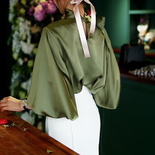 艶感とふんわりシルエットが魅力のボウタイブラウス。 ボトムスにインしたメリハリのあるスタイリングがおすすめ◎ リラックスして着られ、きちんと感もある優秀なトップスです♪ 【商品詳細】 カラー:グリーン、ホワイト、ネイビー 素材:ポリエステル 【商品サイズ】 S:肩幅 34cm/胸囲 98cm/着丈 62cm/袖丈 58cm M:肩幅 35cm/胸囲 102cm/着丈 63cm/袖丈 59cm L:肩幅 36cm/胸囲 106cm/着丈 64cm/袖丈 60cm XL:肩幅 37cm/胸囲 110cm/着丈 65cm/袖丈 61cm ※海外製品につき1cm~3cmの誤差がある場合が ございます。予めご了承くださいませ。 表記は目安として参考にしてください。 【お届けについて】 こちらの商品は海外店舗より直接発送となる為、 ご入金から1~3週間前後で発送致します。 (商品の状況によっては3週間以上かかる場合も あります。その際はご連絡させていただきます) ※沖縄・離島は、送料1000円を頂戴しております。 ◼️注意事項 ・タイミングによっては 商品在庫切れにより 注文キャンセルとさせていただく場合も ございますので、予めご了承くださいませ。 ・こちらは海外インポート商品となります。 日本製とは検品基準とは異なり、作りが あまい場合がございます。 ・お手持ちのPCやスマートフォンの画面により 商品の色に若干異なる場合がございます。 ・イメージ違いやサイズ等、お客様都合による交換、 返品、キャンセルは対応出来かねます。 ———————————————— ご購入前に必ずお読みくださいませ ↓ ↓ ↓ https://shop.gramu-official.jp/about —————————————————