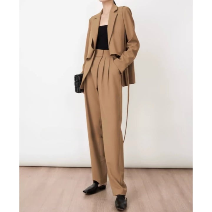 テーラードジャケットとタック入りテーパードパンツのセットアップ。 ジャケットはウエストを紐でシェイプする斬新なデザイン♪ ハイウエストのパンツは他のトップスと合わせても◎ 【商品詳細】 カラー:グレー、キャメル 【商品サイズ】 <トップス> S:肩幅 40cm/胸囲 98cm/着丈 67cm/袖丈 59cm M:肩幅 41cm/胸囲 102cm/着丈 68cm/袖丈 60cm L:肩幅 42cm/胸囲 106cm/着丈 69cm/袖丈 61cm XL:肩幅 43cm/胸囲 110cm/着丈 70cm/袖丈 62cm <ボトムス> S:ウエスト 68cm/ヒップ 105cm/総丈 101cm M:ウエスト 72cm/ヒップ 109cm/総丈 102cm L:ウエスト 76cm/ヒップ 113cm/総丈 103cm XL:ウエスト 80cm/ヒップ 117cm/総丈 104cm ※海外製品につき1cm~3cmの誤差がある場合が ございます。予めご了承くださいませ。 表記は目安として参考にしてください。 【お届けについて】 こちらの商品は海外店舗より直接発送となる為、 ご入金から1~3週間前後で発送致します。 (商品の状況によっては3週間以上かかる場合も あります。その際はご連絡させていただきます) ※沖縄・離島は、送料1000円を頂戴しております。 ◼️注意事項 ・タイミングによっては 商品在庫切れにより 注文キャンセルとさせていただく場合も ございますので、予めご了承くださいませ。 ・こちらは海外インポート商品となります。 日本製とは検品基準とは異なり、作りが あまい場合がございます。 ・お手持ちのPCやスマートフォンの画面により 商品の色に若干異なる場合がございます。 ・イメージ違いやサイズ等、お客様都合による交換、 返品、キャンセルは対応出来かねます。 ———————————————— ご購入前に必ずお読みくださいませ ↓ ↓ ↓ https://shop.gramu-official.jp/about —————————————————