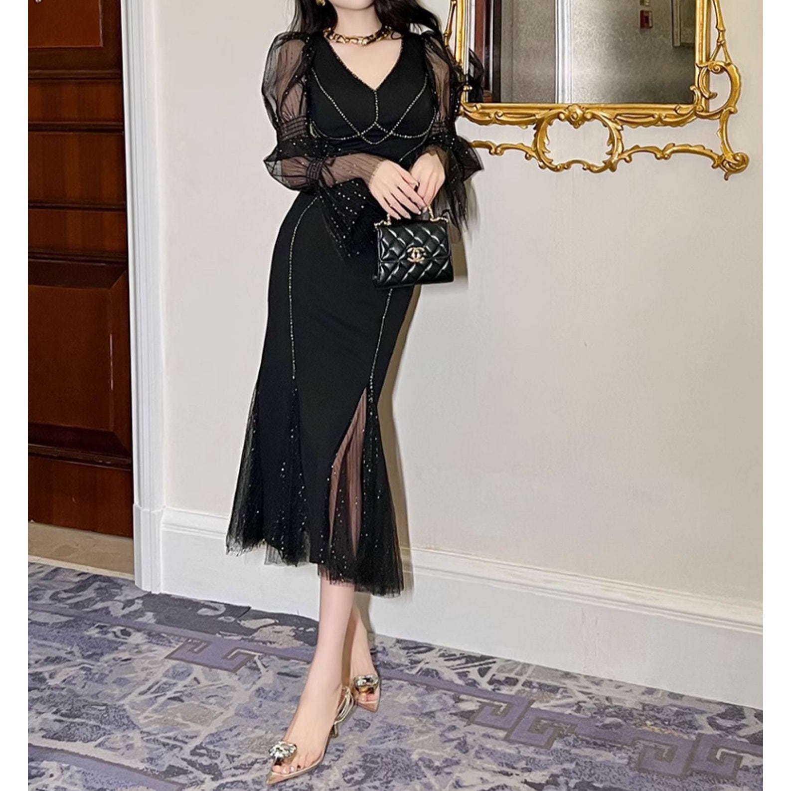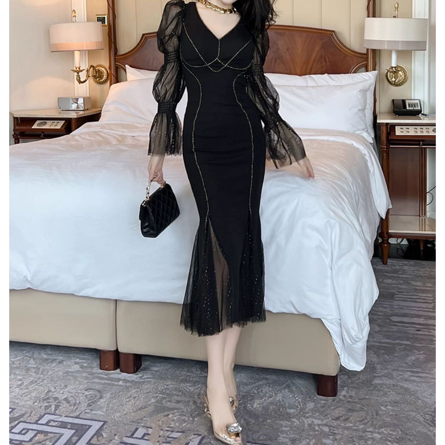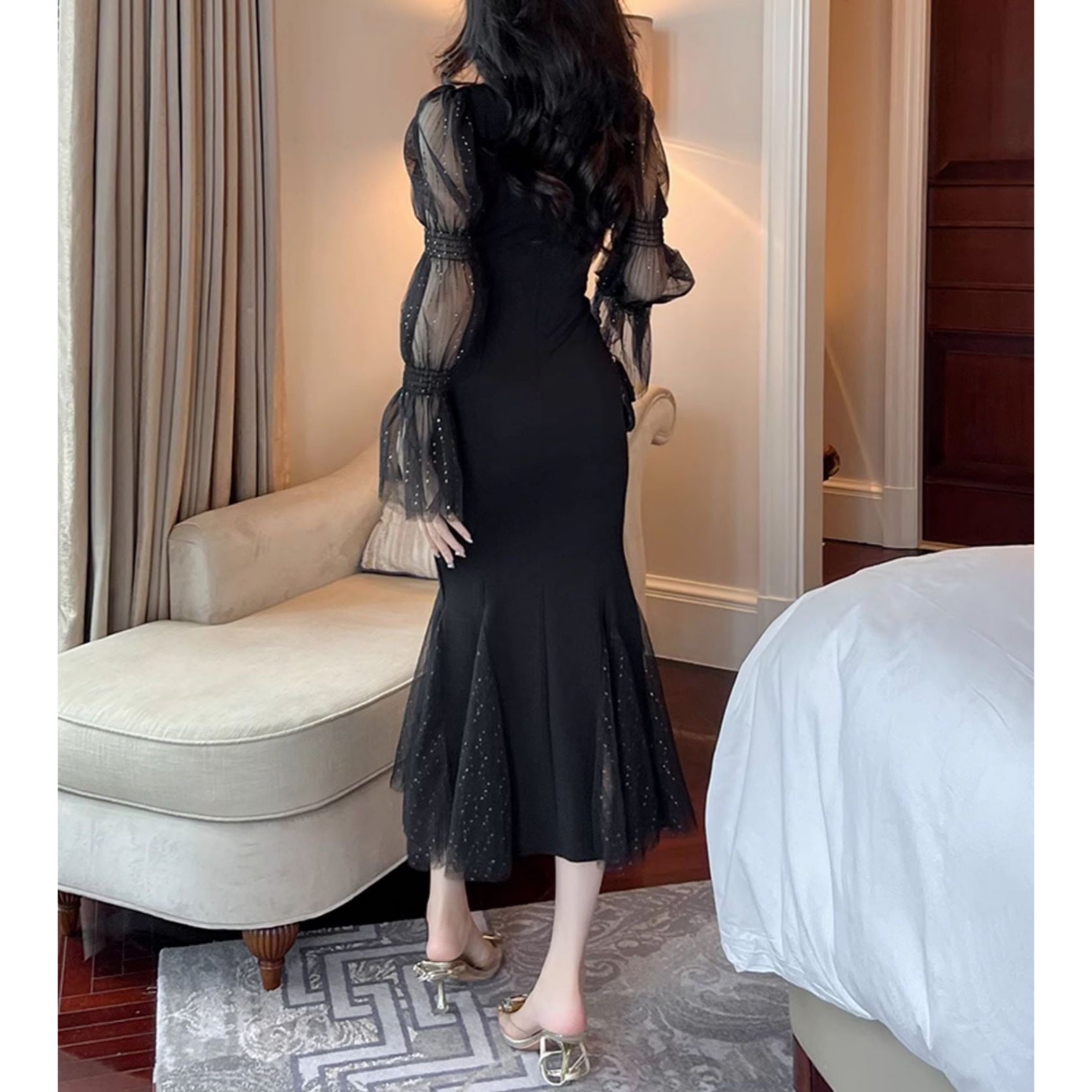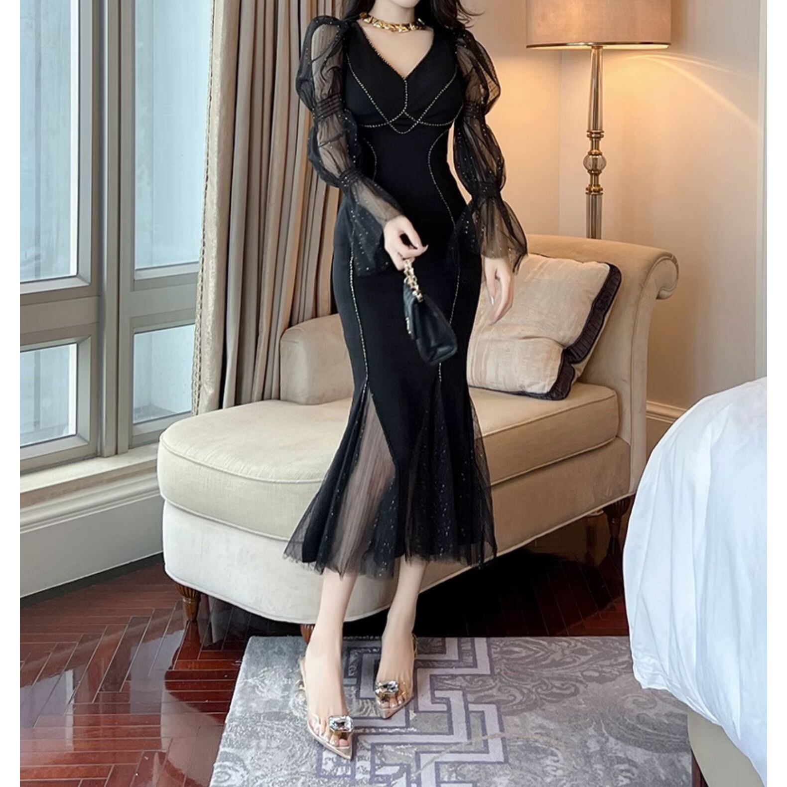 シースルーの袖とボディラインを引き立てるデザインが 特徴のブラックワンピース。 エレガントなシルエットで特別なシーンにもぴったりです。 【商品詳細】 カラー:ブラック 【商品サイズ】 S:肩幅 35cm/胸囲 80-90cm/着丈 116cm/袖丈 67cm/ウエスト 66-76cm/ヒップ 80-90cm M:肩幅 36cm/胸囲 84-94cm/着丈 117cm/袖丈 68cm/ウエスト 70-80cm/ヒップ 84-94cm L:肩幅 37cm/胸囲 88-98cm/着丈 118cm/袖丈 69cm/ウエスト 74-84cm/ヒップ 88-98cm XL:肩幅 38cm/胸囲 92-102cm/着丈 119cm/袖丈 70cm/ウエスト 78-88cm/ヒップ 92-102cm 2XL:肩幅 39cm/胸囲 96-106cm/着丈 120cm/袖丈 71cm/ウエスト 82-92cm/ヒップ 96-106cm ※海外製品につき1cm~3cmの誤差がある場合が ございます。予めご了承くださいませ。 表記は目安として参考にしてください。 【お届けについて】 こちらの商品は海外店舗より直接発送となる為、 ご入金から1~3週間前後で発送致します。 (商品の状況によっては3週間以上かかる場合も あります。その際はご連絡させていただきます) ※沖縄・離島は、送料1000円を頂戴しております。 ◼️注意事項 ・タイミングによっては 商品在庫切れにより 注文キャンセルとさせていただく場合も ございますので、予めご了承くださいませ。 ・こちらは海外インポート商品となります。 日本製とは検品基準とは異なり、作りが あまい場合がございます。 ・お手持ちのPCやスマートフォンの画面により 商品の色に若干異なる場合がございます。 ・イメージ違いやサイズ等、お客様都合による交換、 返品、キャンセルは対応出来かねます。 ———————————————— ご購入前に必ずお読みくださいませ ↓ ↓ ↓ https://shop.gramu-official.jp/about —————————————————