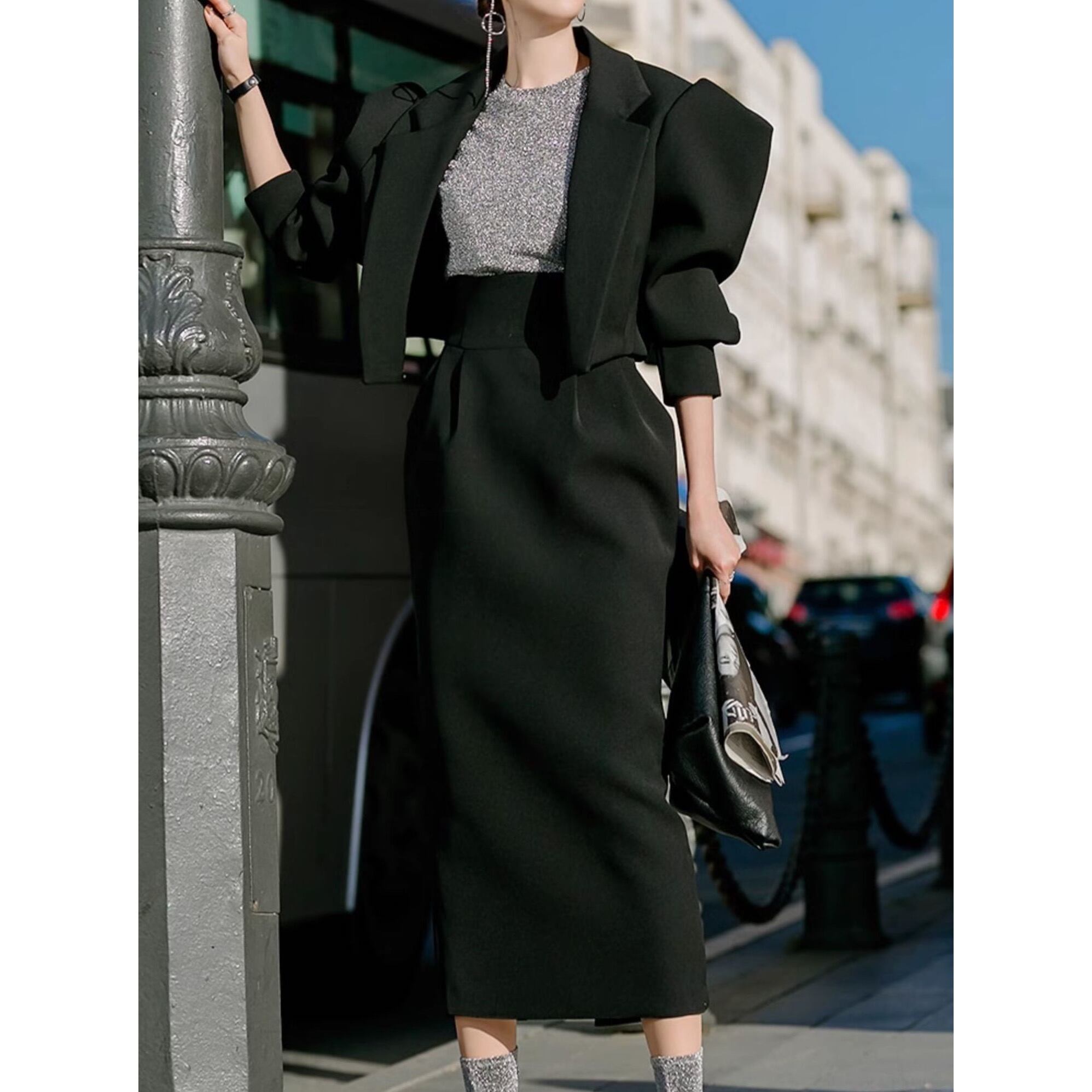 【商品詳細】 カラー:シルバー+ブラック 【商品サイズ】 <トップス> S:肩幅 36cm/胸囲 86cm/着丈 60cm/袖丈 55cm M:肩幅 37cm/胸囲 90cm/着丈 60cm/袖丈 55cm L:肩幅 38cm/胸囲 94cm/着丈 61cm/袖丈 56cm XL:肩幅 39cm/胸囲 98cm/着丈 61cm/袖丈 56cm <ボトムス> S:ウエスト 67cm/ヒップ 86cm/スカート丈 78cm M:ウエスト 71cm/ヒップ 90cm/スカート丈 78cm L:ウエスト 75cm/ヒップ 94cm/スカート丈 79cm XL:ウエスト 79cm/ヒップ 98cm/スカート丈 79cm ※海外製品につき1cm~3cmの誤差がある場合が ございます。予めご了承くださいませ。 表記は目安として参考にしてください。 【お届けについて】 こちらの商品は海外店舗より直接発送となる為、 ご入金から1~3週間前後で発送致します。 (商品の状況によっては3週間以上かかる場合も あります。その際はご連絡させていただきます) ※沖縄・離島は、送料1000円を頂戴しております。 ◼️注意事項 ・タイミングによっては 商品在庫切れにより 注文キャンセルとさせていただく場合も ございますので、予めご了承くださいませ。 ・こちらは海外インポート商品となります。 日本製とは検品基準とは異なり、作りが あまい場合がございます。 ・お手持ちのPCやスマートフォンの画面により 商品の色に若干異なる場合がございます。 ・イメージ違いやサイズ等、お客様都合による交換、 返品、キャンセルは対応出来かねます。 ———————————————— ご購入前に必ずお読みくださいませ ↓ ↓ ↓ https://shop.gramu-official.jp/about —————————————————