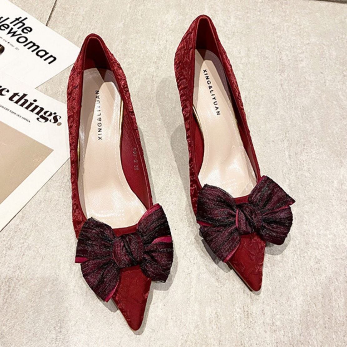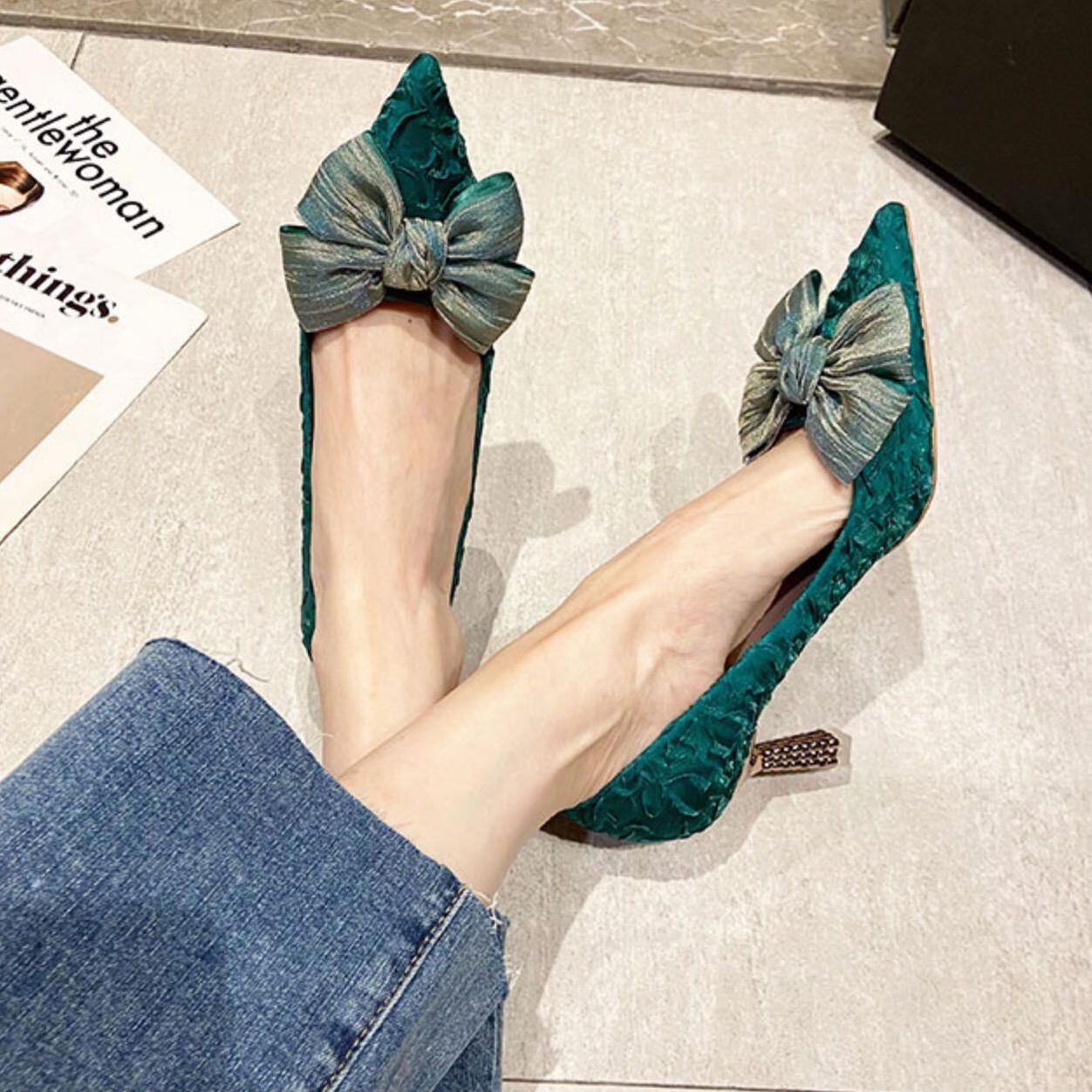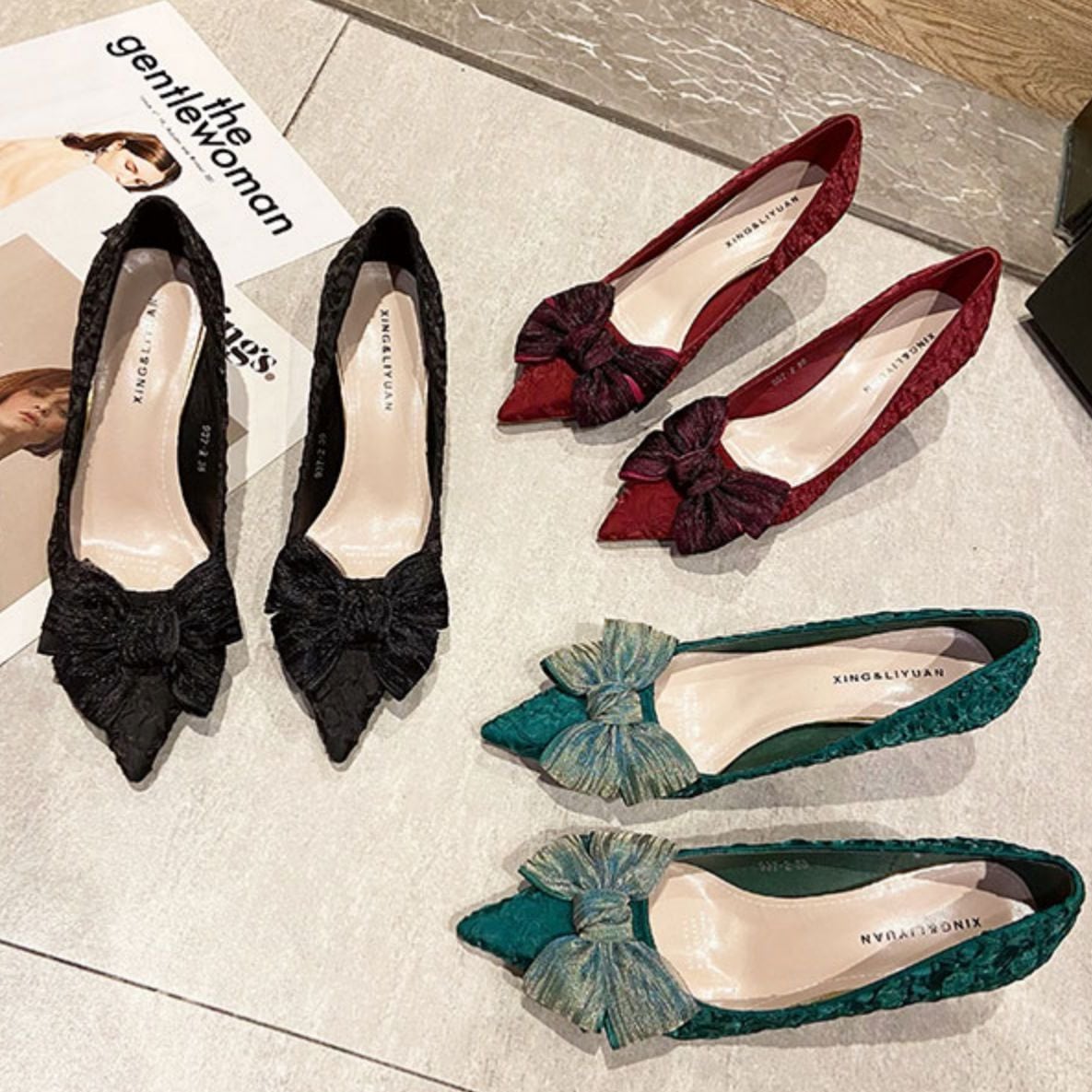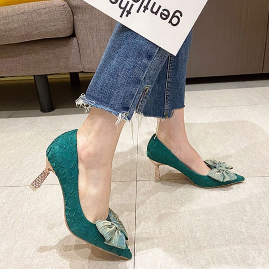 キラキラのヒールと大きなリボンがアクセントのパンプス。 ベルベットとゴールドの組み合わせがラグジュアリー♪ デニムと合わせた大人可愛いコーデはデートやお出かけにぴったり◎ 【商品詳細】 カラー:グリーン、ブラック、レッド 素材:合成皮革 【商品サイズ】 サイズ:22.5cm、23cm、23.5cm、24cm、24.5cm、25cm ヒールの高さ:7cm ※海外製品につき多少の誤差がある場合が ございます。予めご了承くださいませ。 表記は目安として参考にしてください。 【お届けについて】 こちらの商品は海外店舗より直接発送となる為、 ご入金から1~3週間前後で発送致します。 (商品の状況によっては3週間以上かかる場合も あります。その際はご連絡させていただきます) ※沖縄・離島は、別途送料を頂戴しております。 ◼️注意事項 ・タイミングによっては 商品在庫切れにより 注文キャンセルとさせていただく場合も ございますので、予めご了承くださいませ。 ・こちらは海外インポート商品となります。 日本製とは検品基準とは異なり、作りが あまい場合がございます。 ・お手持ちのPCやスマートフォンの画面により 商品の色に若干異なる場合がございます。 ・イメージ違いやサイズ等、お客様都合による交換、 返品、キャンセルは対応出来かねます。 ———————————————— ご購入前に必ずお読みくださいませ ↓ ↓ ↓ https://shop.gramu-official.jp/about —————————————————