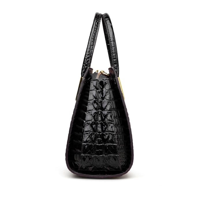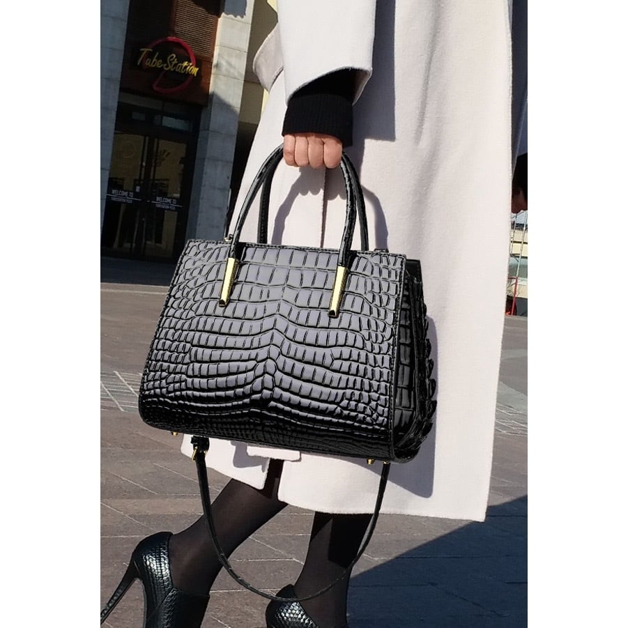 艶があり高級感が漂うエンボス加工のハンドバッグ。