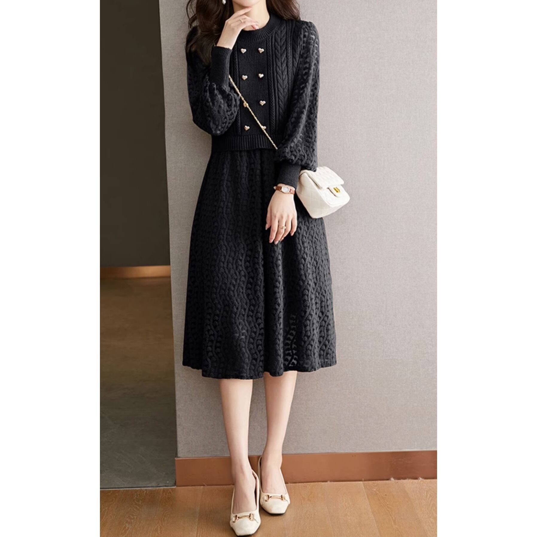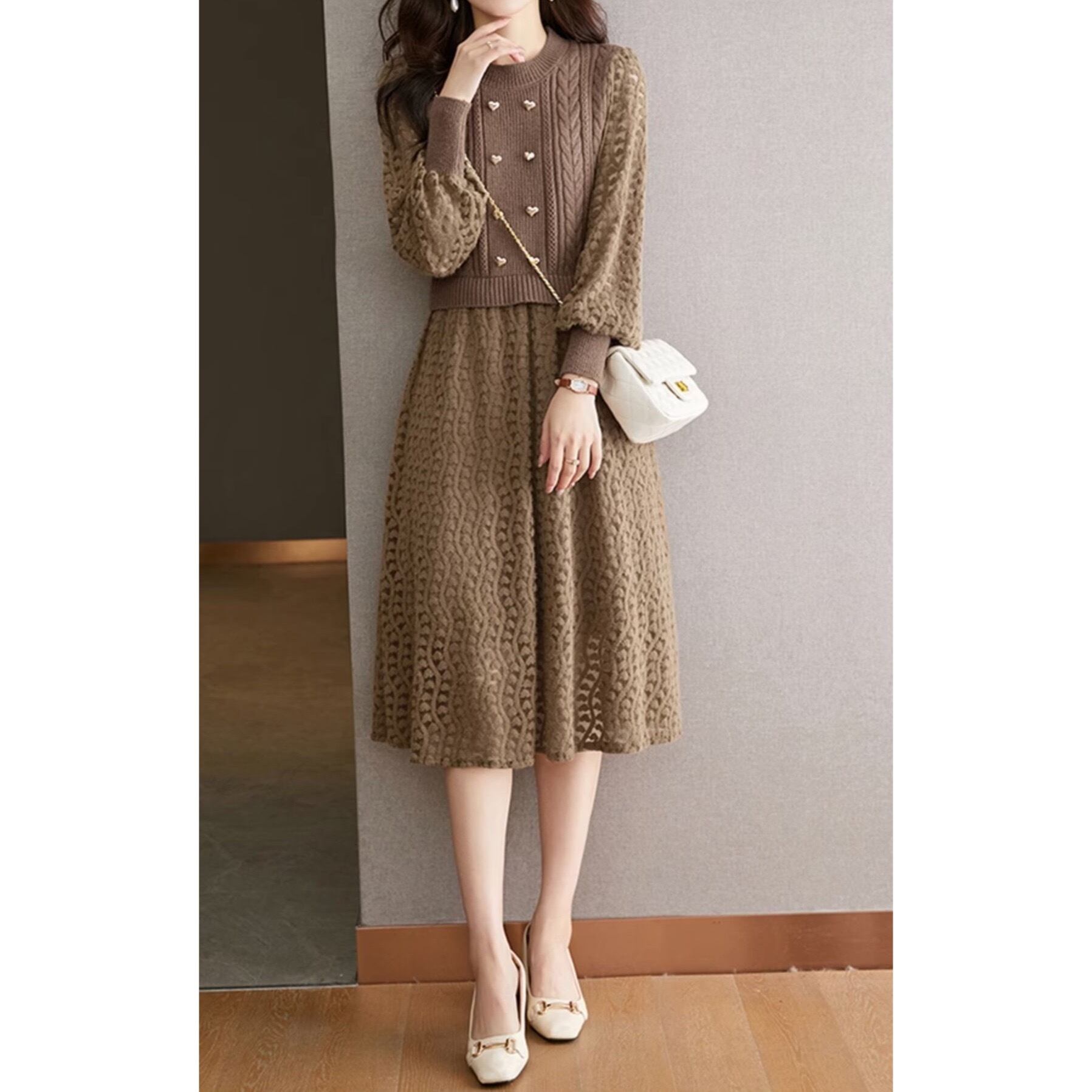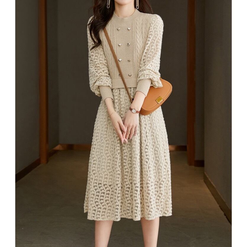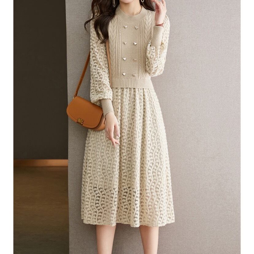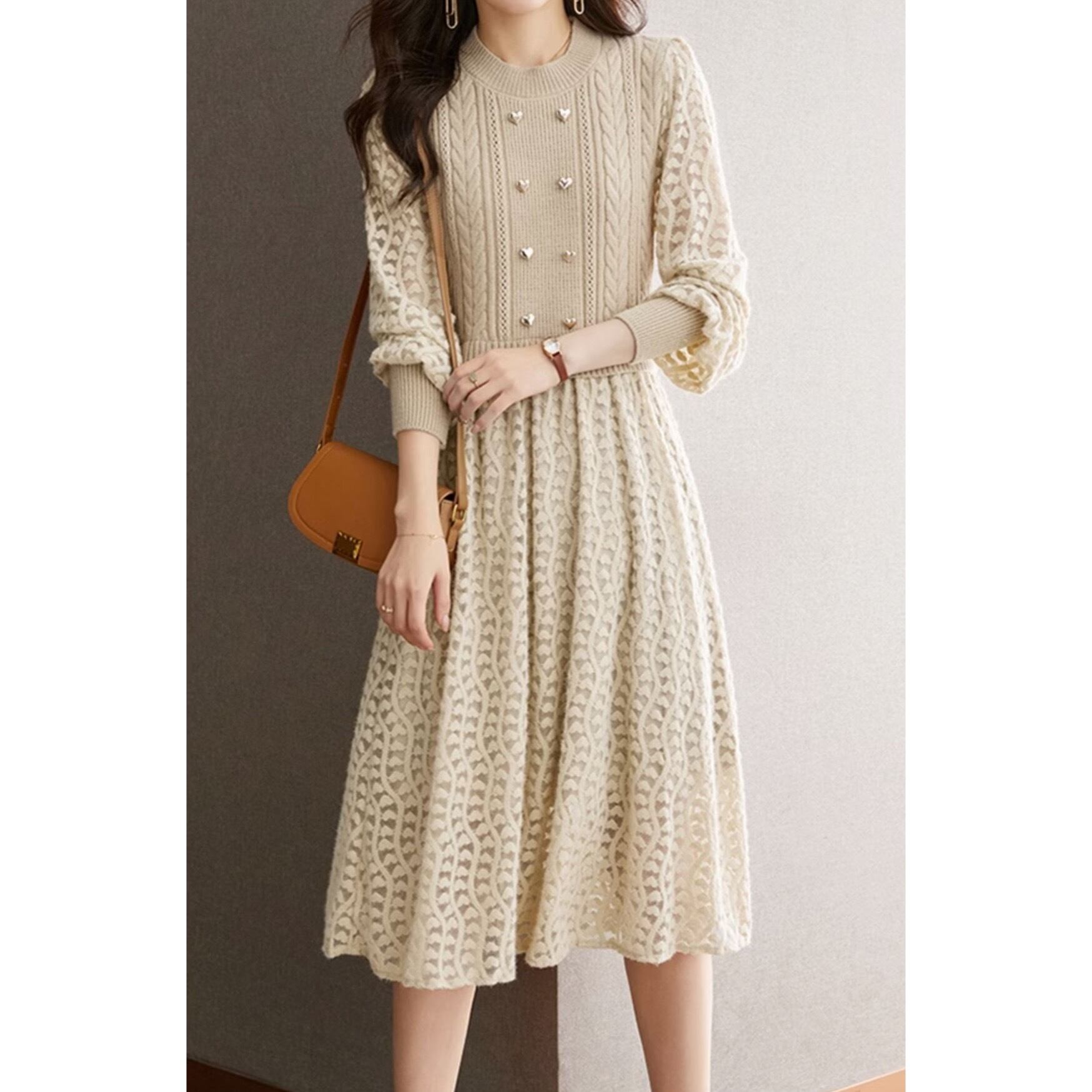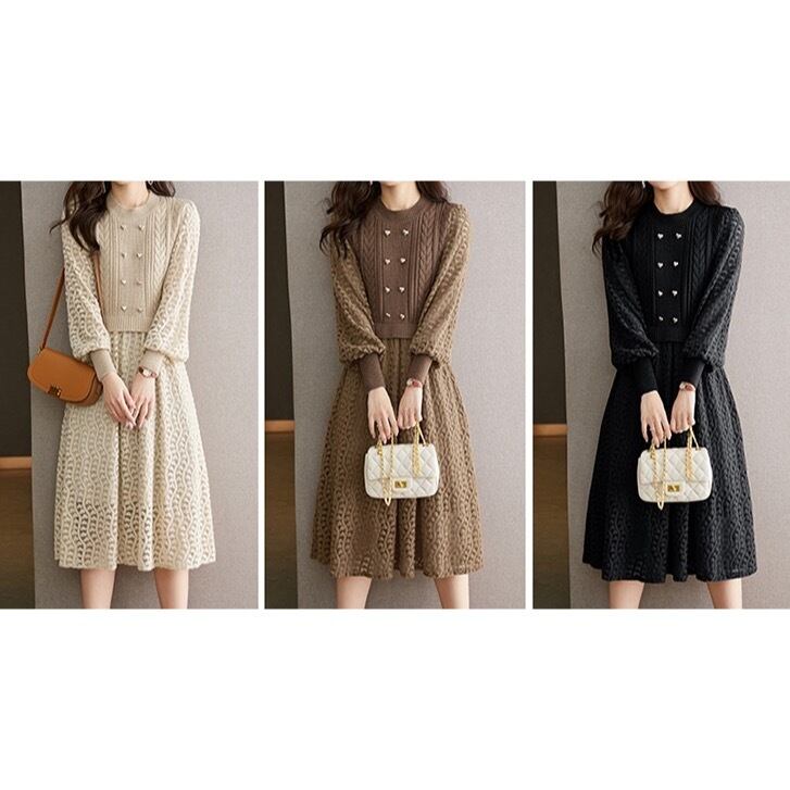 ハートのモチーフが可愛らしいレースニットワンピース。 セパレート風のデザインでとってもオシャレ♪ これからの季節、デートやお出かけなどにぴったりな一着◎ 【商品詳細】 カラー:オフホワイト、ブラック、ブラウン 【商品サイズ】 M:肩幅 36-37cm/胸囲 88-90cm/着丈 103cm/袖丈 54cm L:肩幅 37-38cm/胸囲 92-94cm/着丈 103cm/袖丈 55cm XL:肩幅 38-39cm/胸囲 98-100cm/着丈 103cm/袖丈 55cm 2XL:肩幅 39-40cm/胸囲 104-106cm/着丈 104cm/袖丈 56cm ※海外製品につき1cm~3cmの誤差がある場合が ございます。予めご了承くださいませ。 表記は目安として参考にしてください。 【お届けについて】 こちらの商品は海外店舗より直接発送となる為、 ご入金から1~3週間前後で発送致します。 (商品の状況によっては3週間以上かかる場合も あります。その際はご連絡させていただきます) ※沖縄・離島は、別途送料を頂戴しております。 ◼️注意事項 ・タイミングによっては 商品在庫切れにより 注文キャンセルとさせていただく場合も ございますので、予めご了承くださいませ。 ・こちらは海外インポート商品となります。 日本製とは検品基準とは異なり、作りが あまい場合がございます。 ・お手持ちのPCやスマートフォンの画面により 商品の色に若干異なる場合がございます。 ・イメージ違いやサイズ等、お客様都合による交換、 返品、キャンセルは対応出来かねます。 ———————————————— ご購入前に必ずお読みくださいませ ↓ ↓ ↓ https://shop.gramu-official.jp/about —————————————————
