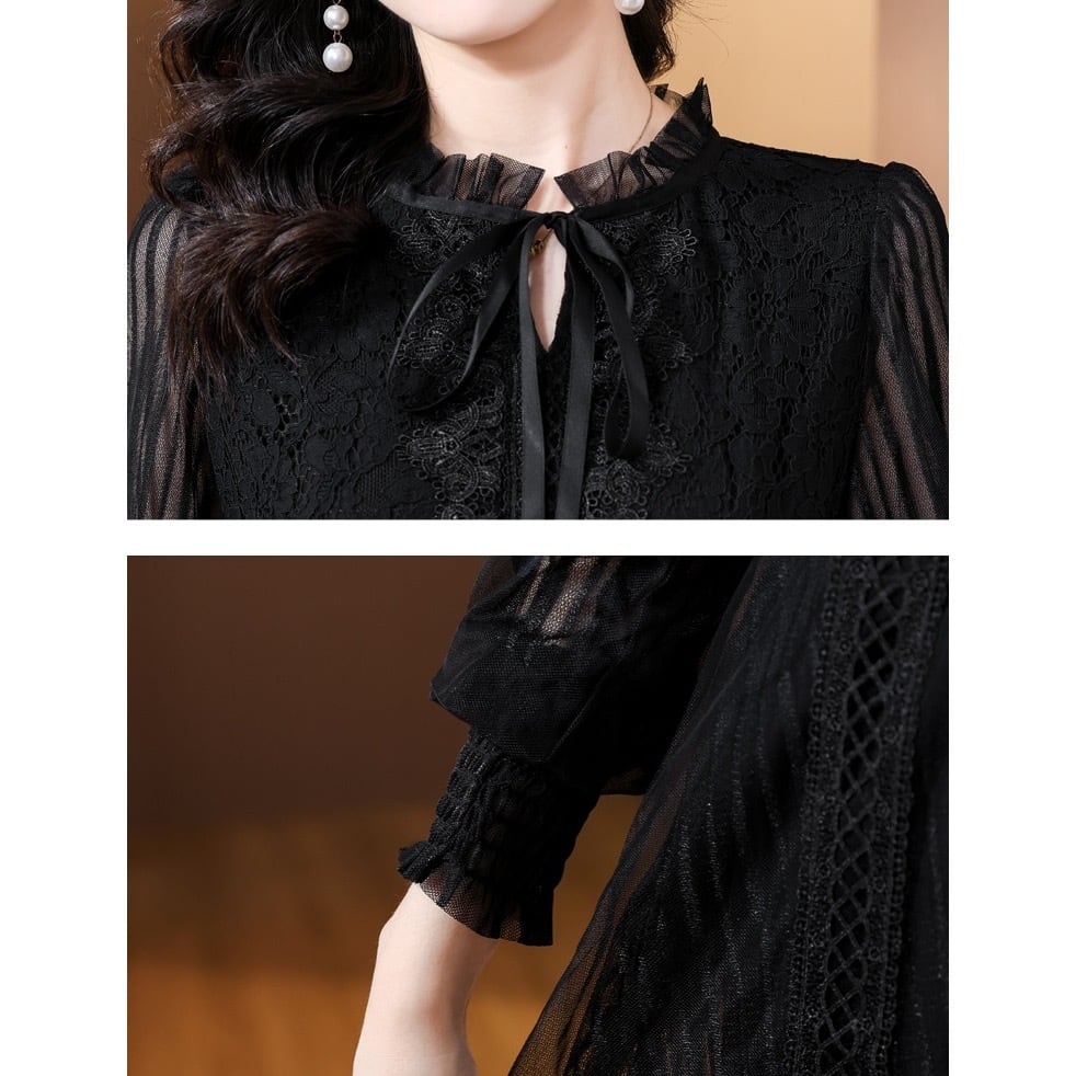 大人っぽさの中に可愛いエッセンスが詰め込まれたワンピース。 襟のチュールやリボン、胸元のレースが目を惹きます♪ デートやお出かけ、イベントなどにぴったりな一着◎ 【商品詳細】 カラー:ブラック 【商品サイズ】 L:肩幅 39.5cm/胸囲 97cm/着丈 115.5cm/袖丈 60cm/袖口 19cm/ウエスト 78cm XL:肩幅 41cm/胸囲 103cm/着丈 117cm/袖丈 61cm/袖口 20cm/ウエスト 84cm 2XL:肩幅 42.5cm/胸囲 109cm/着丈 118.5cm/袖丈 62cm/袖口 21cm/ウエスト 90cm 3XL:肩幅 44cm/胸囲 115cm/着丈 120cm/袖丈 63cm/袖口 22cm/ウエスト 96cm 4XL:肩幅 45.5cm/胸囲 121cm/着丈 121.5cm/袖丈 64cm/袖口 23cm/ウエスト 102cm 5XL:肩幅 47cm/胸囲 127cm/着丈 123cm/袖丈 65cm/袖口 24cm/ウエスト 108cm ※海外製品につき1cm~3cmの誤差がある場合が ございます。予めご了承くださいませ。 表記は目安として参考にしてください。 【お届けについて】 こちらの商品は海外店舗より直接発送となる為、 ご入金から1~3週間前後で発送致します。 (商品の状況によっては3週間以上かかる場合も あります。その際はご連絡させていただきます) ※沖縄・離島は、別途送料を頂戴しております。 ◼️注意事項 ・タイミングによっては 商品在庫切れにより 注文キャンセルとさせていただく場合も ございますので、予めご了承くださいませ。 ・こちらは海外インポート商品となります。 日本製とは検品基準とは異なり、作りが あまい場合がございます。 ・お手持ちのPCやスマートフォンの画面により 商品の色に若干異なる場合がございます。 ・イメージ違いやサイズ等、お客様都合による交換、 返品、キャンセルは対応出来かねます。 ———————————————— ご購入前に必ずお読みくださいませ ↓ ↓ ↓ https://shop.gramu-official.jp/about —————————————————