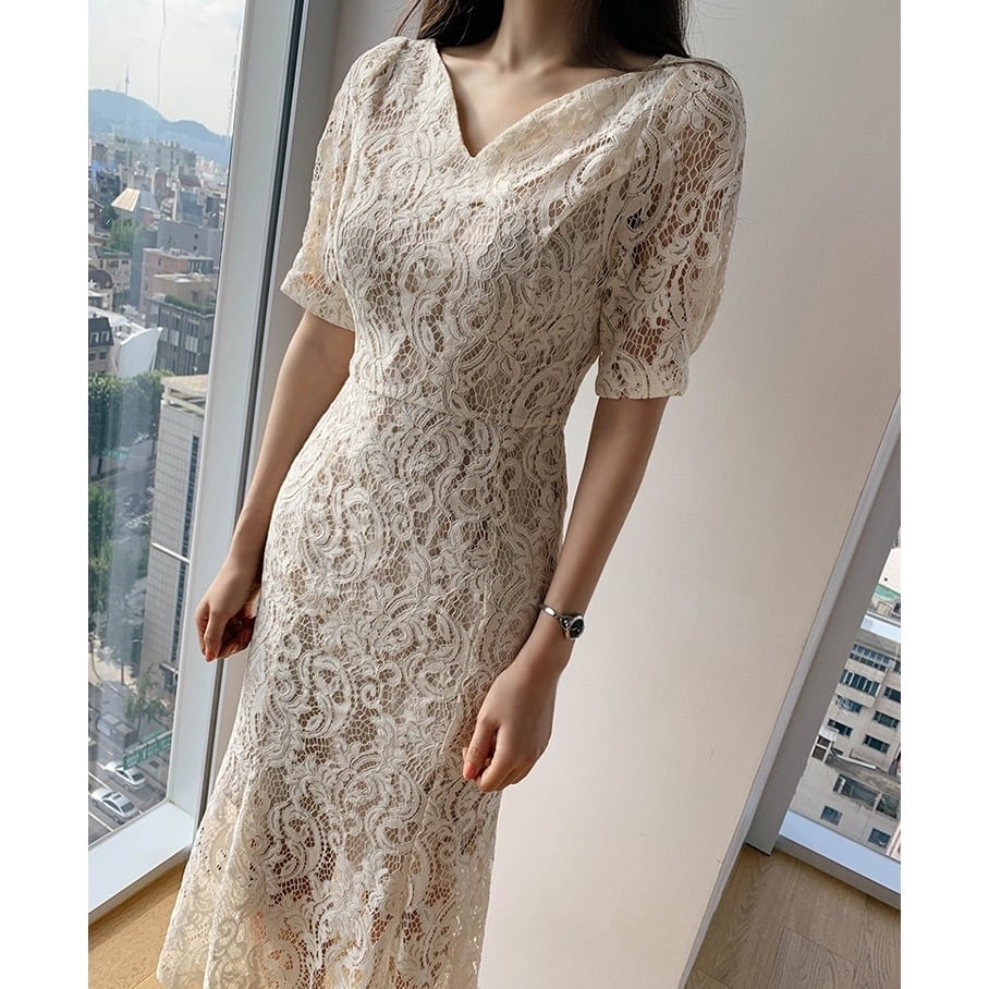 総レースで仕立てられた上品なワンピース。 襟元のカットやパフスリーブが特徴のフェミニンデザイン。 体のラインを美しく魅せてくれ、デートやお出かけにぴったりな一着♪ 【商品詳細】 カラー:アプリコット、ブラック 【商品サイズ】 S:胸囲 82cm/着丈 119cm/袖丈 30cm/ウエスト 66cm/ヒップ 84cm M:胸囲 86cm/着丈 120cm/袖丈 31cm/ウエスト 70cm/ヒップ 88cm L:胸囲 90cm/着丈 121cm/袖丈 32cm/ウエスト 74cm/ヒップ 92cm XL:胸囲 94cm/着丈 122cm/袖丈 33cm/ウエスト 78cm/ヒップ 96cm ※海外製品につき1cm~3cmの誤差がある場合が ございます。予めご了承くださいませ。 表記は目安として参考にしてください。 【お届けについて】 こちらの商品は海外店舗より直接発送となる為、 ご入金から1~3週間前後で発送致します。 (商品の状況によっては3週間以上かかる場合も あります。その際はご連絡させていただきます) ※沖縄・離島は、別途送料を頂戴しております。 ◼️注意事項 ・タイミングによっては 商品在庫切れにより 注文キャンセルとさせていただく場合も ございますので、予めご了承くださいませ。 ・こちらは海外インポート商品となります。 日本製とは検品基準とは異なり、作りが あまい場合がございます。 ・お手持ちのPCやスマートフォンの画面により 商品の色に若干異なる場合がございます。 ・イメージ違いやサイズ等、お客様都合による交換、 返品、キャンセルは対応出来かねます。 ———————————————— ご購入前に必ずお読みくださいませ ↓ ↓ ↓ https://shop.gramu-official.jp/about —————————————————